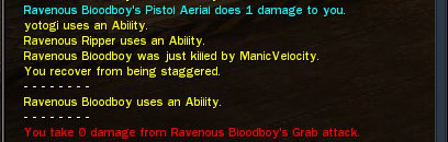 We also noticed that NPCs special attacks text in the system bar appears as light blue, which normally means is good for you but in fact it should be red because it is damage against you.