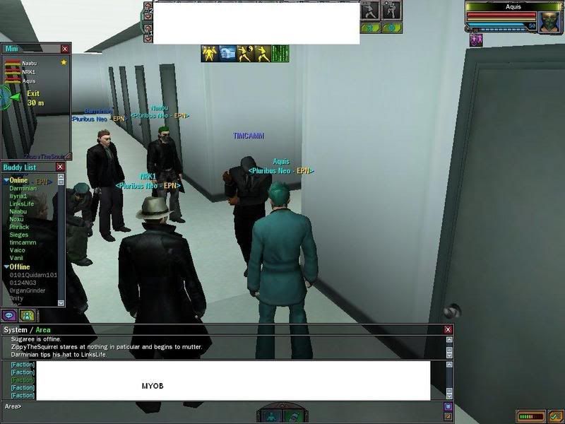 Cell phones - It would be very cool if you could use the cell phones to place anonymous calls, not easily done, but if we can build player bots to serve as network sources of intel and data updates, it would be fairly easy to have an anonymous call relay that would simply re-route calls to their desired location but keep them secret, and for the sake of harassment - the dev's could easily check to see who said what as to avoid drama of harassment anonymously. Could also be a cool thing for the LEC's to do, because if rarebit were to do it, you'd never know if it was part of an event or just some player based RP. And we all know that what we don't know is always more interesting then what were sure of. Payphones could work the same way i suppose. tape recorders - could generate an in game log that would be indesputeable, this isn't something i necessarily want to see, but it would be neat all the same, we already have an in-game log option, but it would be cool to generate an in-game file that recorded area chat and could be handed around. A means to generate copies of these items would also be impressive. Masks/Disguises - in an untraditional sense, allow the user to change both their name and appearance to say that of a random charachter (blue pill, exile, agent ect. ect) they wouldn't be used to affect combat, level could stay the same it would just be a means to allow players to RP different roles for events, lord knows it would make things a lot easier and give us a chance to fight 50's without having to roll a new char who has to be killed off for an event. If necessary give it some kind of icon to notify people that it was a player as to stop LEC impersonation. Heck even if the names didn't change it would still be workable - lord knows rarebit can give players disguises till they log out or reconstruct, why not give the ability to the players for the sake of RP. General: a hacking system - as things don't tend to really change up around here, it becomes clear events that require computers or terminals or mainframes hacked are going to happen again from time to time, as such it would be nice if some kind of system were to be generated to represent the actualy hacking. Whether as a series of questions or riddles or math problems or even (though it won't ever happen) some kind of visual mini-game esque ordeal, i just think its a bit redudant and stupid to keep doing them when really all it is, is someone loading coder and standing by a terminal cause it looks like he's typing.