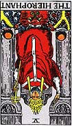 The card represents the critical factor for the issue at hand. The Hierophant, when reversed: Authoritarianism. Inflexible and dogmatic thinking. A calcified old regime. Bad or incompetent advice. Inability to hear a higher or inner voice, or pretending to hear it for personal gain. |