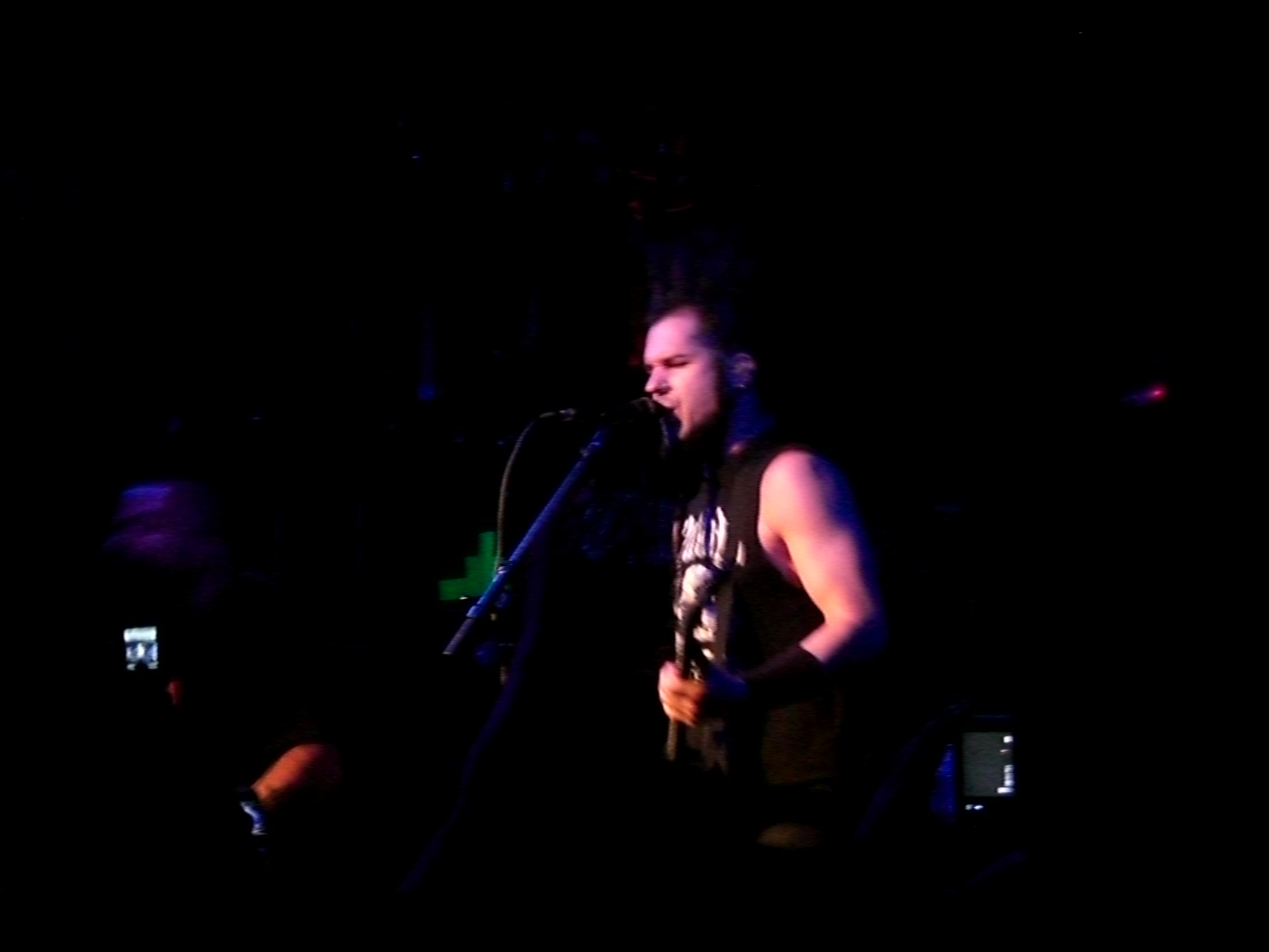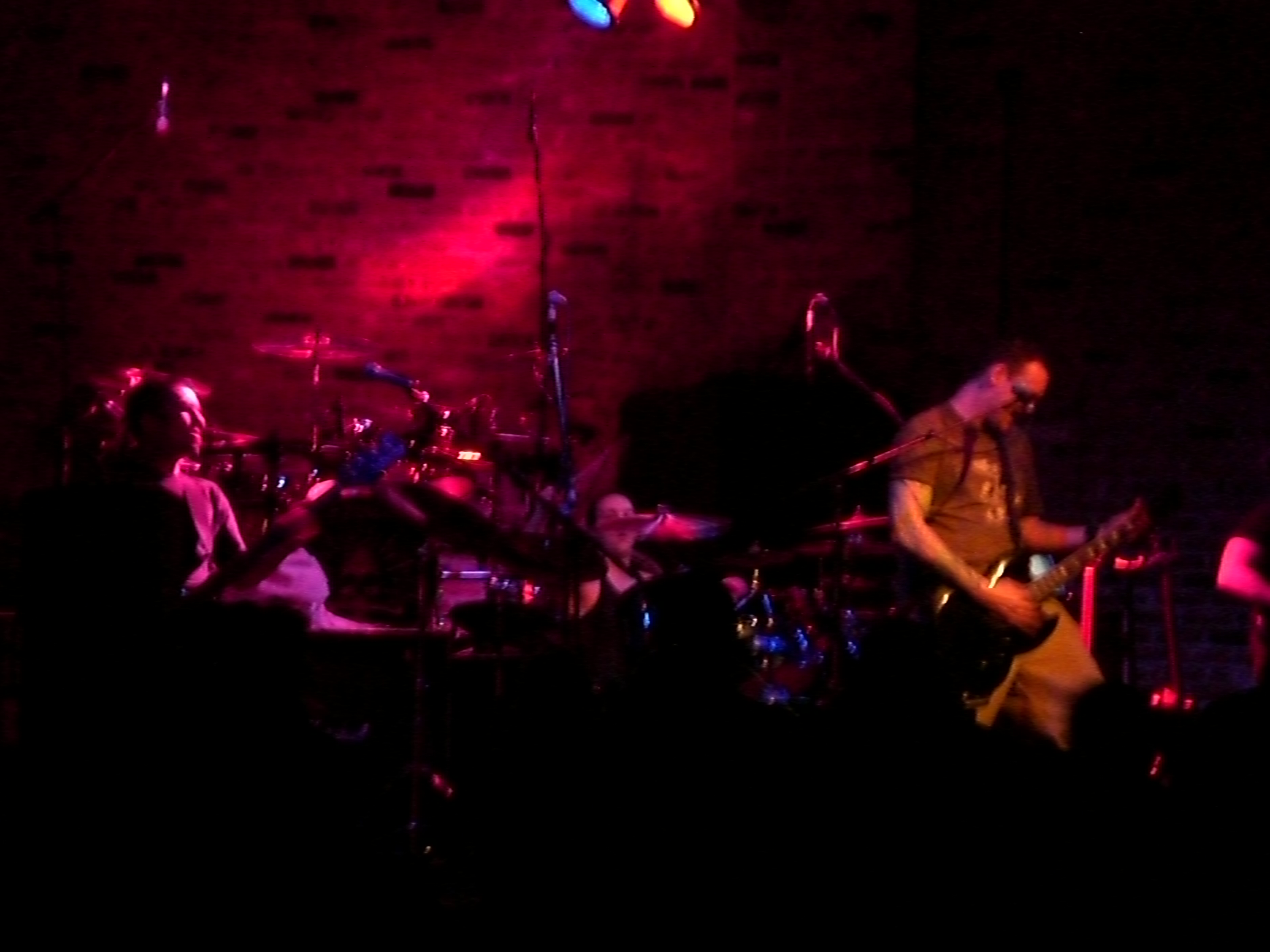 So i checked out Static X last night at Richards on Richards in Vancouver and the club was a small place so pretty cool. Anyways the first band was called Cyanotic and they are from Vancouver and i have never heard of them but man they were pretty *CENSORED* good. Enough for me to seek there CD out today. Static-X got up and well it went crazy from there. I got an awesome spot in the mosh pit surrounded by girls and even got a chance to take a few pictures when i was crammed in layer 2-3 of the pit and couldn't move. Anyways here are the pics for those interested. I bet IMAX would have loved this concert too. Cyanotic - Sorry was in the back. When they first came out though i thought.... hmm a bunch of short haired dudes but they were great.      Again i appologize for the images. I was cramed in the moshpit while taking these.