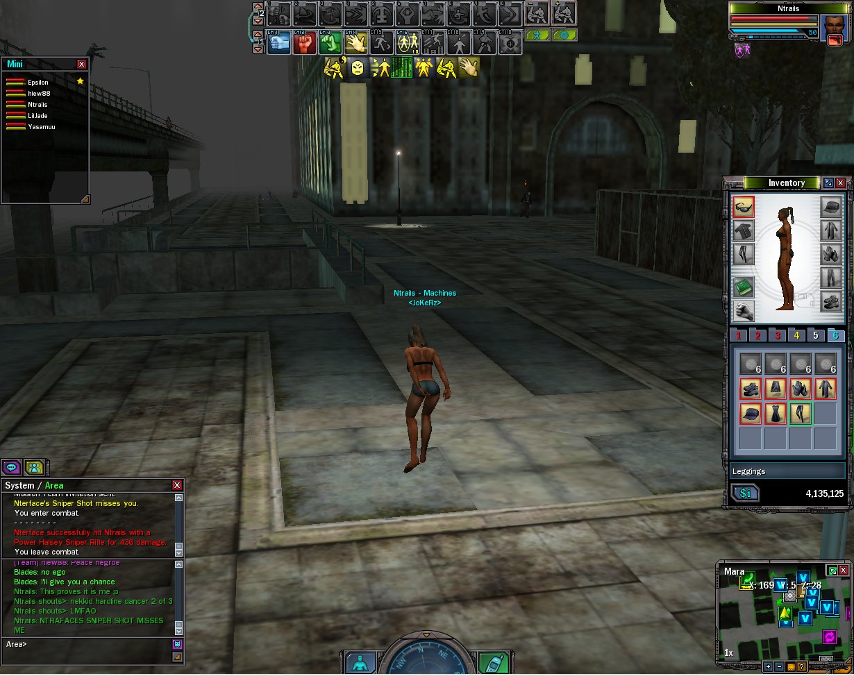 And the reds consist of a 50 master shadow, a 29 17 and 14. No point trying to kill an MS. So is /loadlo MKT and strip. A few nekkid sweeps and Punts later (one is fatal, the other is not) I am bored. The lowbies neither trash talk nor learn. The 50 left. So I went to have a shower and left my toon nekkid dancing.