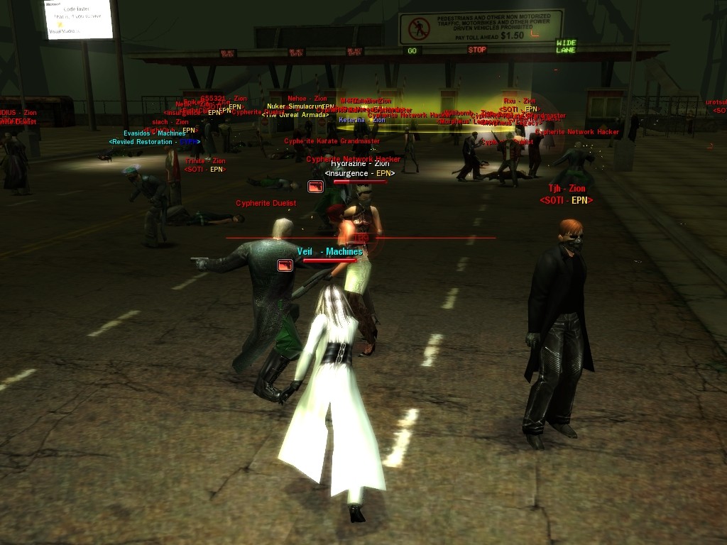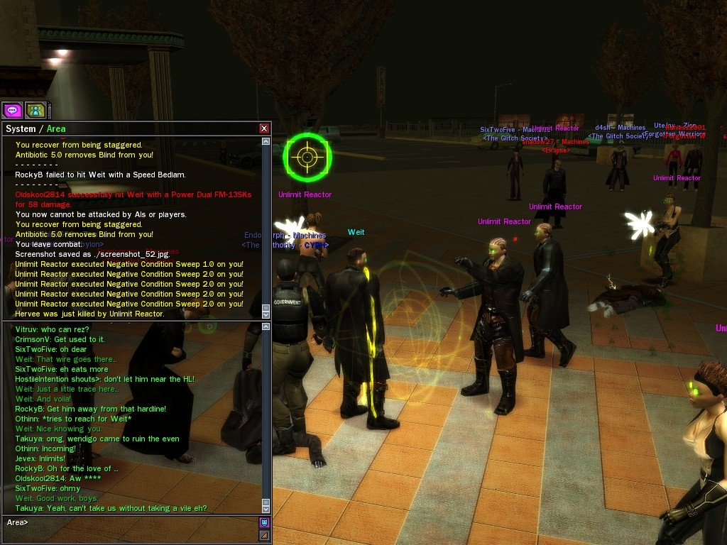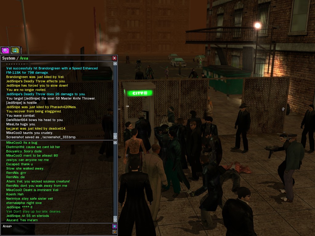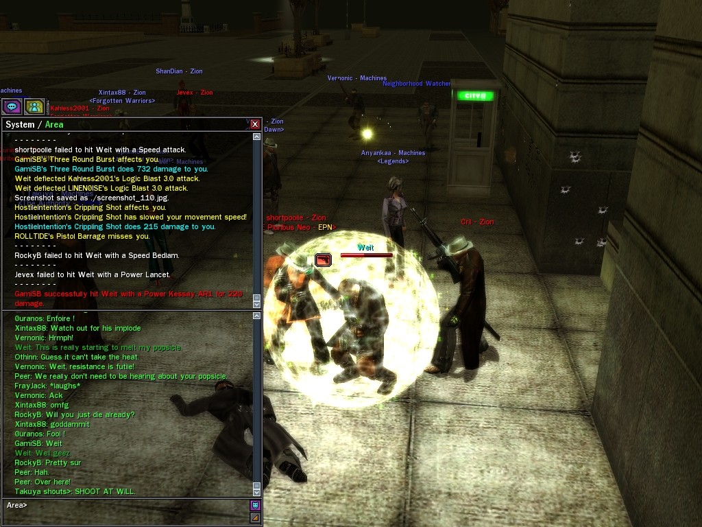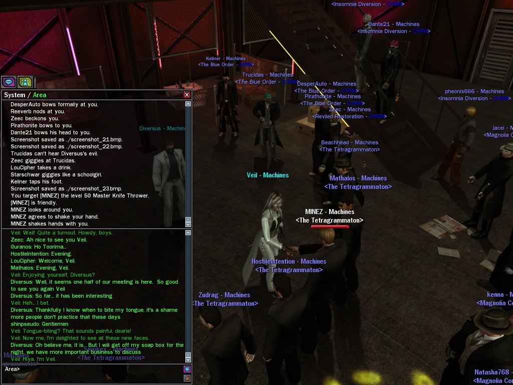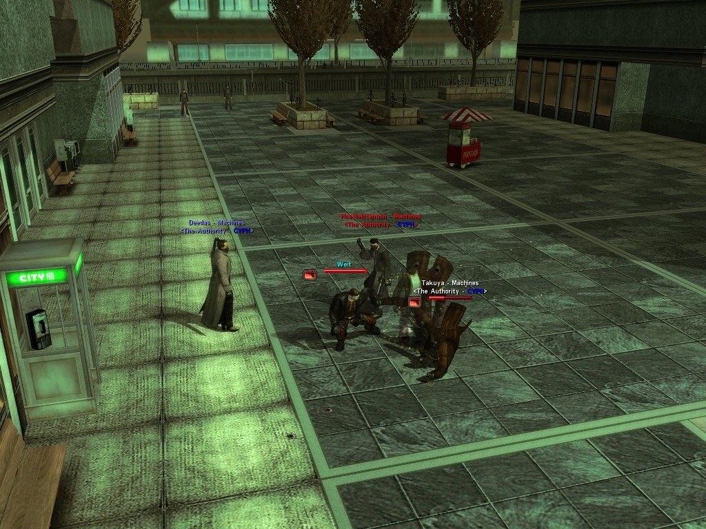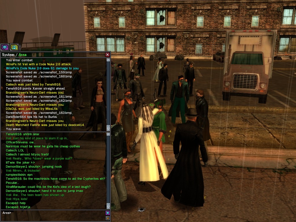 My dears, Anome's man, Weit, showed up in Downtown just the other day, mucking about with hardlines. He was able to rewire a few before operatives could stop him, and when that happened, immediately afterwards a whole truckload of his men would port in through the line, clearing out the whole area. Fortunately, we got wise to him, and pretty soon he found that he didn't quite have the leisure he needed to rewire the phone booths. He ran off in frustration, leaving a trail of high-powered soldiers across northwestern Downtown. Not to worry, though! They were soon cleared up. And I'm sure we'll get Weit pretty soon, too, unless he wises up (which seems awfully unlikely). Kisses! Veil
