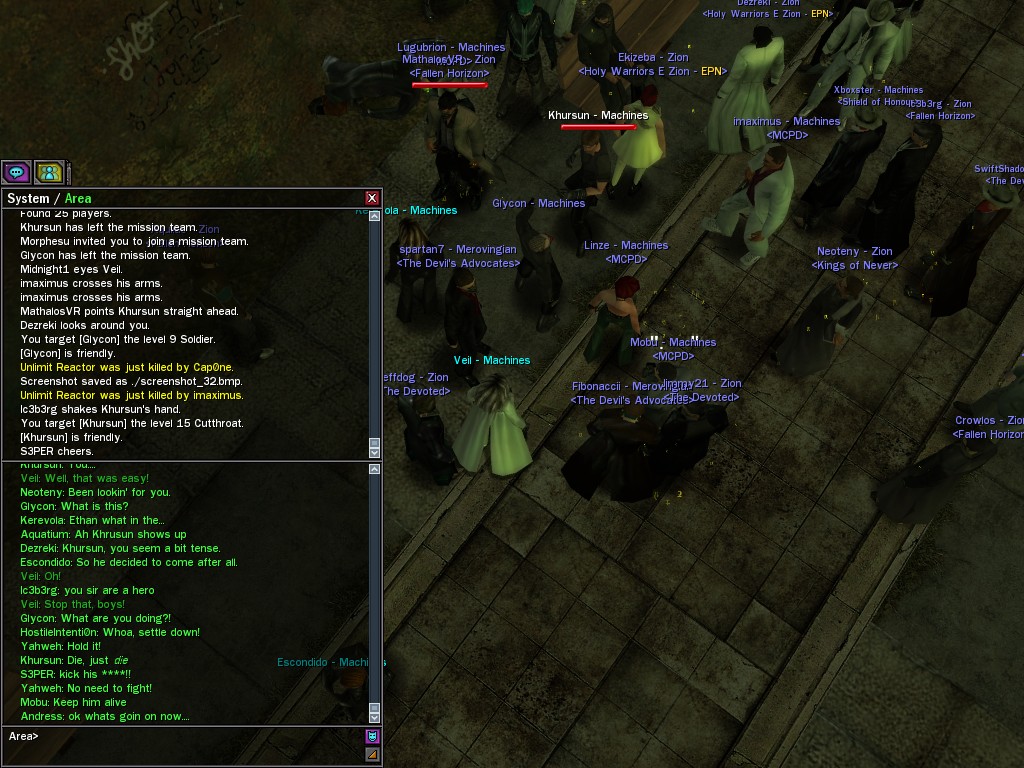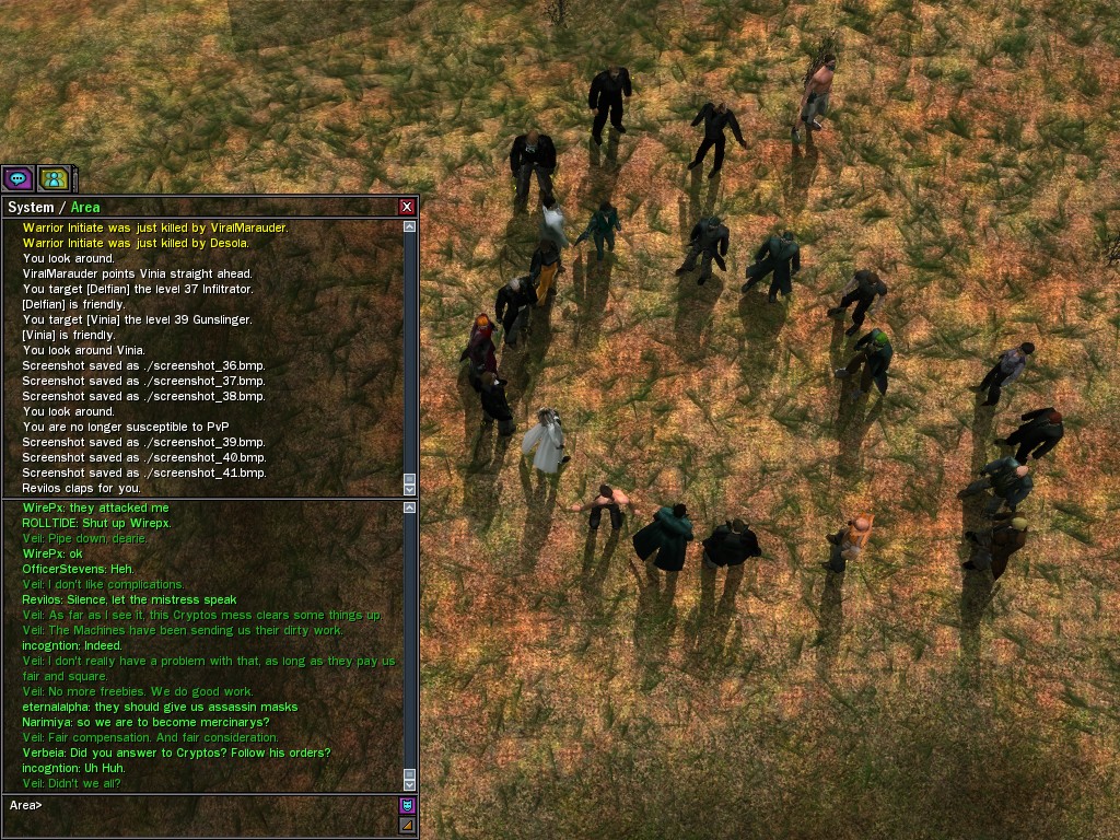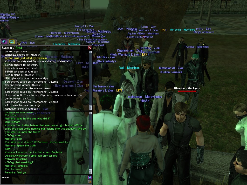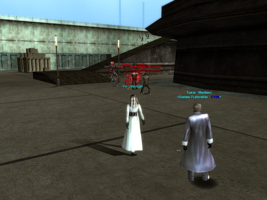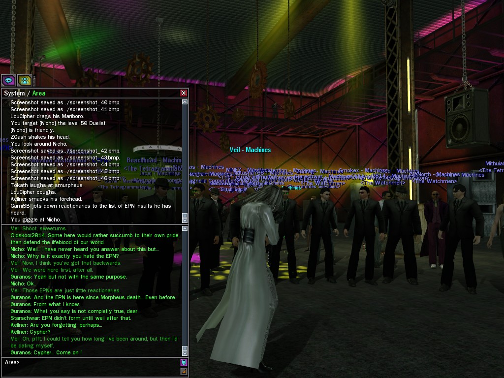 After snacking on some small fry, Evasidos, Mercidos, and I just happened to stumble across a big drum-beating held by those annoying EPN people down by the wharves. Their cute little new officer was there, and everything! Now, we certainly couldn't pass up a chance like that to put in a word or two, and I think we succeeded in livening up their evening a wee bit.