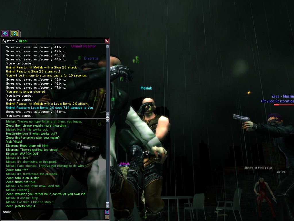 We only met Meillak a few times, but he proved to us that not every member of Unlimit had their mind corrupted along with their body. We didn't know it at first, but there's no question now that Meillak has been helping us fight Anome by giving us pieces of Anome's life before he was awoken--pieces written by Caboclo, Meillak's friend who Anome punished in a terrible way. Eventually, Unlimit figured out what Meillak was up to. I don't think this surprised him. Meillak's hacking of Machine programs--which have hidden, redundant data-gathering routines for just such an occasion--allowed the Machines to track the hacks back to Meillak himself. We intercepted this data and went to meet Meillak first, to try to save him from both Unlimit and the Machines. It didn't work. There was an army of Unlimits right behind us, and Meillak didn't want to go. He sounded...he sounded tired. He said many things that we didn't understand, dearies, about what he thought would happen. He said that the Unlimit were doomed, and would die, and that he would rather go now, at their hands. He seems to have planned it somehow--planned all of this. He said it was his choice, and then, right before the end, he said that we would all have to make a choice...I think. He always was hard to understand. Unlimit killed Meillak, dears, I suppose like he wanted them to. He sacrificed himself... I only hope that the rest of whatever he was planning works out like he wanted. But whatever happens, we won't forget him, will we? Veil