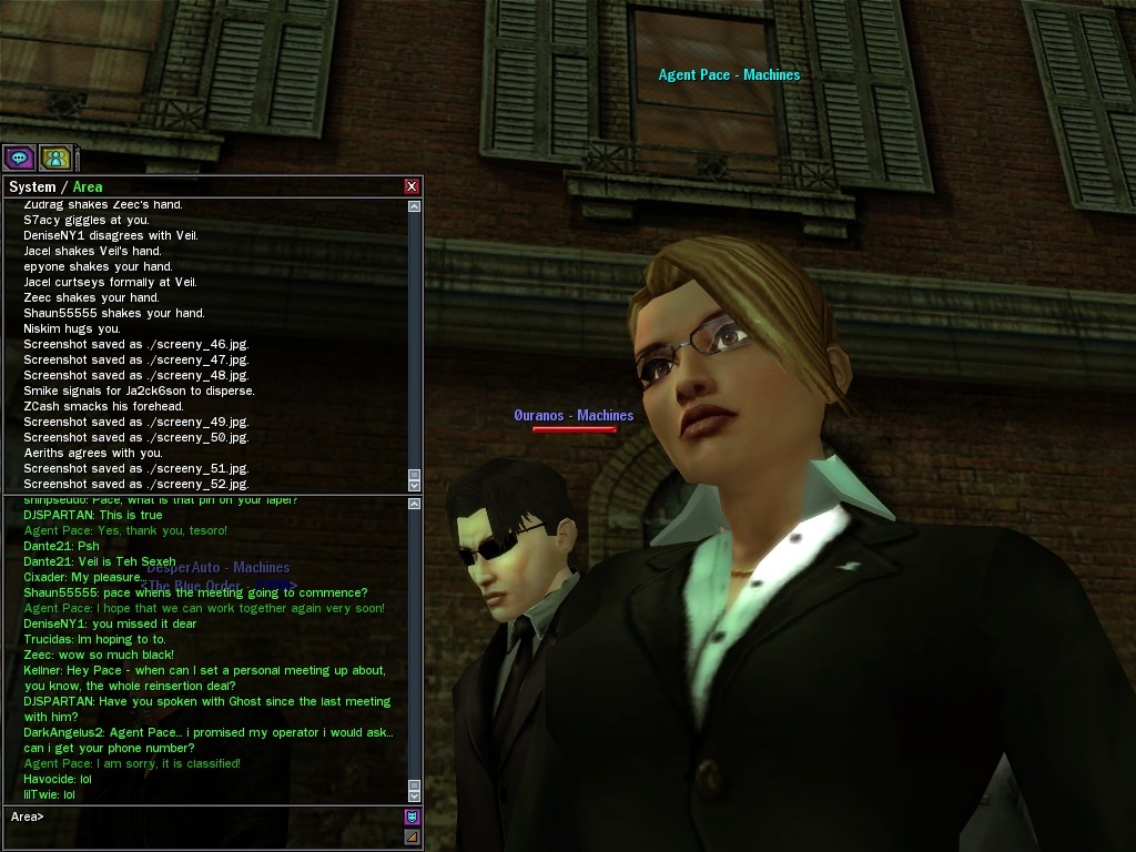 That Agent Pace is such a sweetie; I can see how Ghost could be gah-gah over her. But she's our friend now, isn't she, dearies? And we're much more fun than those stuck-up Zionites. ;)