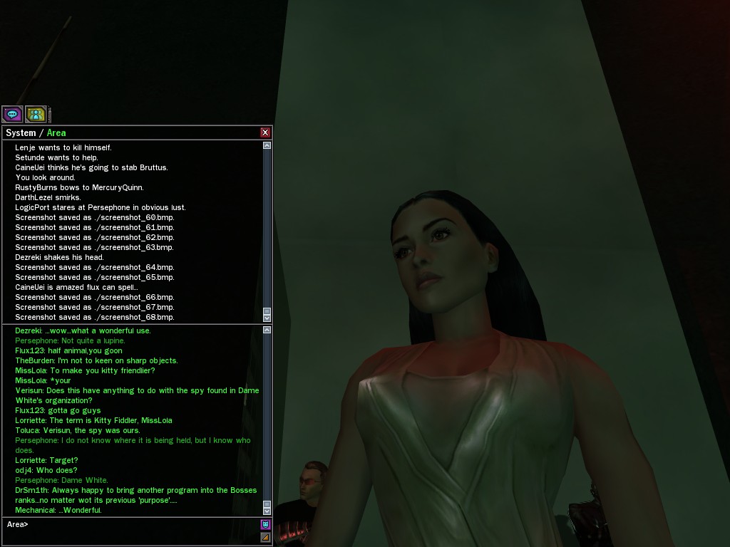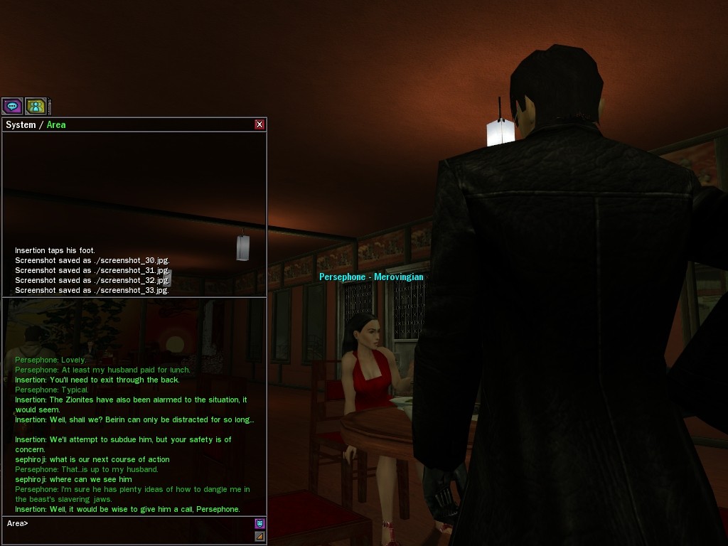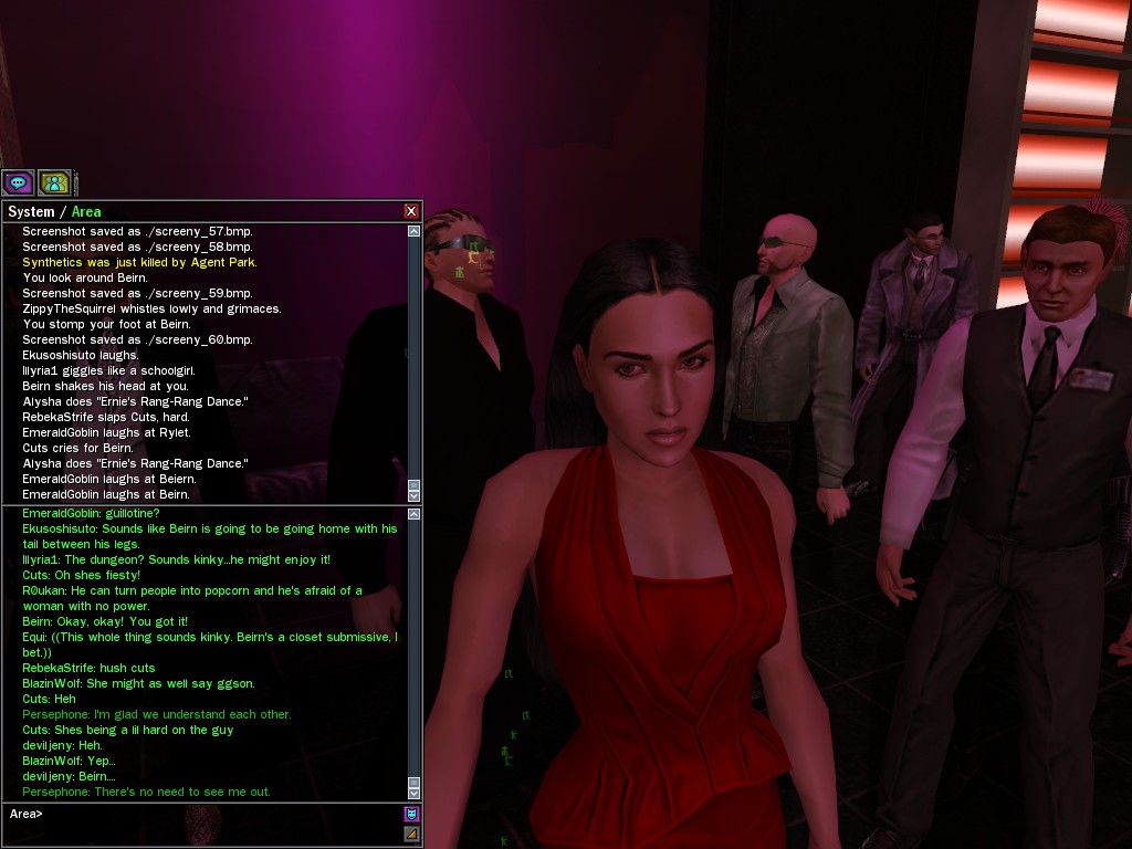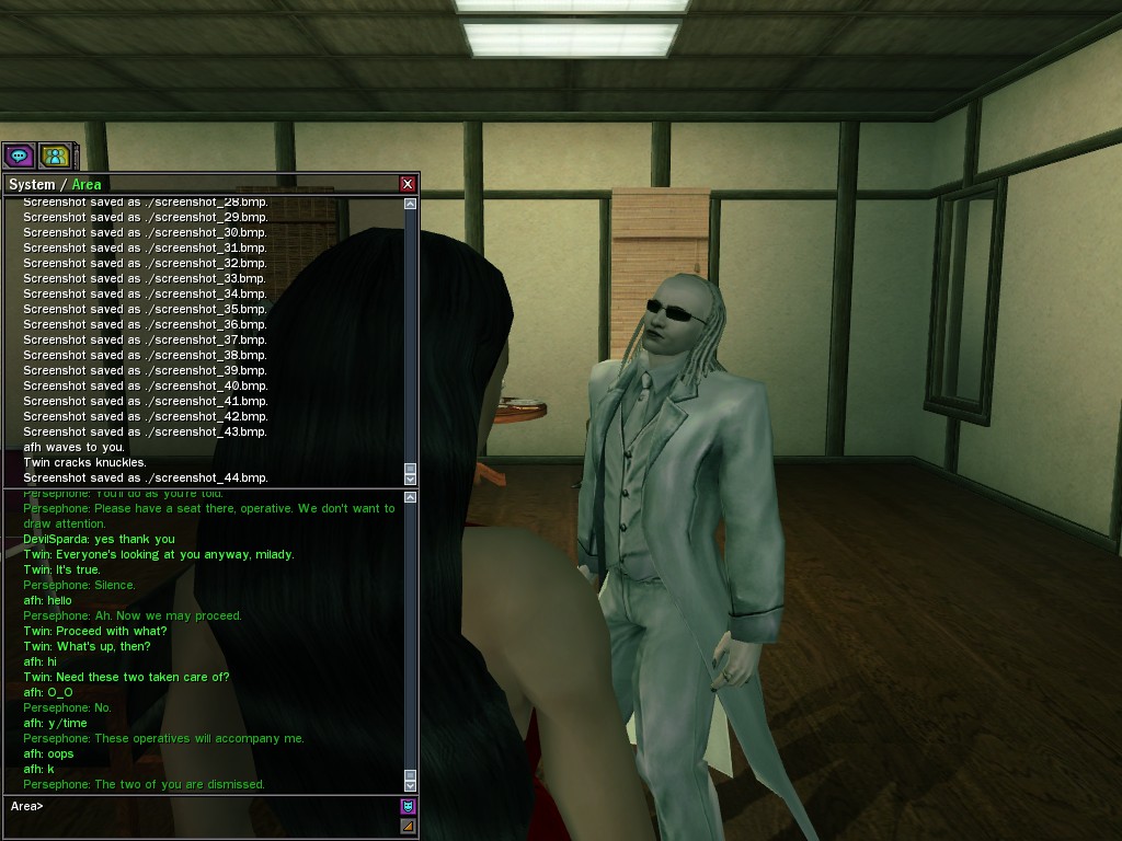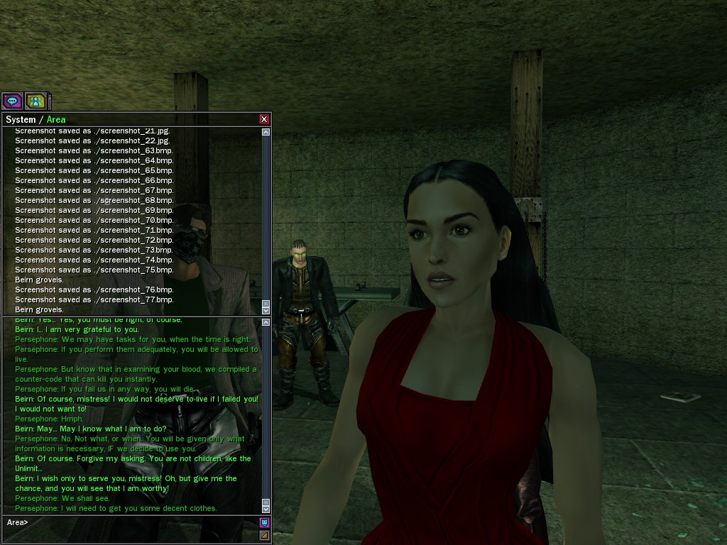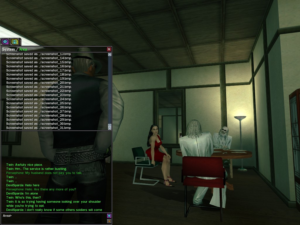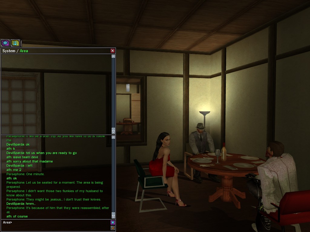 "I’m sure by now your questioning my motives and why I am working for the great Merovingian organization. Well that is unclear you see, a girl must keep some secrets. My current involvement is to make whatever Persephone wishes to be done, is done. You want to make deals; I am willing to hear you out.