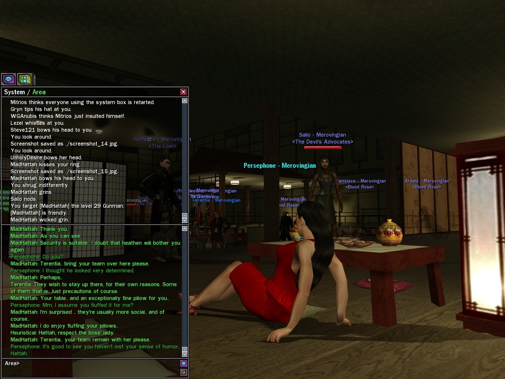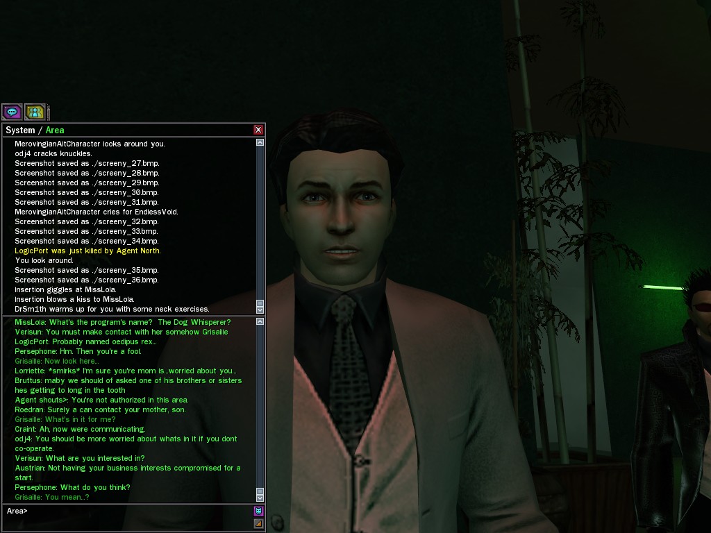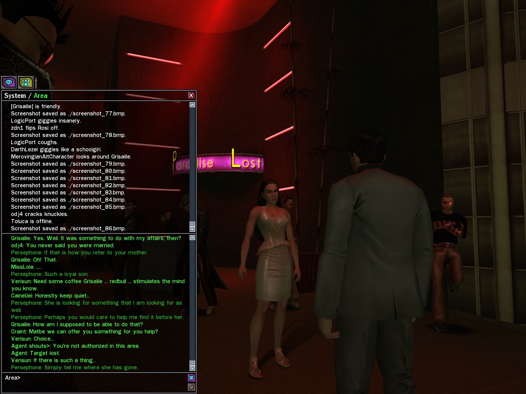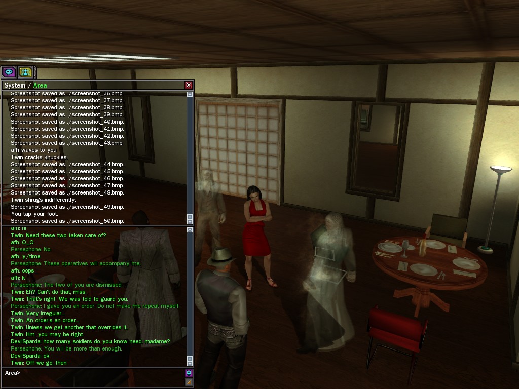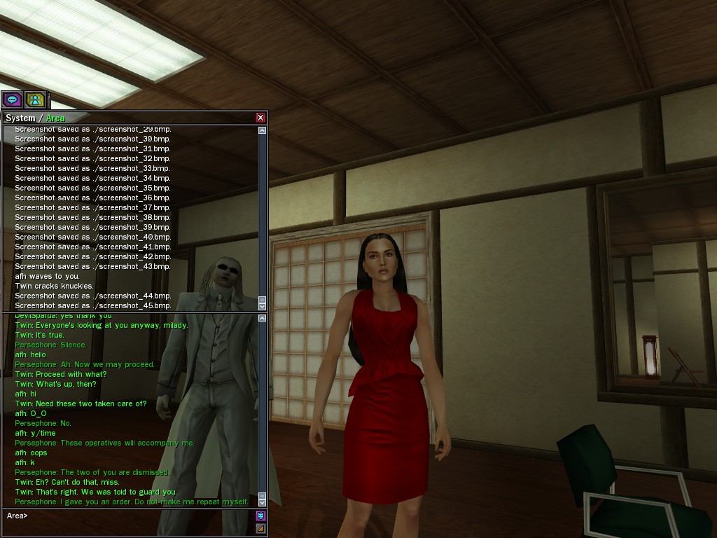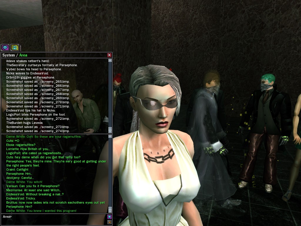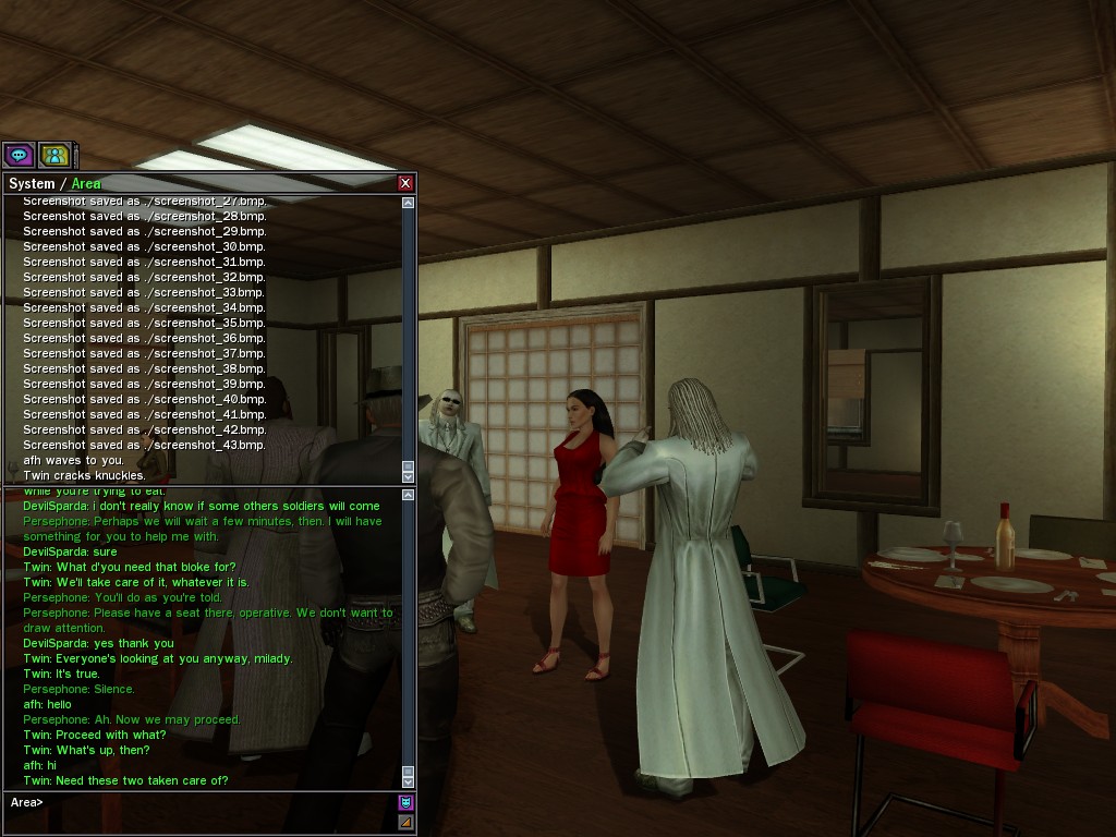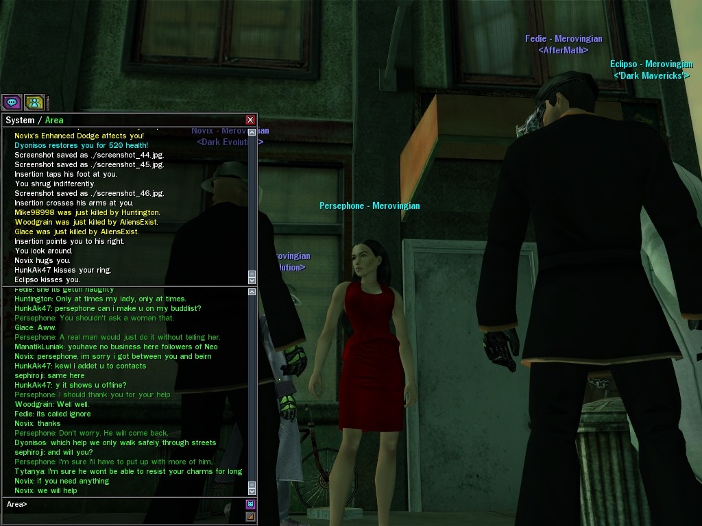 "I’m sure by now your questioning my motives and why I am working for the great Merovingian organization. Well that is unclear you see, a girl must keep some secrets. My current involvement is to make whatever Persephone wishes to be done, is done. You want to make deals; I am willing to hear you out.