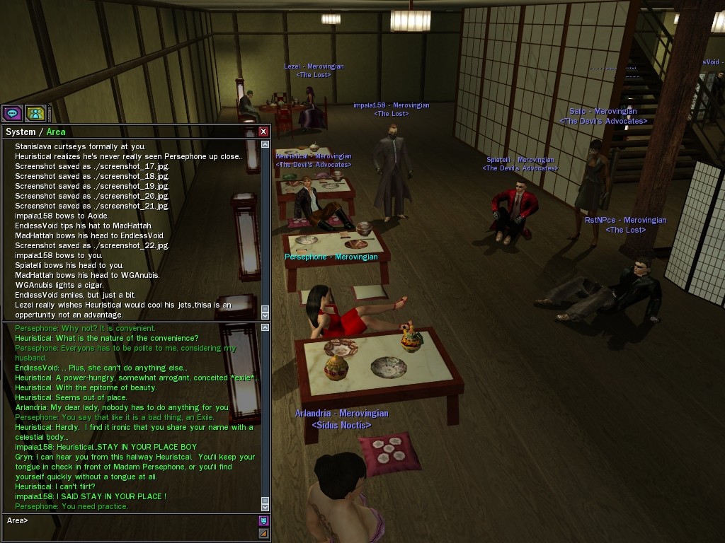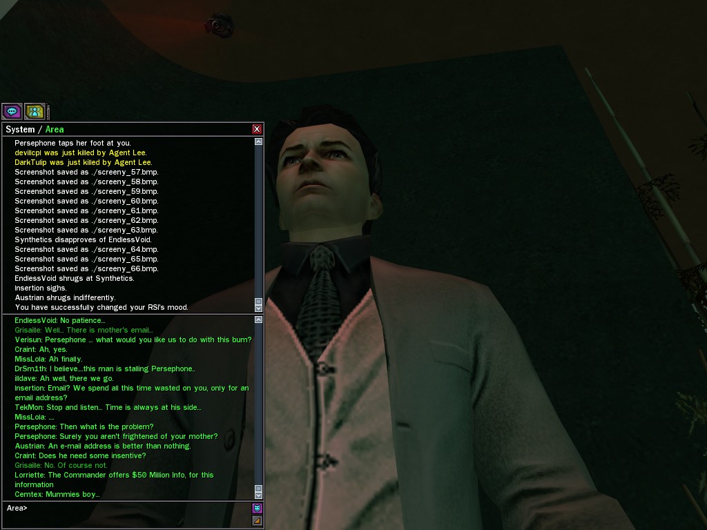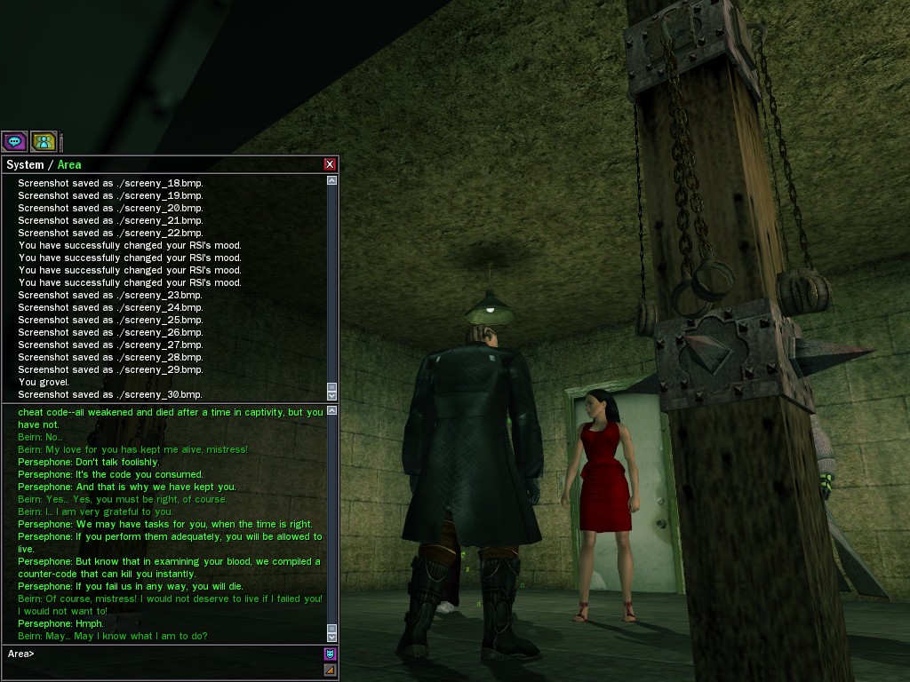 "I have many more secrets, some of which could have deadly consequences should I choose to release that knowledge... No... For now I am content in learning all I can. Which brings me to my teacher and confident Persephone. I was contacted by her shortly after I made my decision to leave Zion and my farce of a life to return to the lap of luxury.