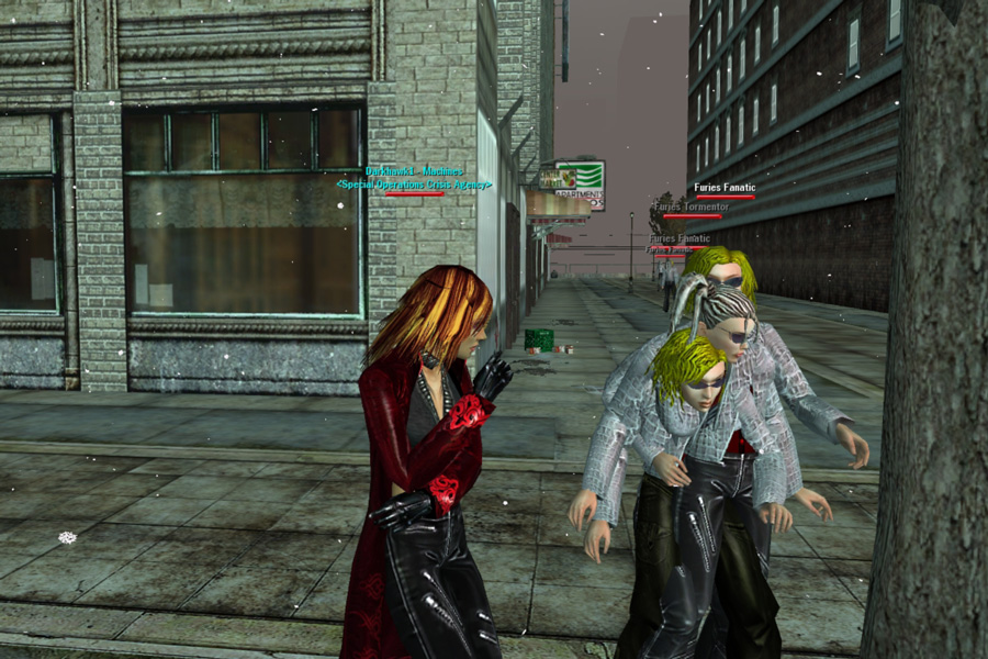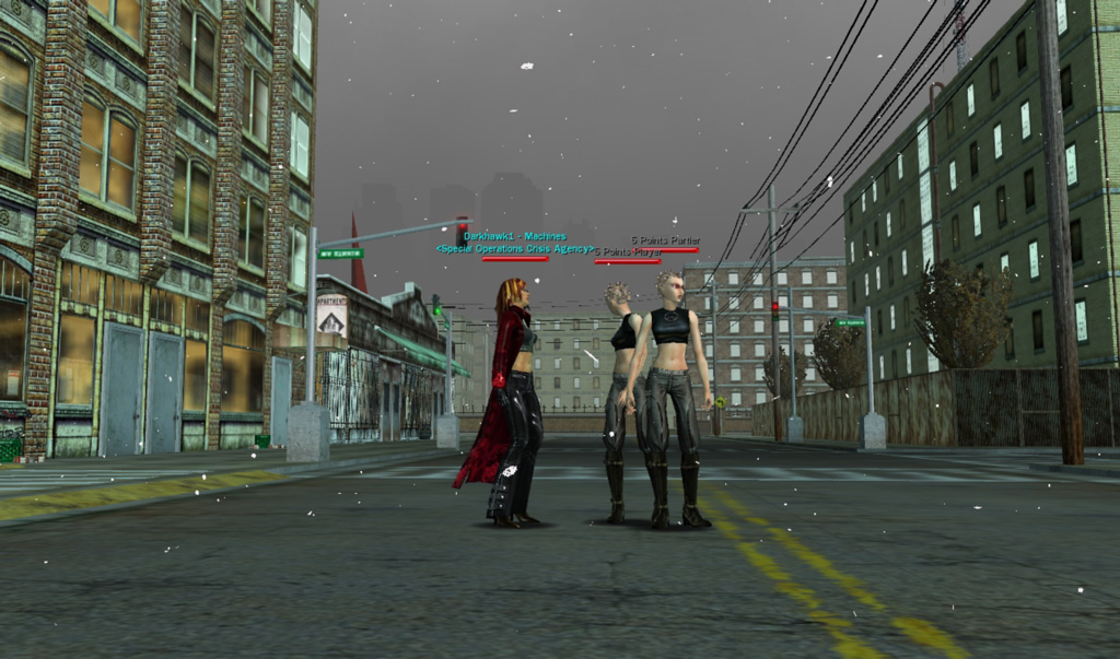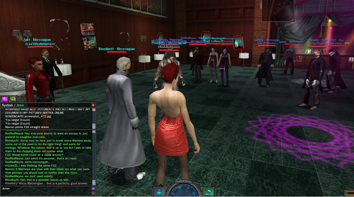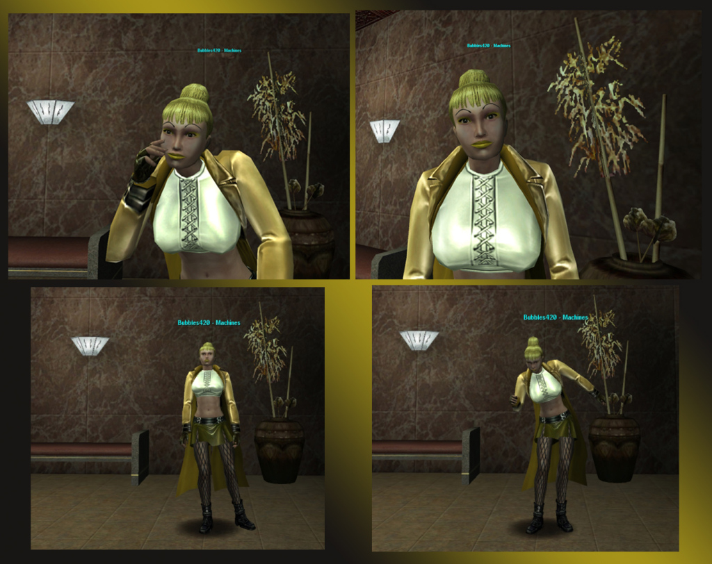 Misc Characters: Stuff that was added in over the course of MxO: Assassin, Daniel Wright, Oligarchs (Wireframe guys), Anome and his Unlimits, and other misc. characters Rarebit dropped in - might get used at points and others might get axed completely. Like I said, no "spunky" shiny pink bubble-gum girls, stuff like that. And more of a balance of Male and Female characters - not all femme-characters. I don't get love-crushes on my toons.  So, story Ideas - and all that goes with bringing back LEs, structured and scheduled LEs - because the Live Events where the life-blood of MxO. Something that did make it very different from other MMOs where you do nothing but grind away. Cinematics ... hmm, I am an animator (I have an Assoc. degree in Art & Animation) If there was Time I would try to make cinematic pieces. It would depend.