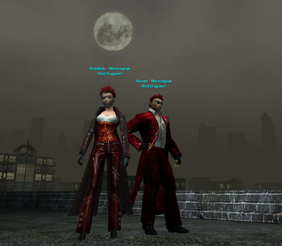 Here's some screenshot dumps I wanted to put because some are fun, and also illustrate our evermost favorite bugs. First - some new characters I made up: A cute pair to RP with. I sort of juggled some of my existine non-played Syntax characters around and re-dressed them up a bit to do something fun with them.