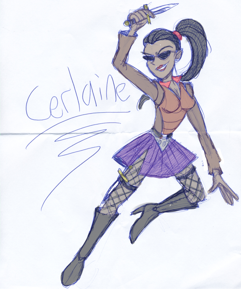 Cerlaine - the sistah' of expert knife throwing. A deadly girl with a super sharp aim.