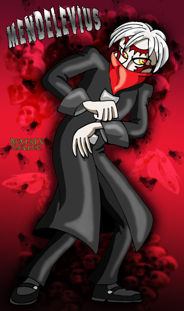 Sometimes you run across a very unique Player Created Character - and Mendelevius certainly is one. Mendelevius is defined as being a program writen that brings and spreads diseases of many kinds throughout the Matrix. Perhaps it once his purpose, as a certain control measure? (sometimes in labratories disease is used to control populations and study their effects on living subjects ((usually rats/mice/insects - but in The Matrix Story case - the machines experimenting on bluepill humans)) ) Anyway: somewhere along the line Mendelevius became corrupted and decided to take his abilities to try and overtake The Matrix and the blue-pills within for himself. Thus trying to gain control of The Matrix. He was of course defeated and has to go into exile. Now he serves the Mervovingian - but he does have his own agendas still. *In a sense - Mendelevius could be defined as Pestilence, which was one of the 4 horsemen of the Apocalypse. And alot of the mythos of The Matrix is based on biblical references and this player decided to spin up on that a little. (so yes, I did use the term "Harbringer" in refference to Mendelevius's character correctly)