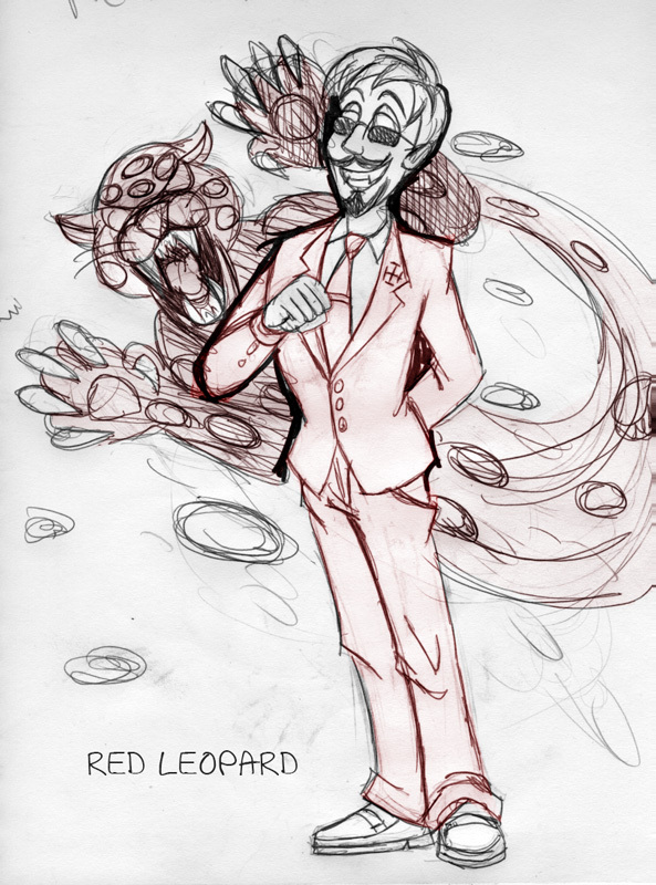 -------------------------------------------------------------------------------------------------------------------------------------------------- Here's for a really close friend of mine. RedLeopard! I am sure lots of you on Syntax know him, he sure loves to talk. He's super nice and pretty much always cheerful. And always a strong, die hard, supporting member of the Tetragrammaton. RedLeopard is really a great guy, sometimes a bit ... talkative ... but he's really upbeat and friendly.  The Leopard image in the back will be much more faded and absorbed into the background. I sort of want him to be his cheerful, go-lucky self, but have the fierce spirit of the leopard behind him. And red!