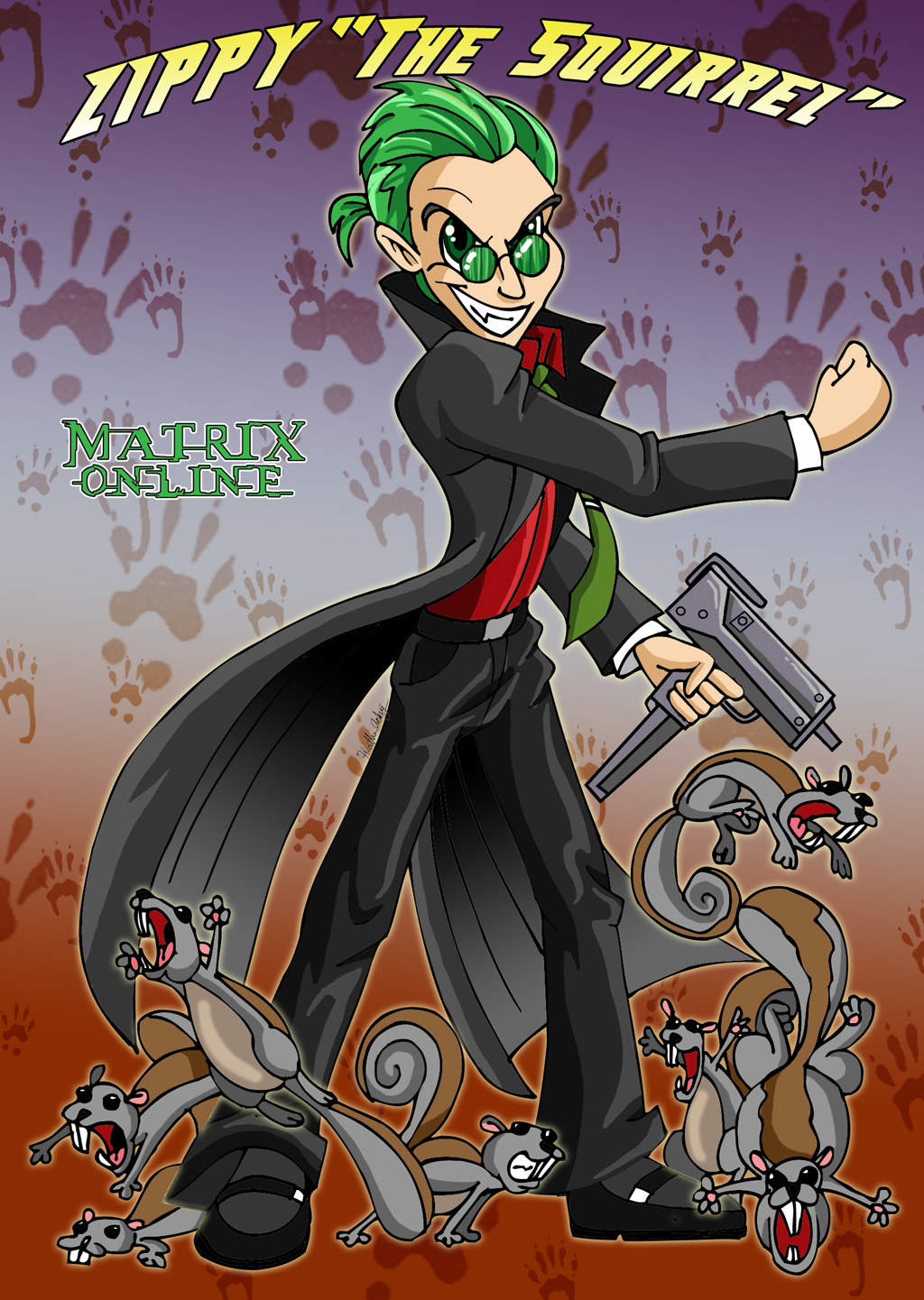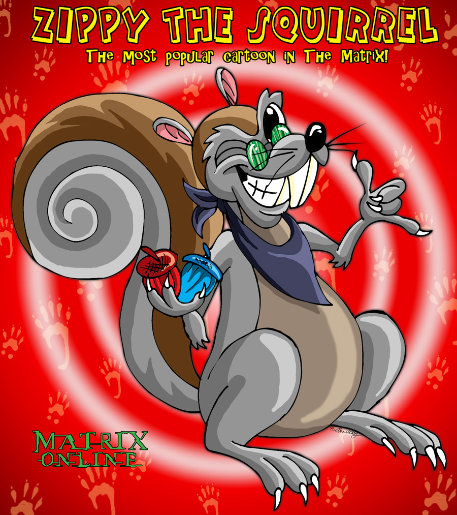 I really hope Zion gets some more positive points going for it sooner or later. I mean, I'm a machine person - but I understand the great need for balance. When I watched the scene from Revolutions where Neo was making the Truce Deal with DuesExMachina, I remembered what this whole game was spun off of originaly. That 1 scene ... Here's to hoping Zion gets some kudos soon!! ---------------------------------------------------------------------------------------------- Neo: I only ask to say what I've come to say, after that, do what you want and I won't try to stop you. Deus Ex Machina: Speak. Neo: The program 'Smith' has grown beyond your control. Soon he will spread through this city as he spread through the Matrix. You cannot stop him, but I can. Deus Ex Machina: We don't need you! We need nothing! Neo: If that's true, then I've made a mistake and you should kill me now. Deus Ex Machina: What do you want? Neo: Peace. (Zion: Temple entrance) {Sentinels charge the temple entrance, then suddenly stop} Niobe: What are they doing? *to Morpheus* What are you doing!? Lock: Morpheus! (01) Deus Ex Machina: And if you fail? Neo: I won't. (Zion: Temple entrance) Niobe: {looks up and sees sentinels slowly circling} Neo. Morpheus: He fights for us. ---------------------------------------------------------------------------------------------------------------------------------------------------- ZippyTheSquirrel!! Yes - here he is. This one is kinda puzzling, had me stumped for a while - but I really wanted to do something fun. Zippy has control over the Squirrel programs in the Matrix. He can send an attack squad of squirrels after you on a split second notice!! - Okay, that is totally silly, but it's really funny!! It IS the Matrix you know ...  ZippyTheSquirrel with his attack squad.