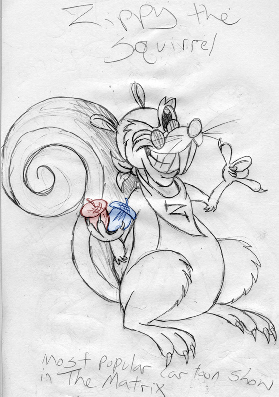 And I made a little extra of him - The most popular cartoon show in The Matrix. All the Bluepill children get up every Saturday morning to watch the Zippy The Squirrel Show!! He has magical Red and Blue acorns. Ooouuuu