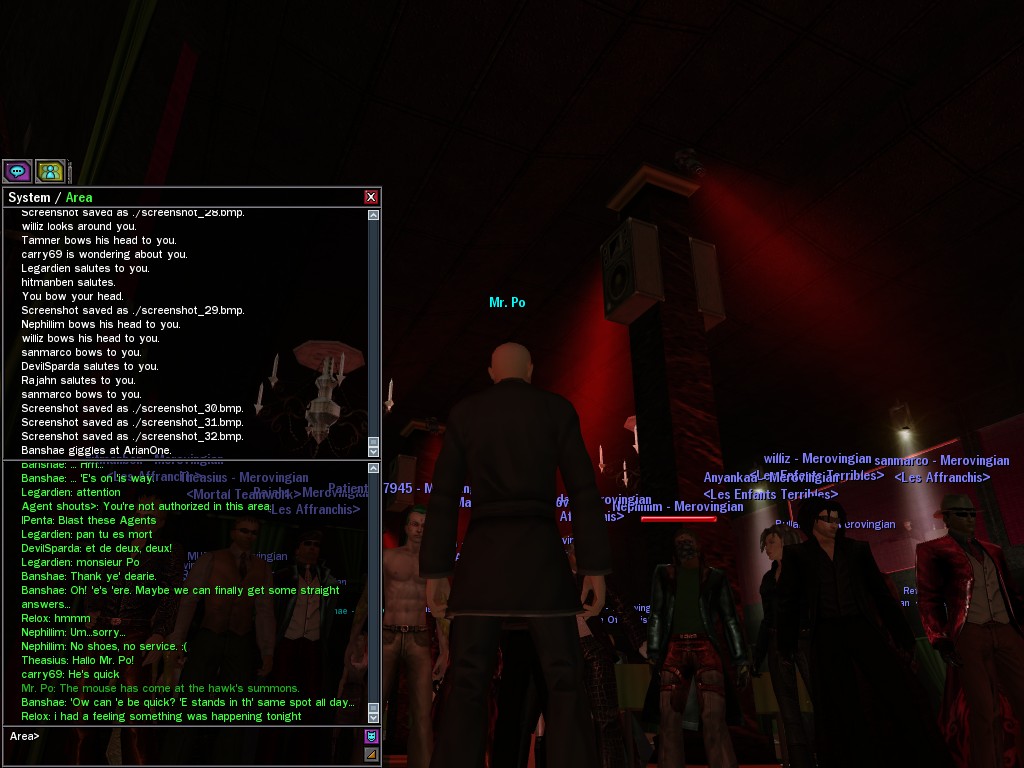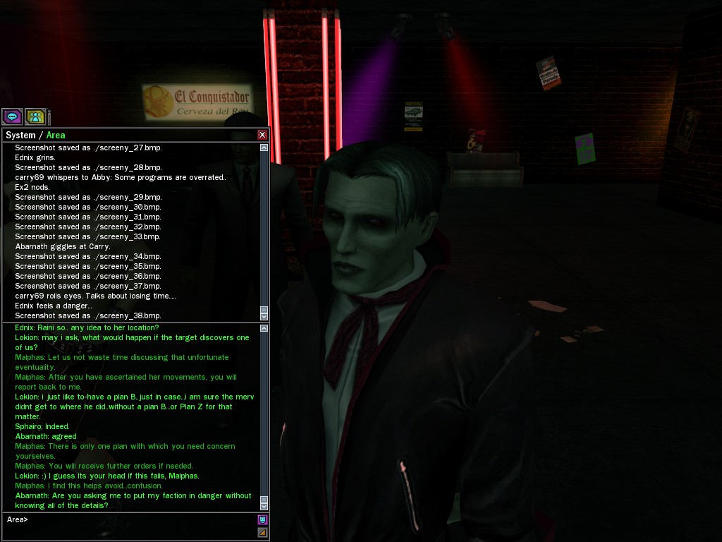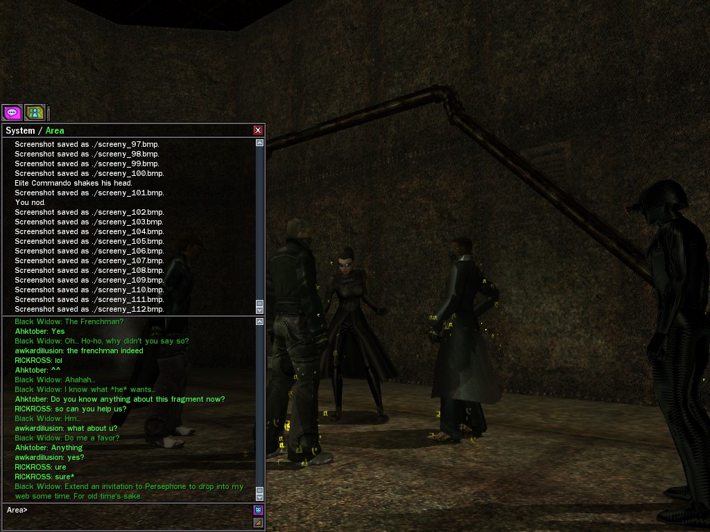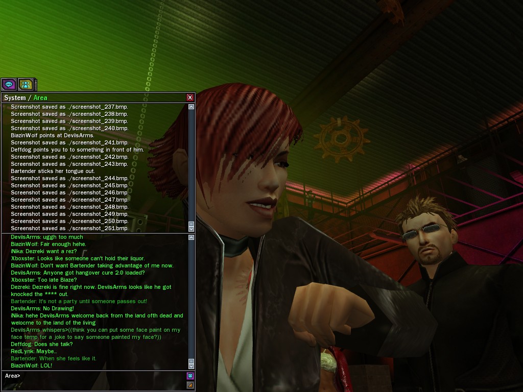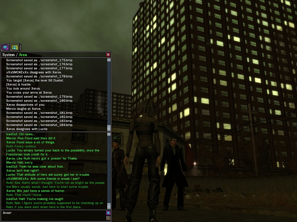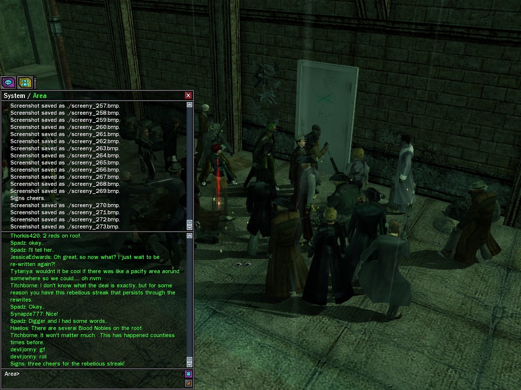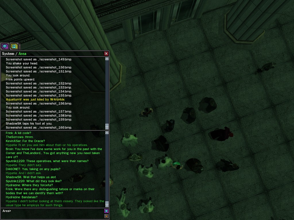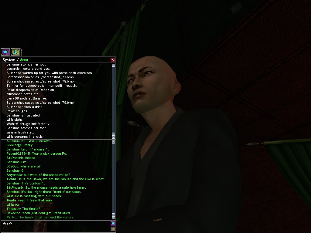 The leader of the reclusive Ethereals made a bold raid on Club Jade, apparently having been convinced by Anome that seizing it for his people would be an easy matter. A group of operatives who happened to be having a party there soon showed him the error of his ways. It is a sad day when even programs are fooled by the viper tongue of one of the worst examples of humanity this simulation has seen.