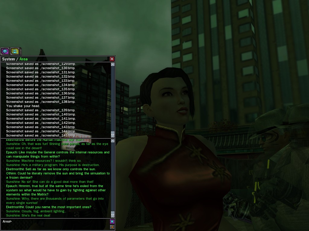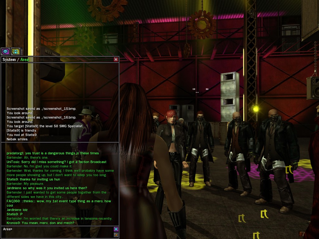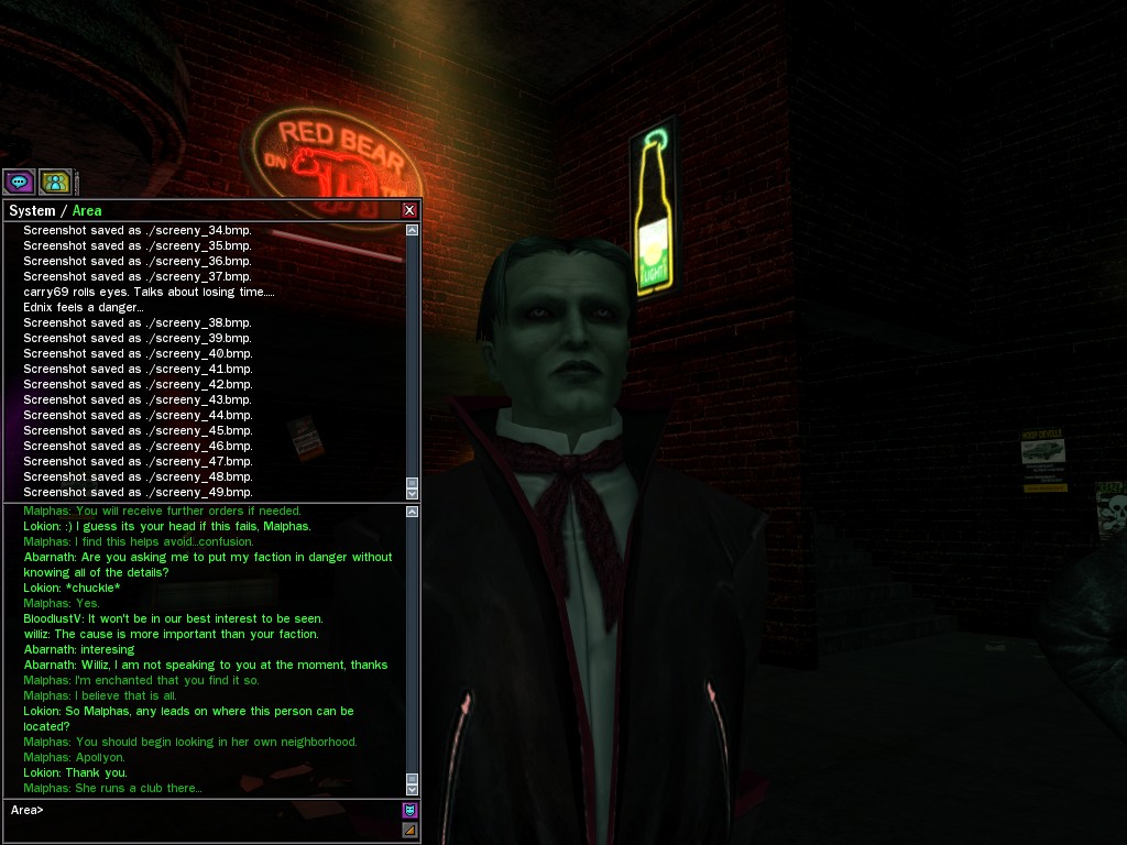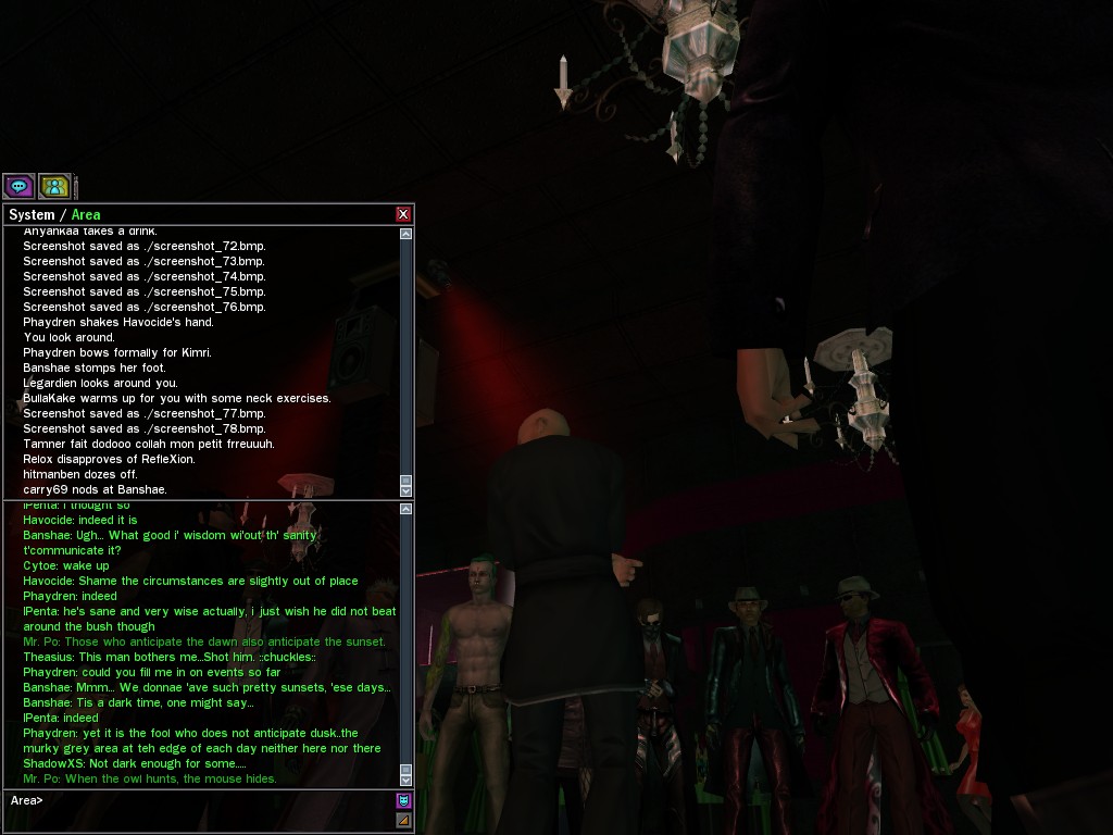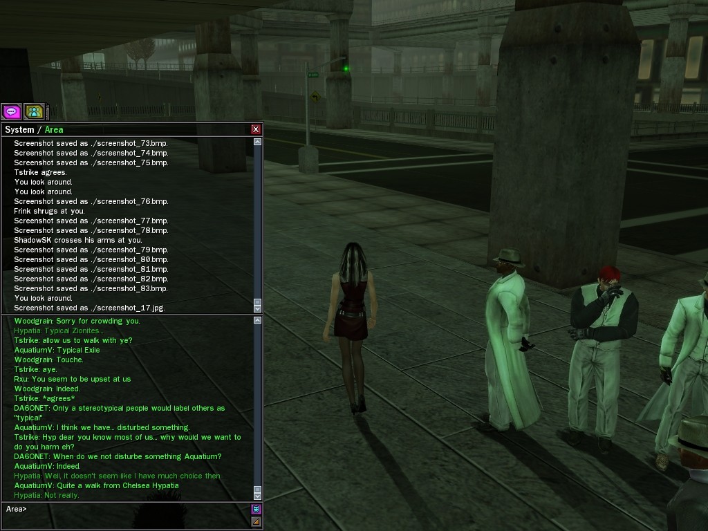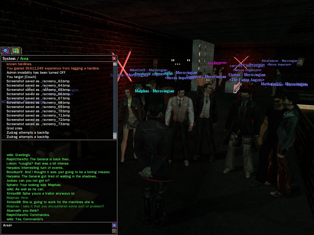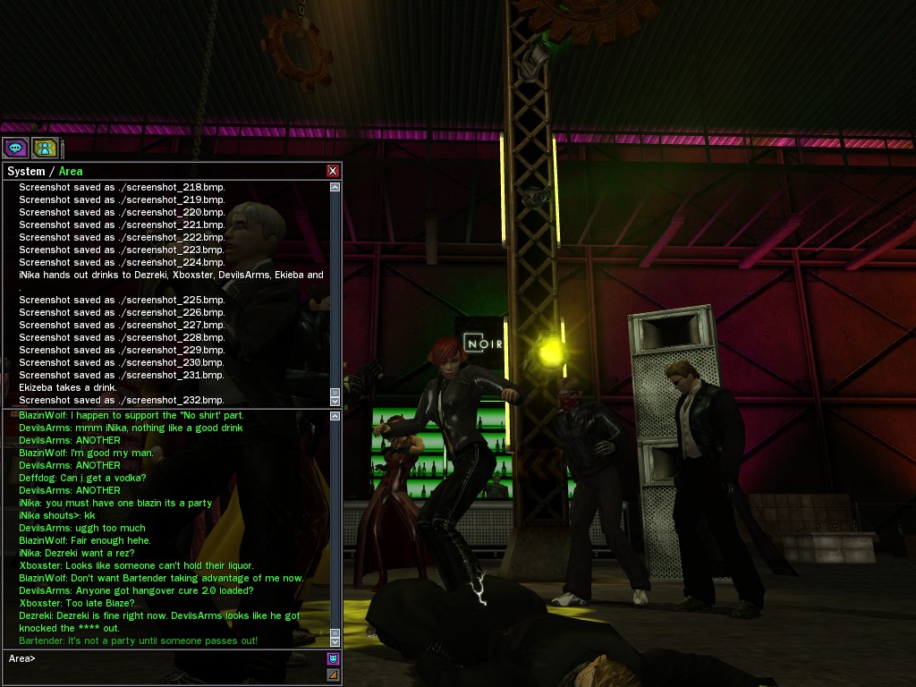 The leader of the reclusive Ethereals made a bold raid on Club Jade, apparently having been convinced by Anome that seizing it for his people would be an easy matter. A group of operatives who happened to be having a party there soon showed him the error of his ways. It is a sad day when even programs are fooled by the viper tongue of one of the worst examples of humanity this simulation has seen.