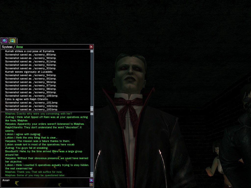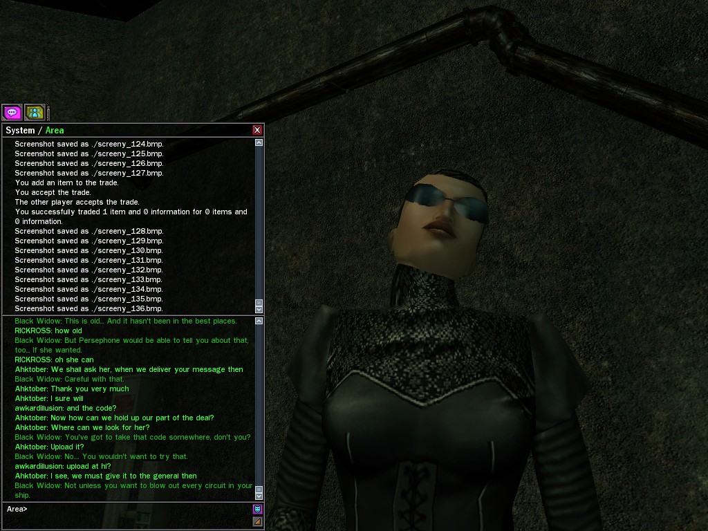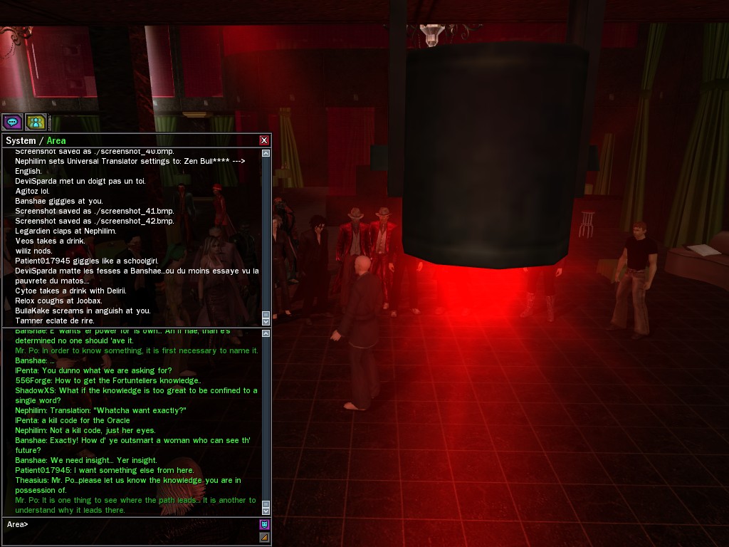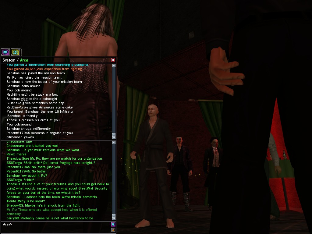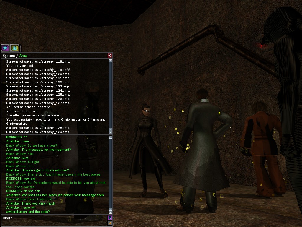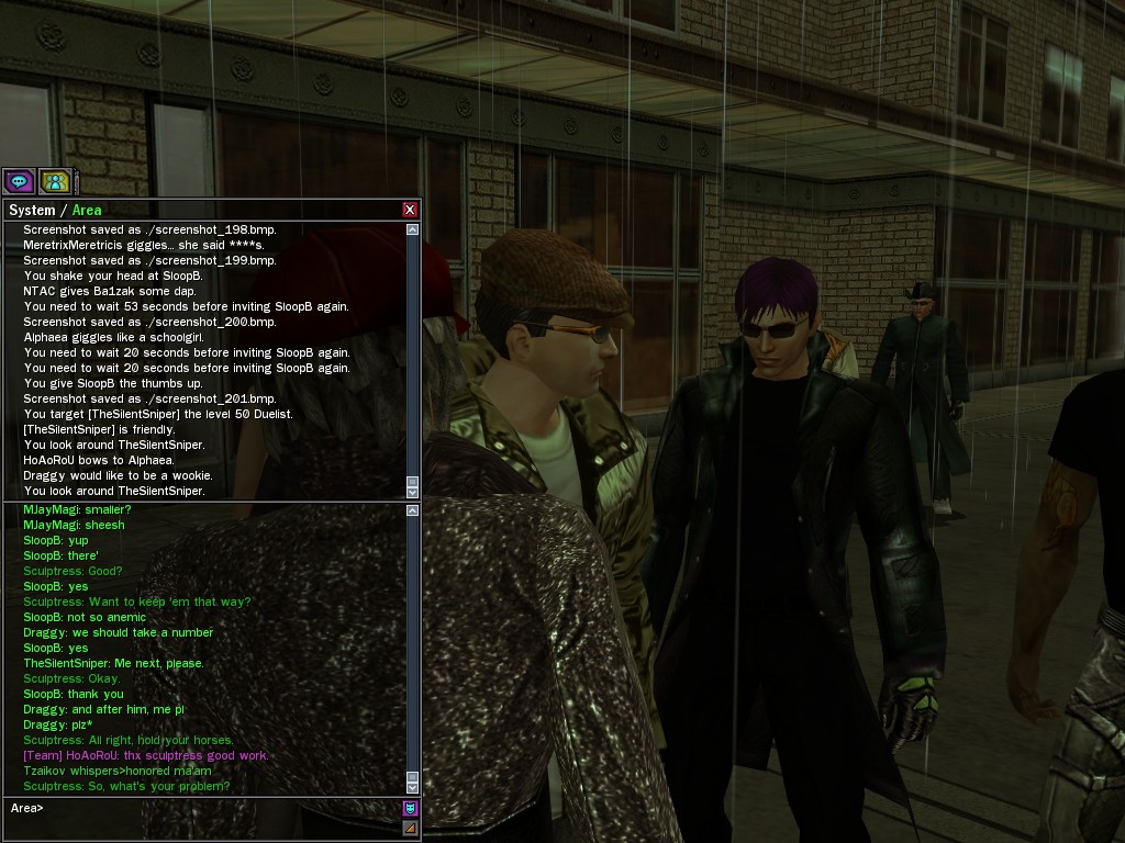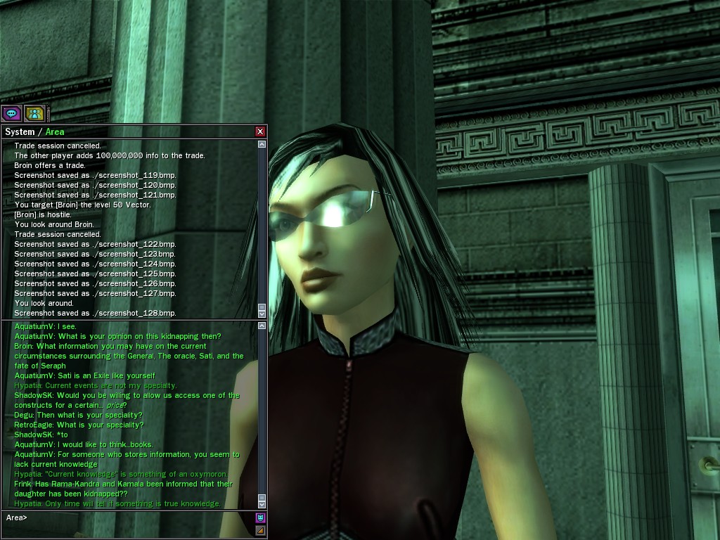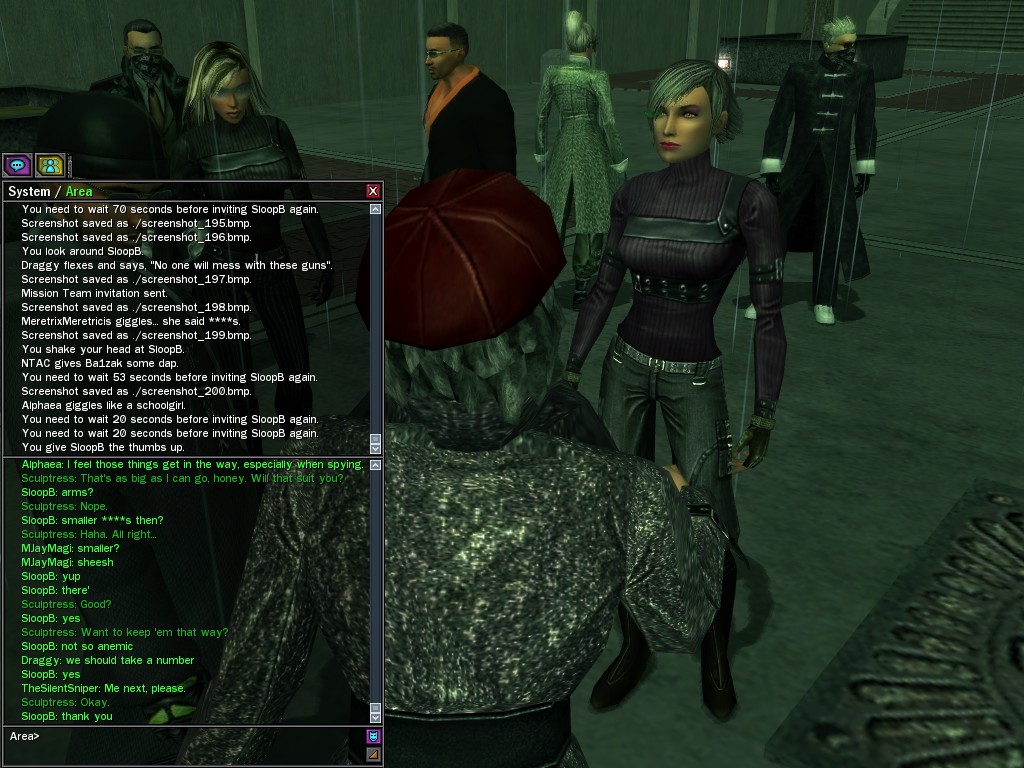 The leader of the reclusive Ethereals made a bold raid on Club Jade, apparently having been convinced by Anome that seizing it for his people would be an easy matter. A group of operatives who happened to be having a party there soon showed him the error of his ways. It is a sad day when even programs are fooled by the viper tongue of one of the worst examples of humanity this simulation has seen.
