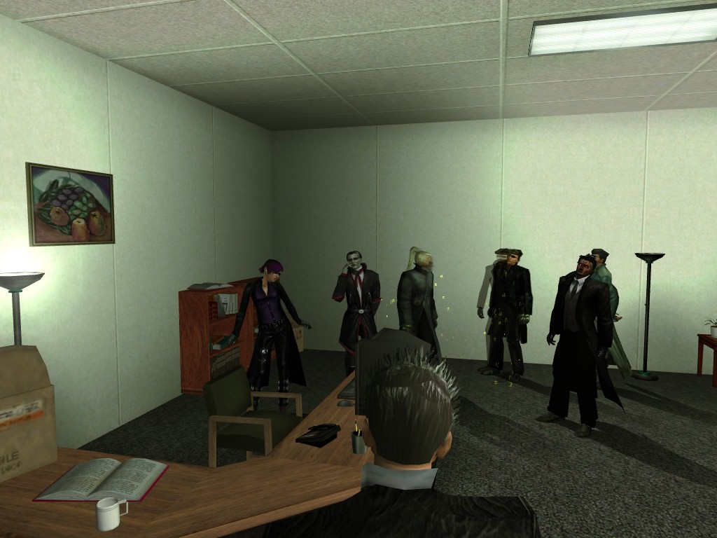 The prospect of a steamy dip might have induced someone--particularly someone foolish enough to cross the Merovingian--into letting his guard slip. If we were to venture through the front doors of the bath house, heading somewhat to the right, then through a maze of dubious, polished wood rooms and corridors, who knows what we might find therein?