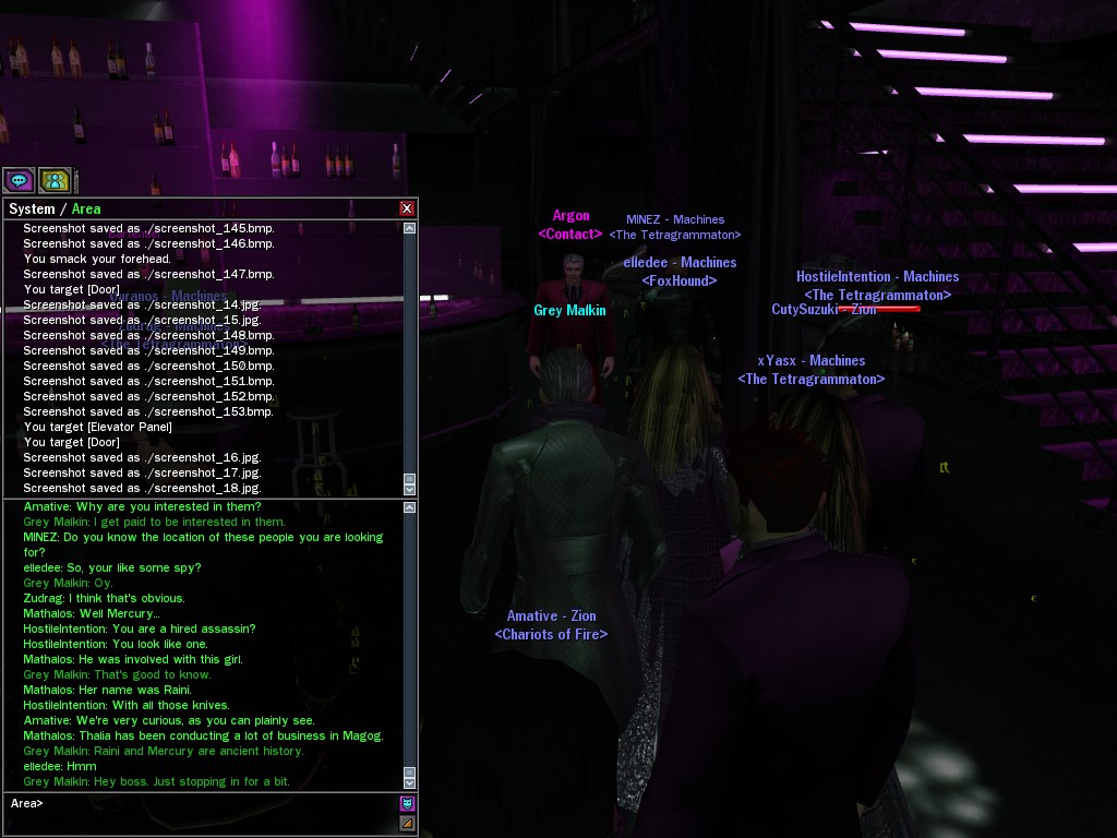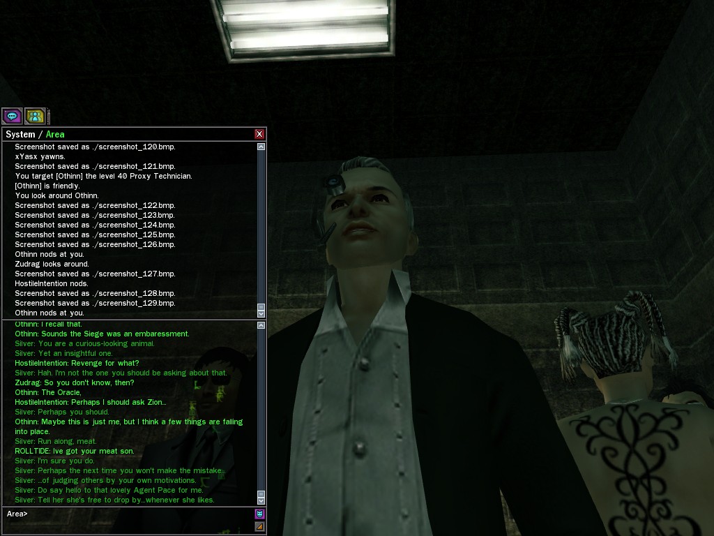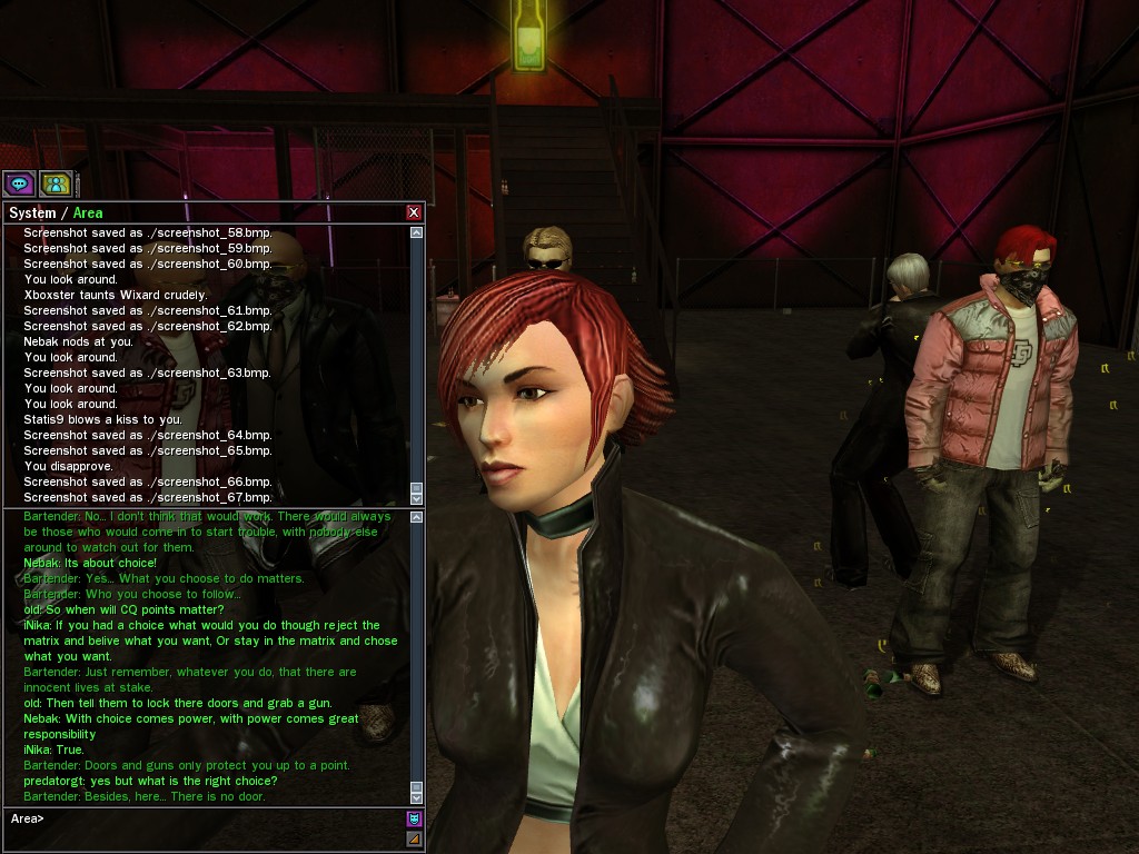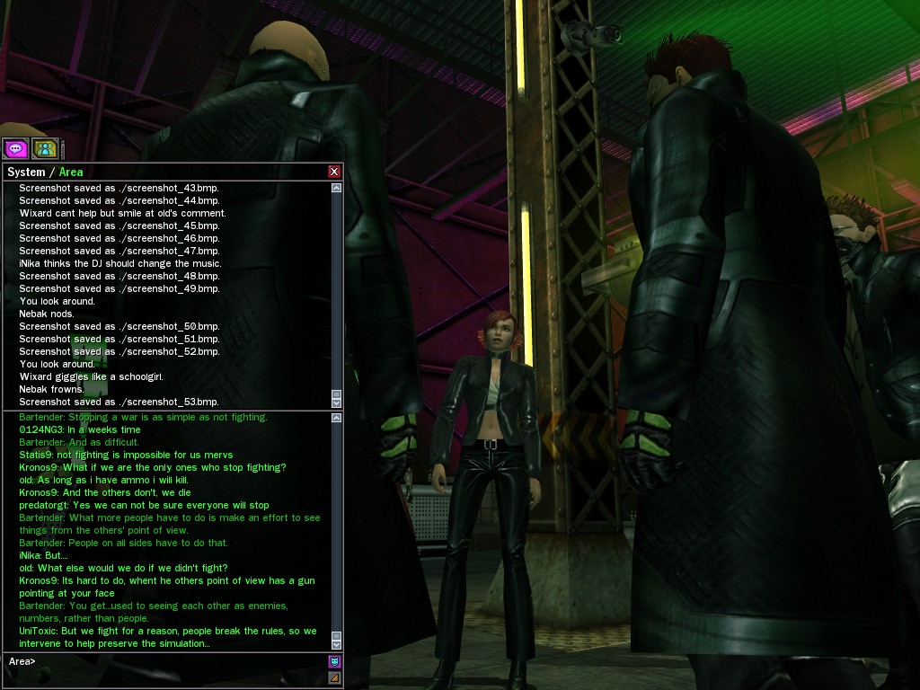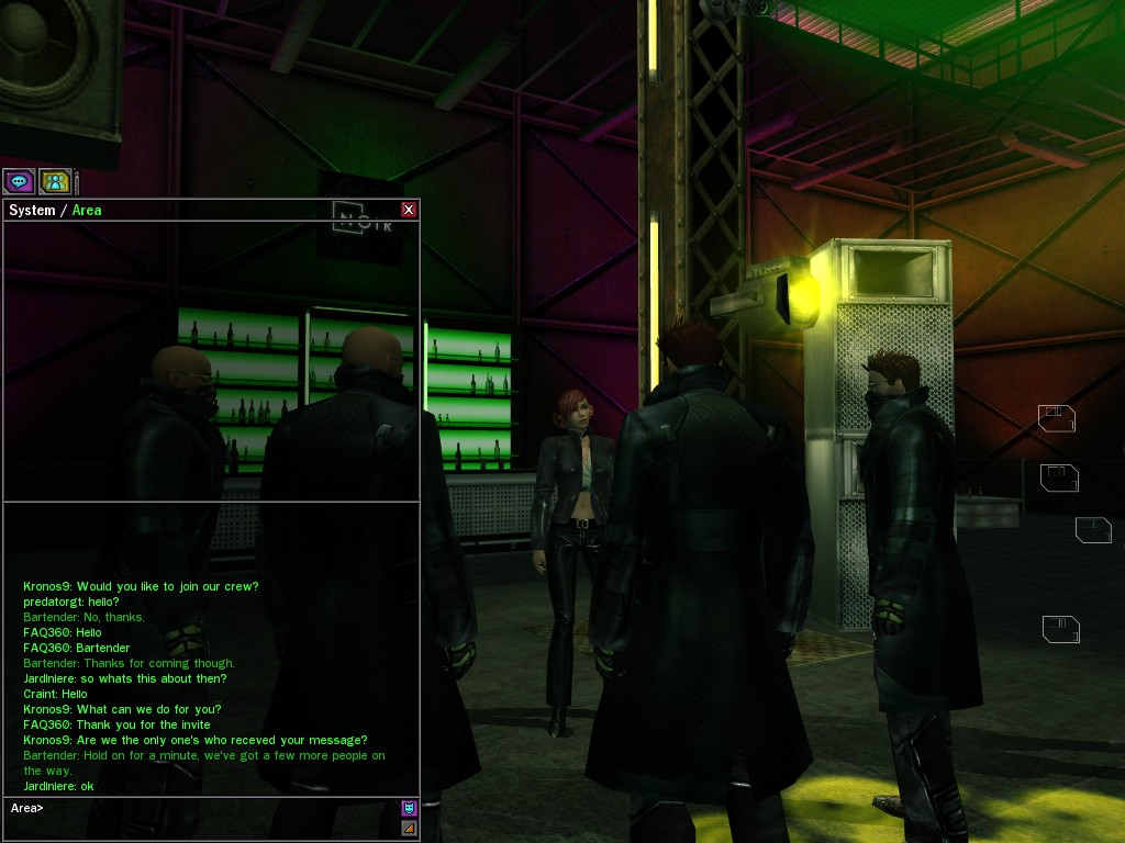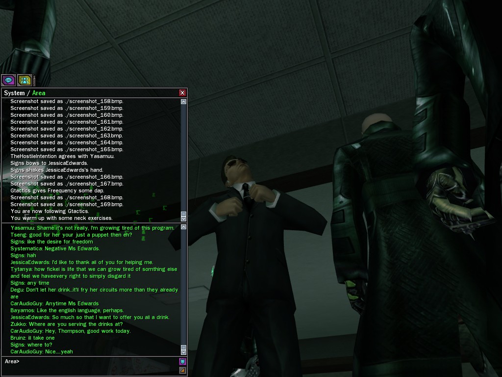 The Edgewater Exile known only as "The Bartender" invited a small contingent of operatives from Zion, the Machines, and our own organization for what turned into something of a laurel-branch-waving lecture on maintaining peace in the Matrix.