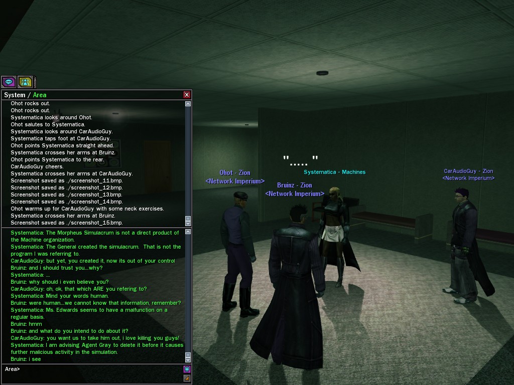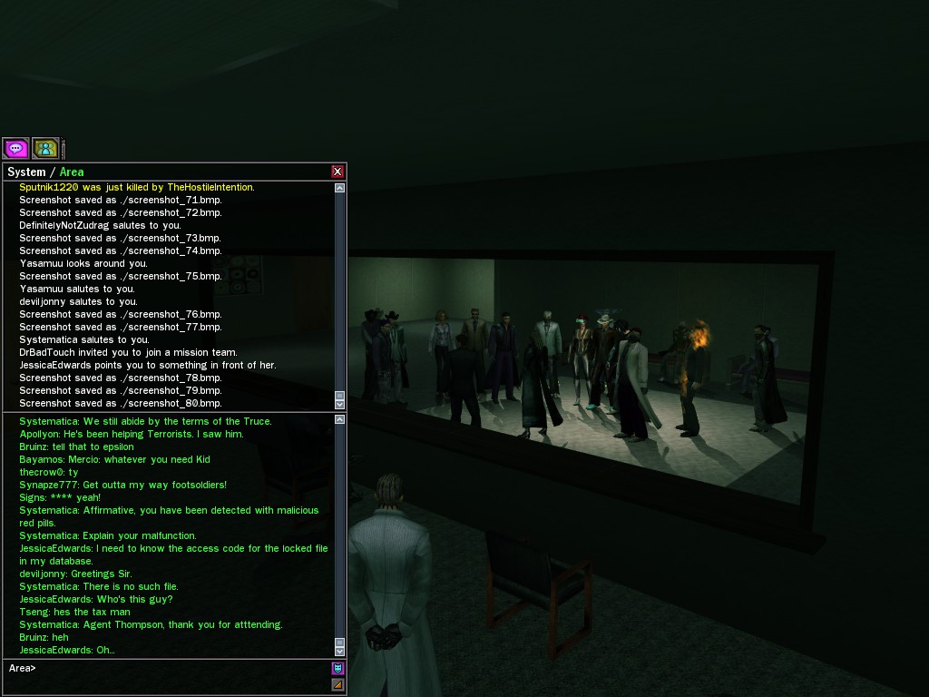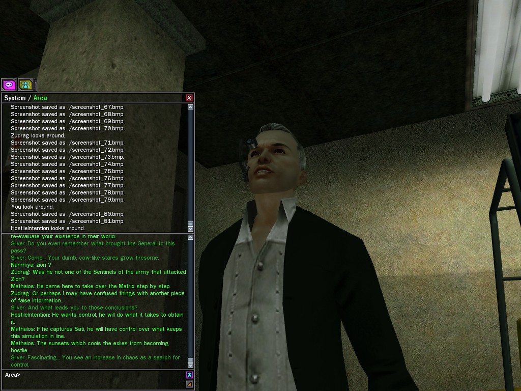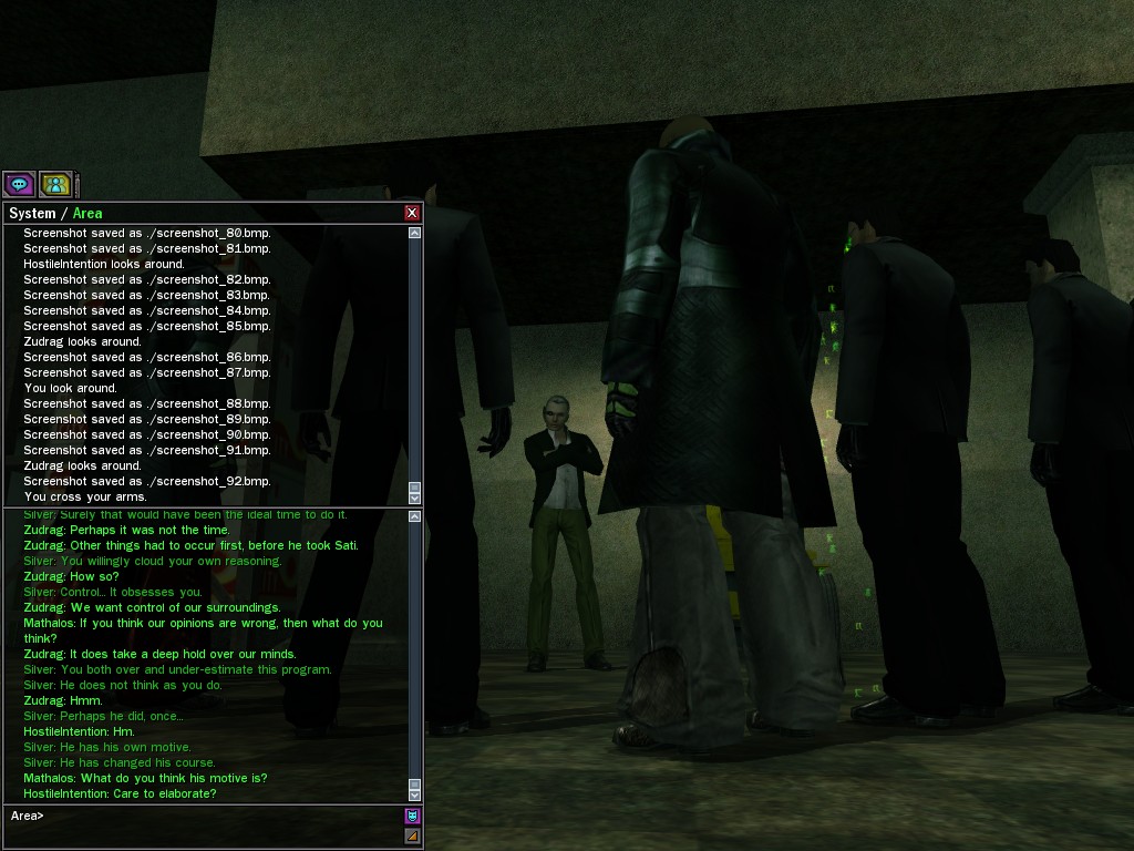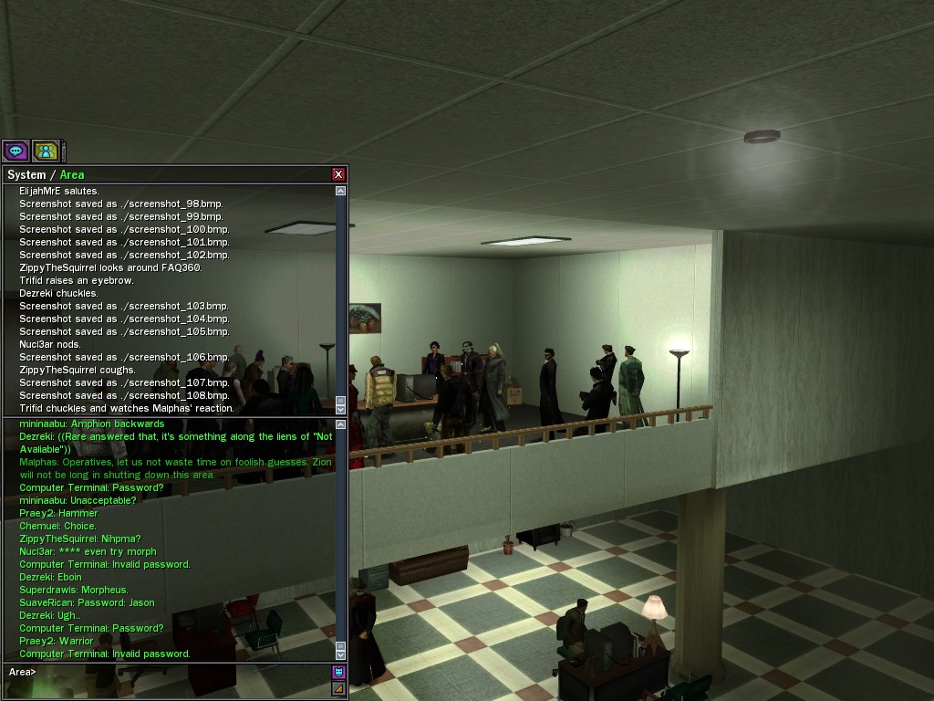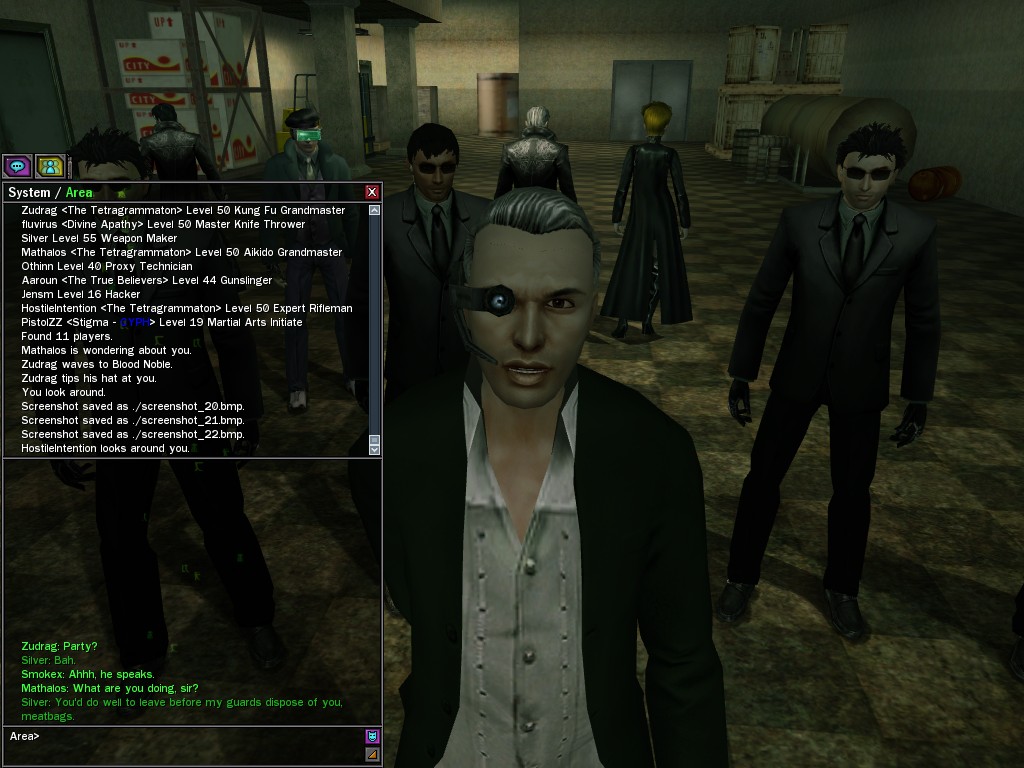 The Edgewater Exile known only as "The Bartender" invited a small contingent of operatives from Zion, the Machines, and our own organization for what turned into something of a laurel-branch-waving lecture on maintaining peace in the Matrix.