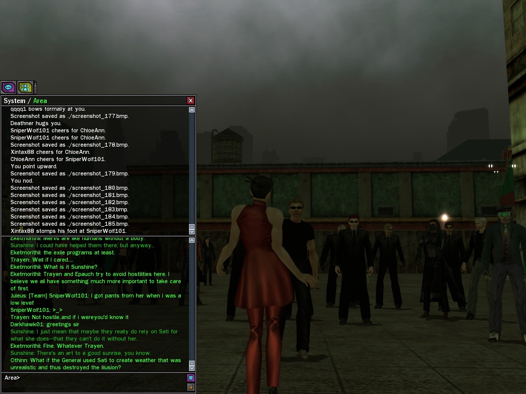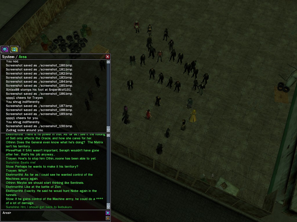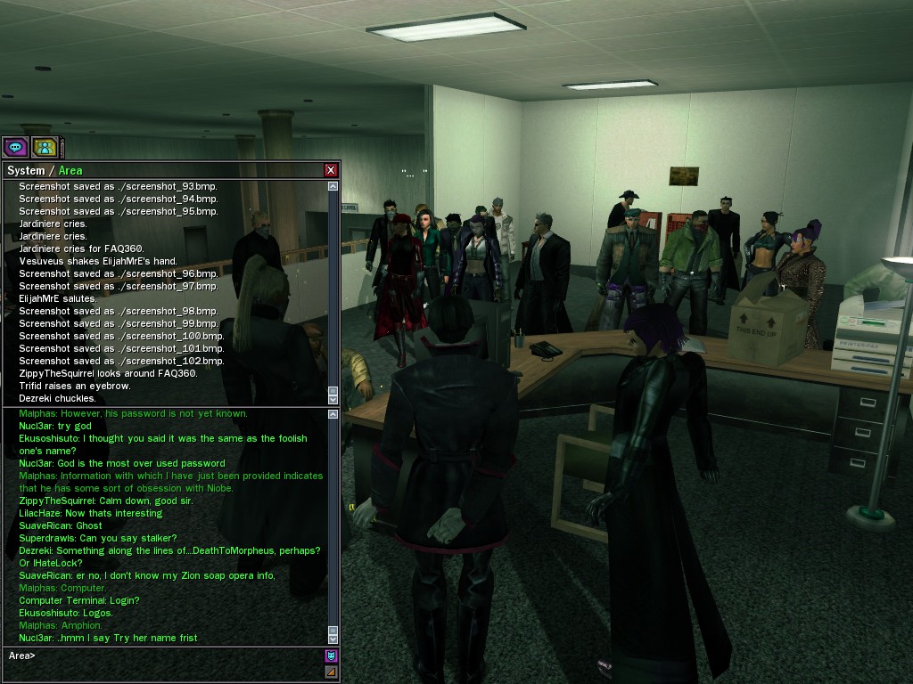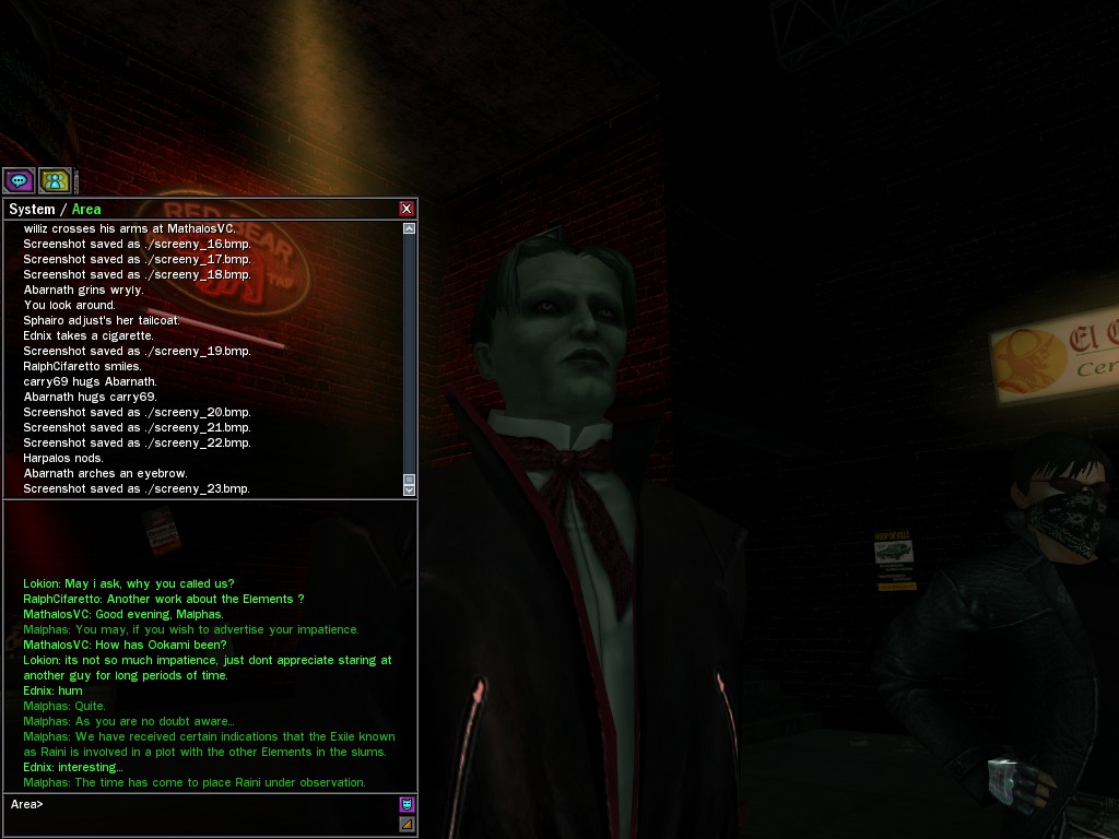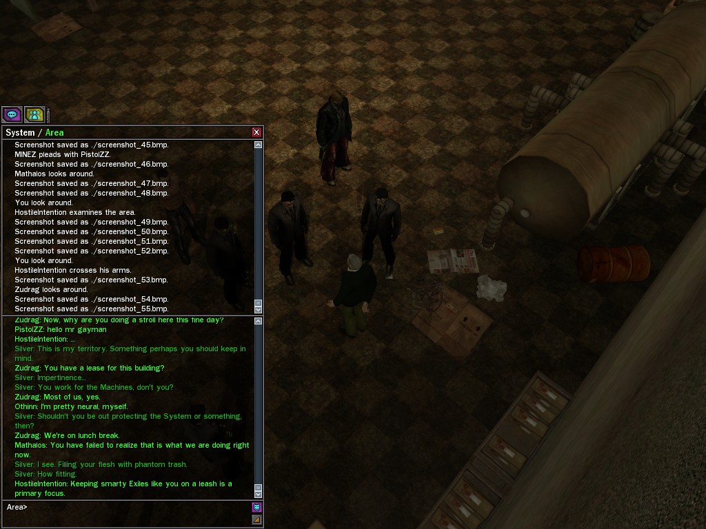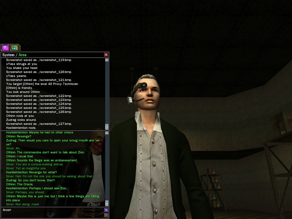 The Edgewater Exile known only as "The Bartender" invited a small contingent of operatives from Zion, the Machines, and our own organization for what turned into something of a laurel-branch-waving lecture on maintaining peace in the Matrix.