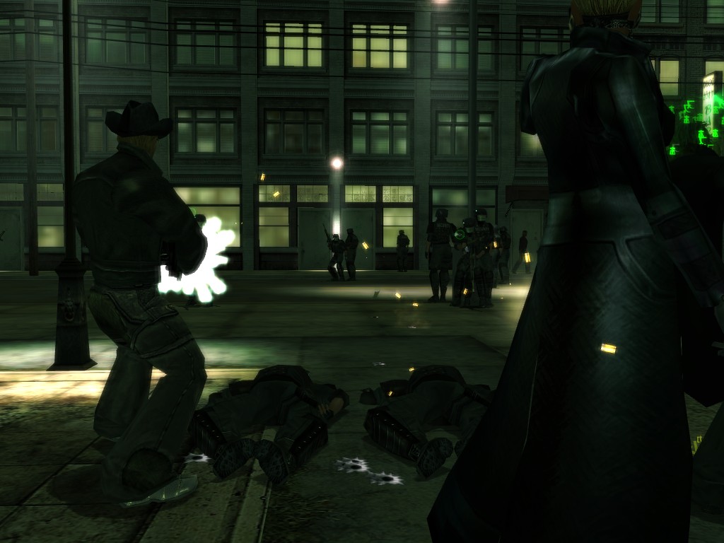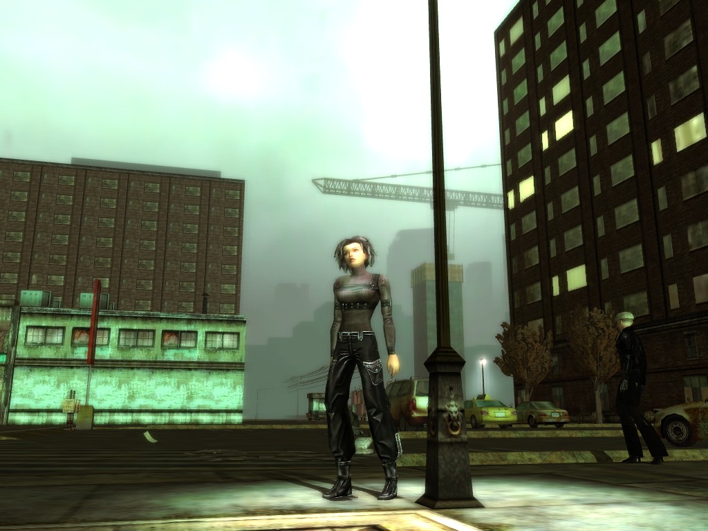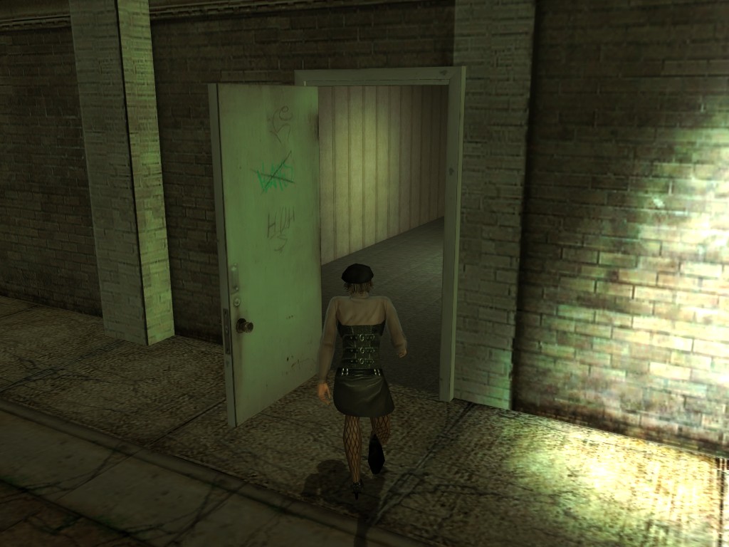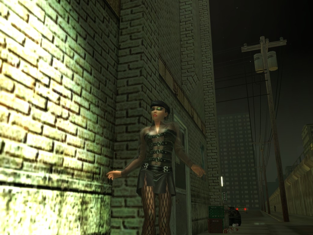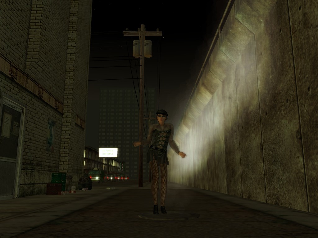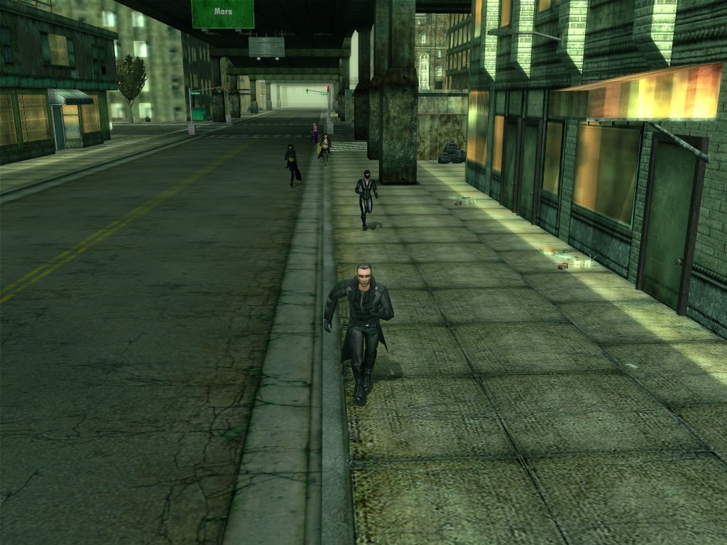 The body of our employee, wholly deceased, lies on the floor. Noticing nothing more of interest here, we might return outside, where our glance would naturally find its way to the gang members ceaselessly pacing about the vicinity. A quick check on these "Brothers of Destiny" uncovers a piece of information that would be more of the usual nonsensical filler found all too often in this dreary place, except that it brings to mind one of the rumors concerning the other party in question.