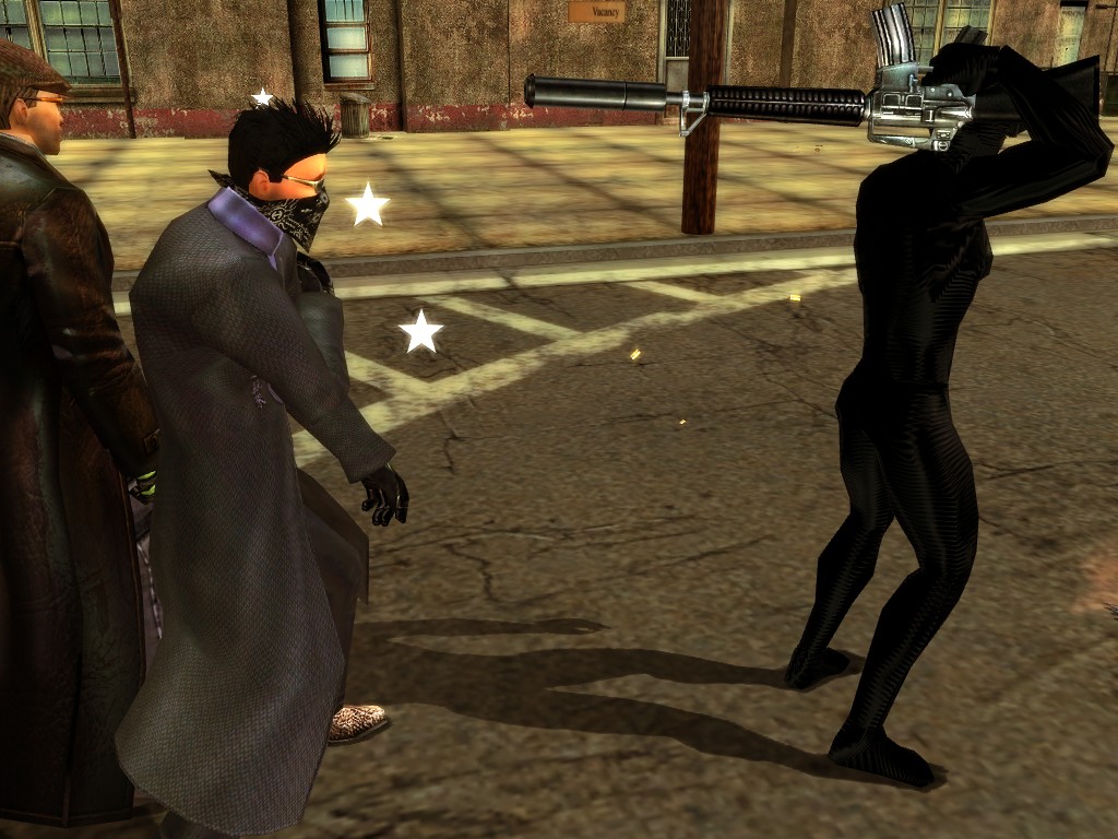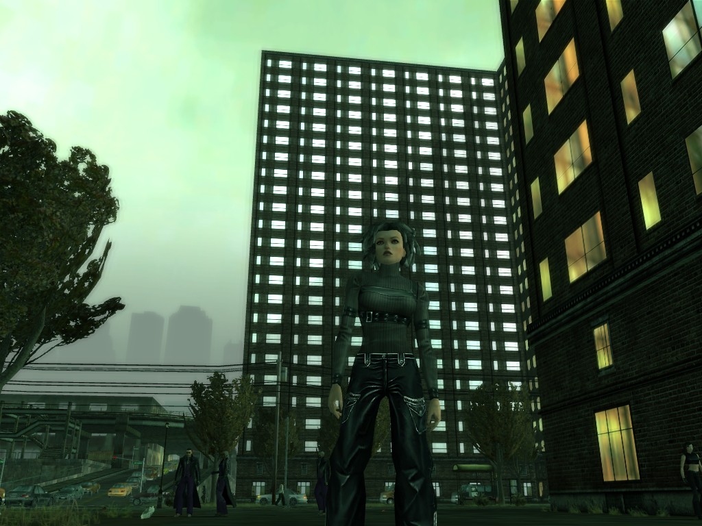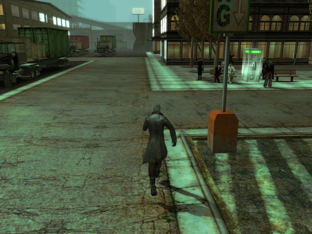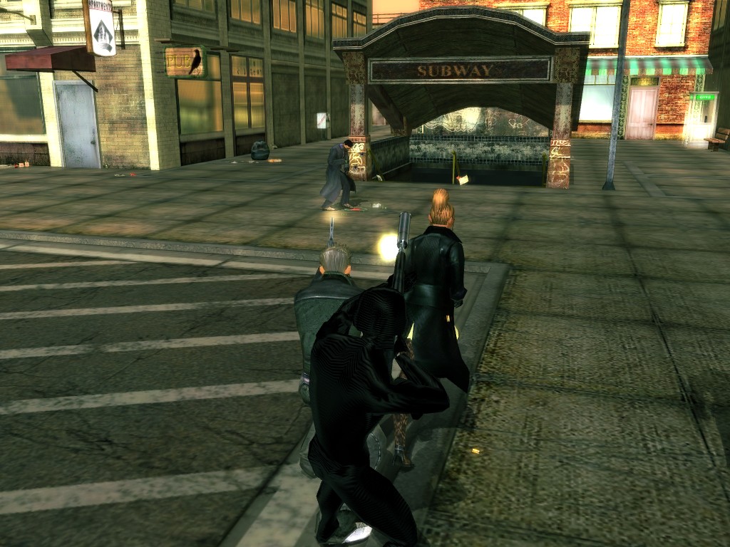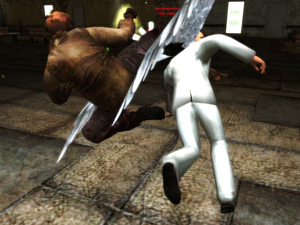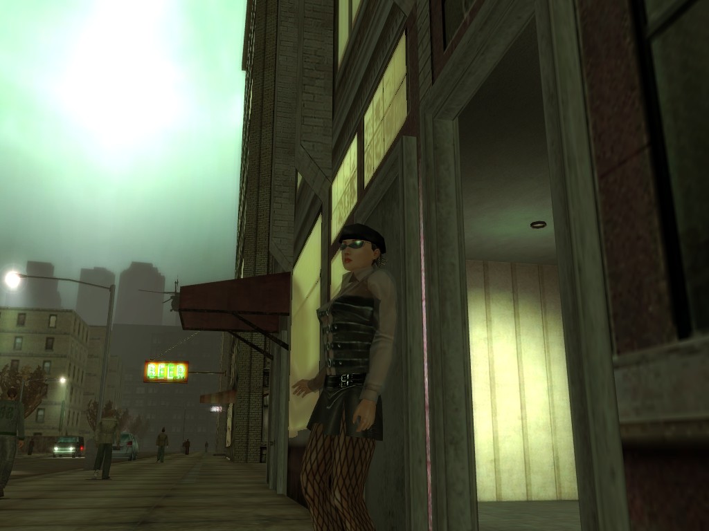 The body of our employee, wholly deceased, lies on the floor. Noticing nothing more of interest here, we might return outside, where our glance would naturally find its way to the gang members ceaselessly pacing about the vicinity. A quick check on these "Brothers of Destiny" uncovers a piece of information that would be more of the usual nonsensical filler found all too often in this dreary place, except that it brings to mind one of the rumors concerning the other party in question.