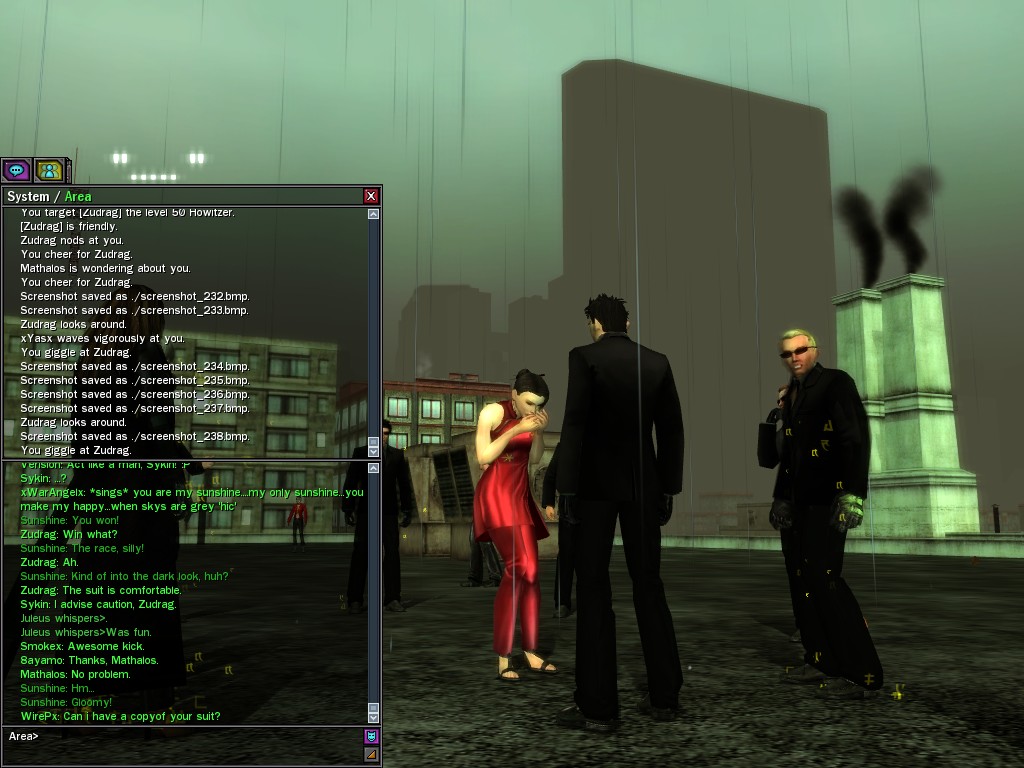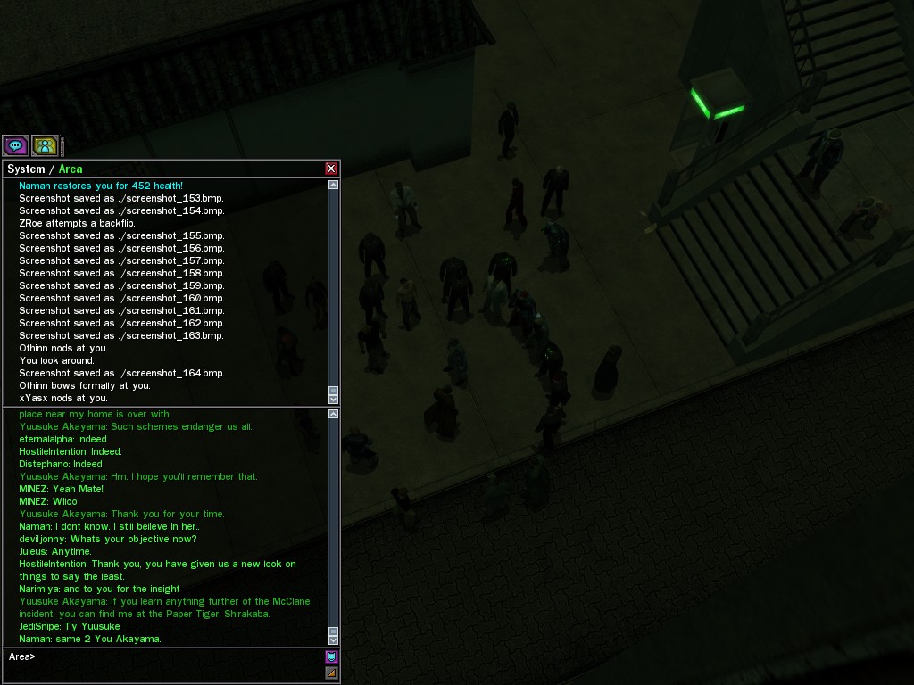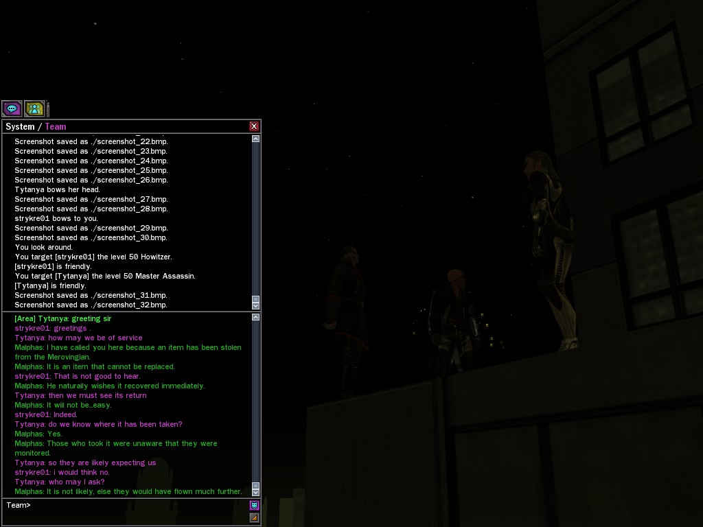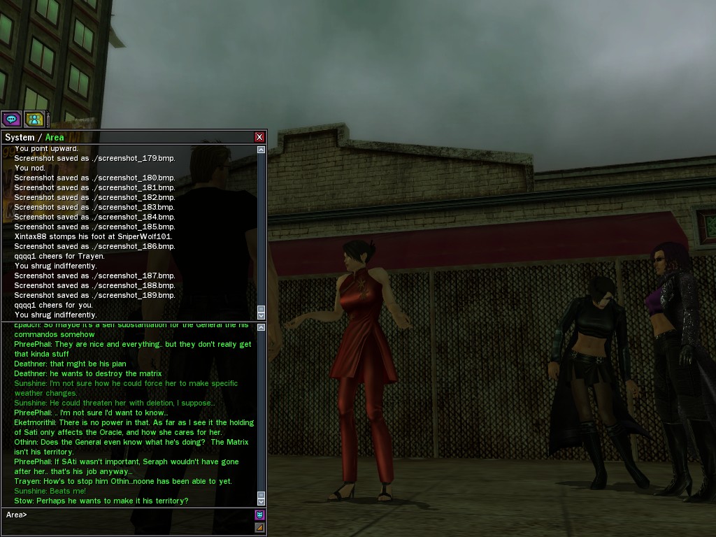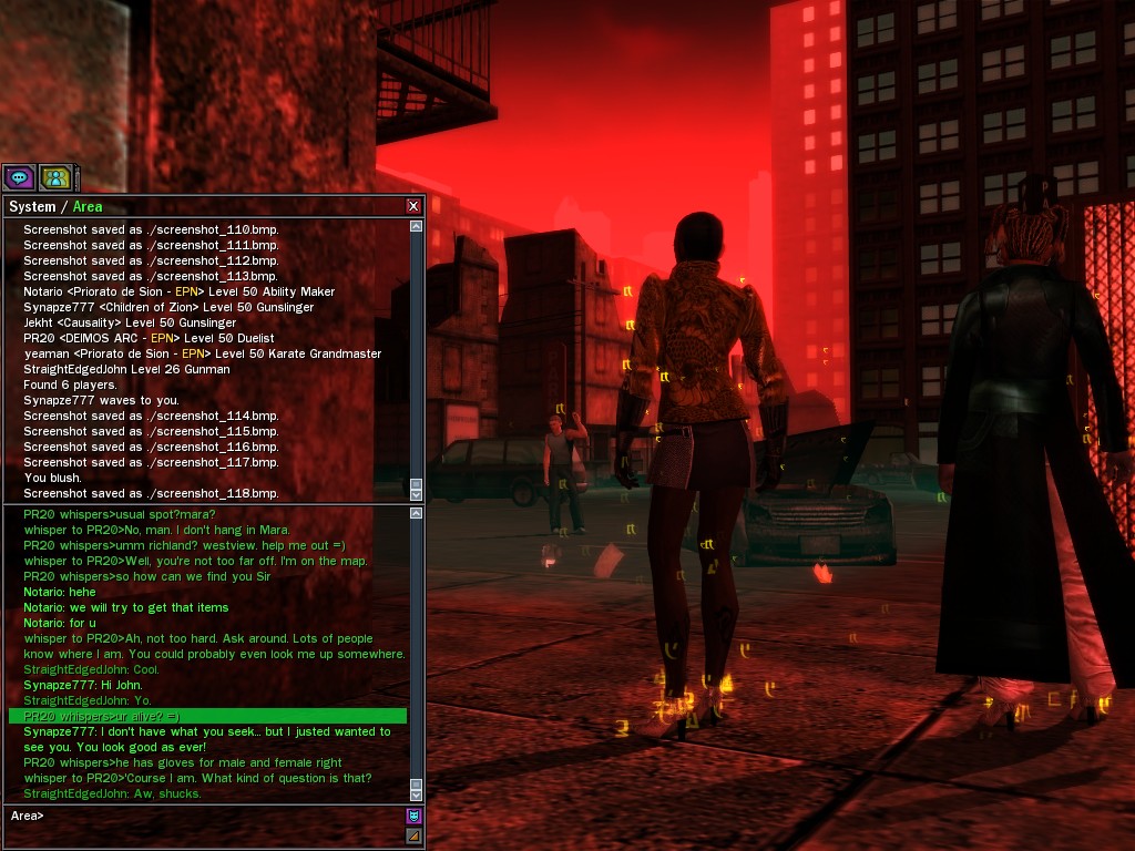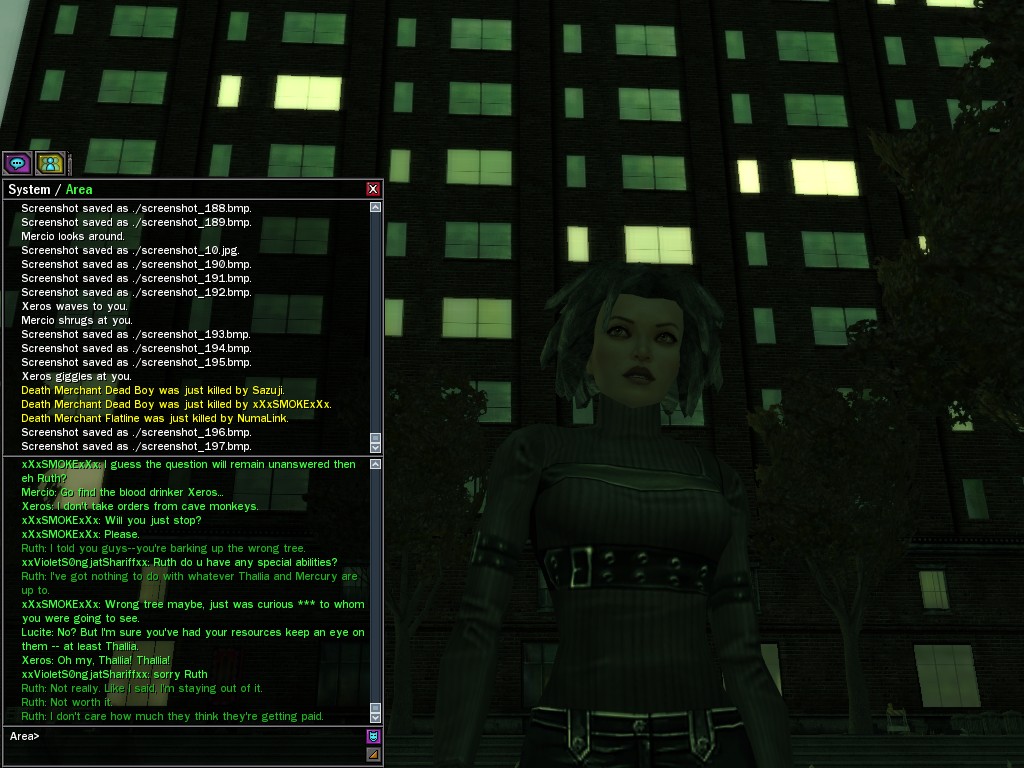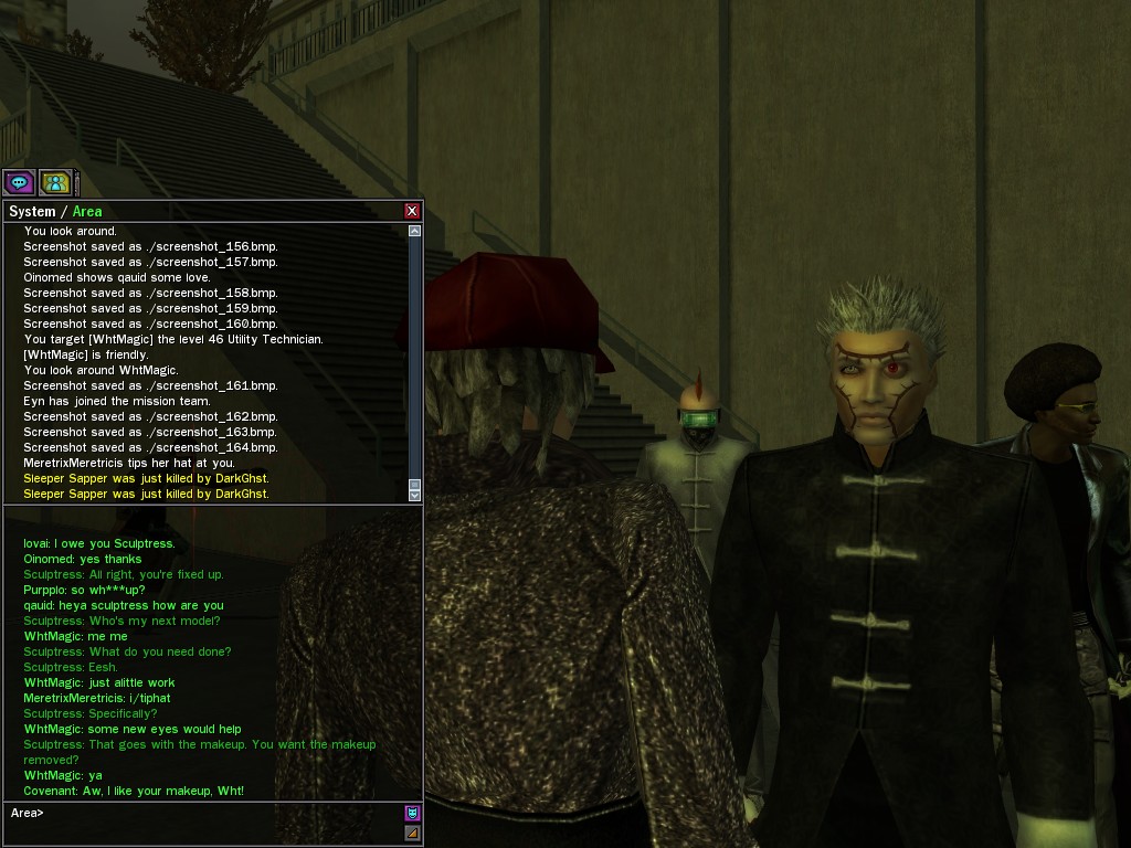 Excuse me. The Merovingian is offering a reward to the individual who locates two missing persons, both probably deceased. One was an employee of ours, on the trail of a scam artist who had defrauded our organization in office real estate dealings. Our employee was known to have a taste for Vietnamese noodles. It is suspected that he was done away with while stepping away from his work to indulge this habit in some exclusive, upper-story venue catering to the more...illegal ingredients in those dishes. His last report suggested that the scam artist was working with a local gang. As for the scam artist, it is rumored that he was killed by the leader of that gang's rival, having let his guard down after being lured into a compromising location not far from the leader's lair. That scam artist is the second person we wish located. The first clear photographs of both persons, sent to me via Private Message on the usual Data Node One exchange, and including the map display with the local coordinates, and an operative name showing in the upper right information window--the same name in both photos--will qualify for the reward, which will be sent to the operative whose name is shown. No incomplete evidence will be accepted. Your indulgence and discretion are appreciated.