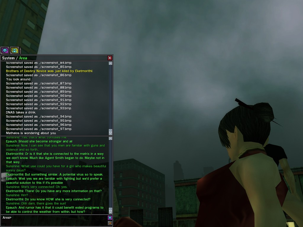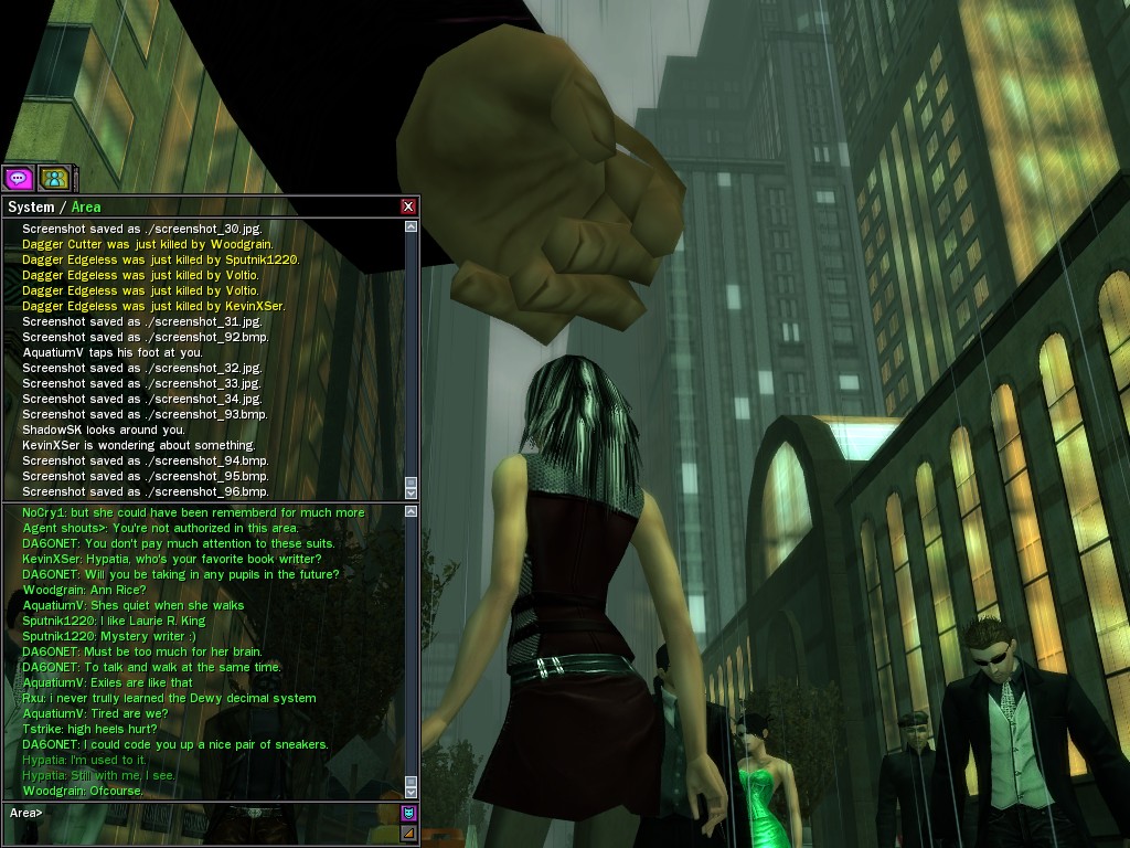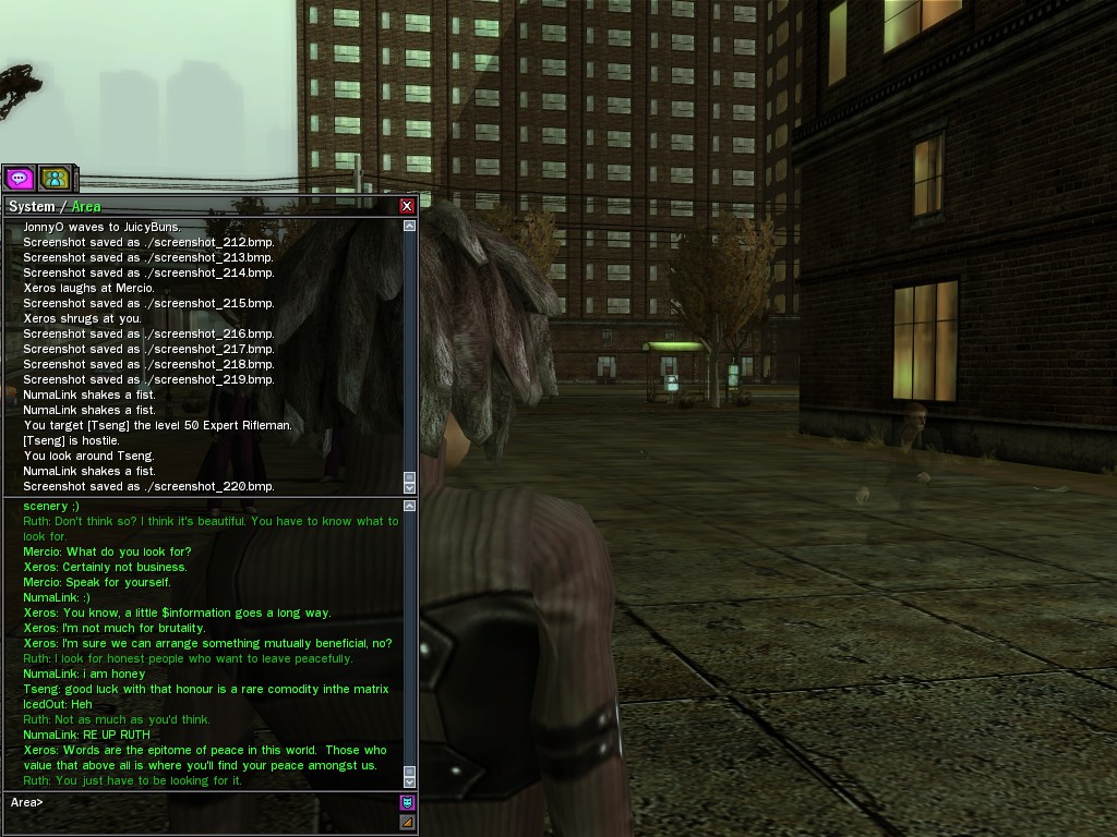 The Matrix "archaeologist" known as Digger, claiming to have been tempted out of his dusty basement by rumors of strange creatures wandering the city, took a small group of operatives into the depths of Rawlins Corner. It appears that the operatives eliminated a fair number of the Ethereal scum inhabiting that place, so the researcher's visit served at least some useful purpose.