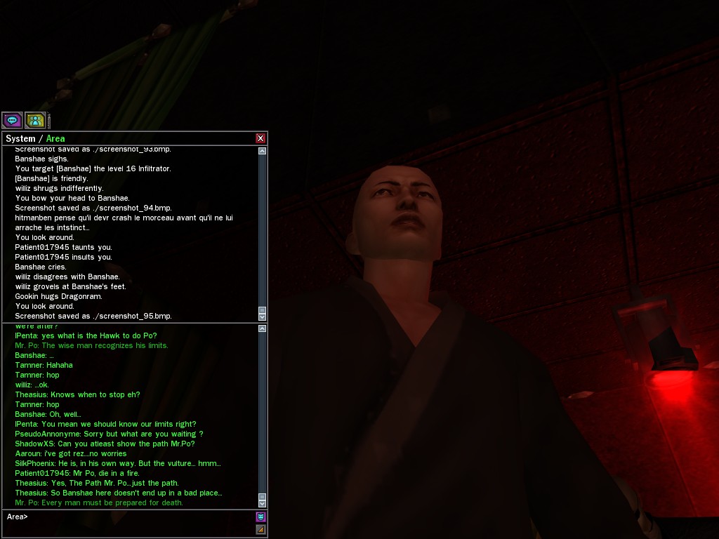Operatives consulted the cryptic Mr. Po in Kowloon to see if his unique method of insight could be of use in obtaining a certain kill-code for somewhat more prescient program. Although the operatives were initially uncertain as to how to proceed with the tight-lipped Exile, after helping Po fight off an attempted attack by a Great Wall Security team from rival neighborhood Shirakaba, better progress was made--or, at any rate, questions and responses flowed more freely. Whether or not any of his proverbs concerning rodents and birds have any real present or future value remains to be seen. It is clear, however, that Po himself does not have the means to provide the needed code.