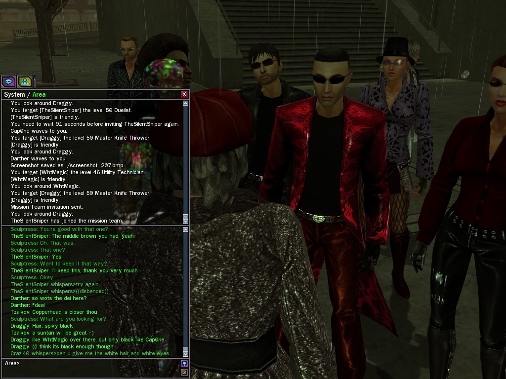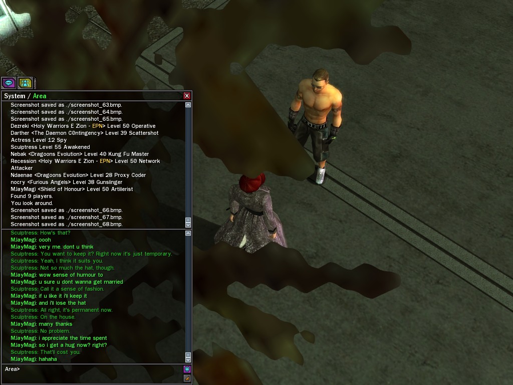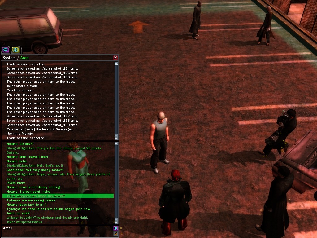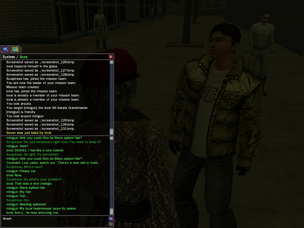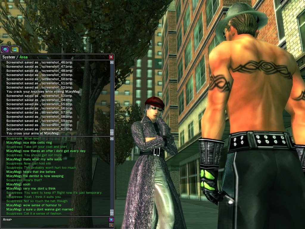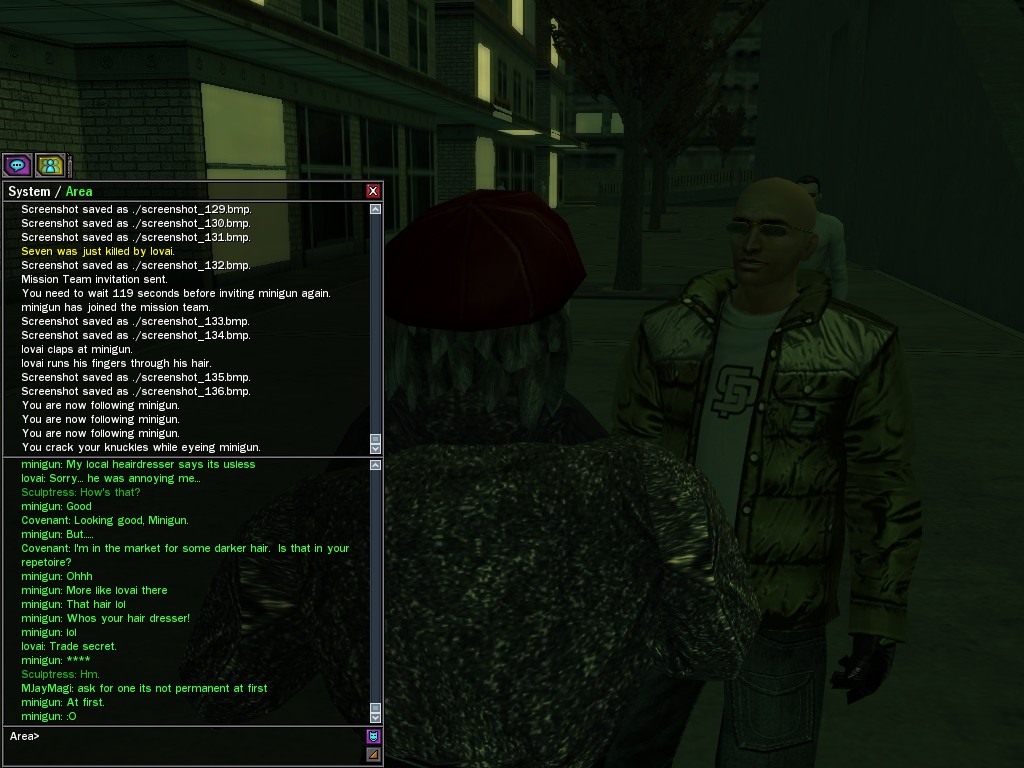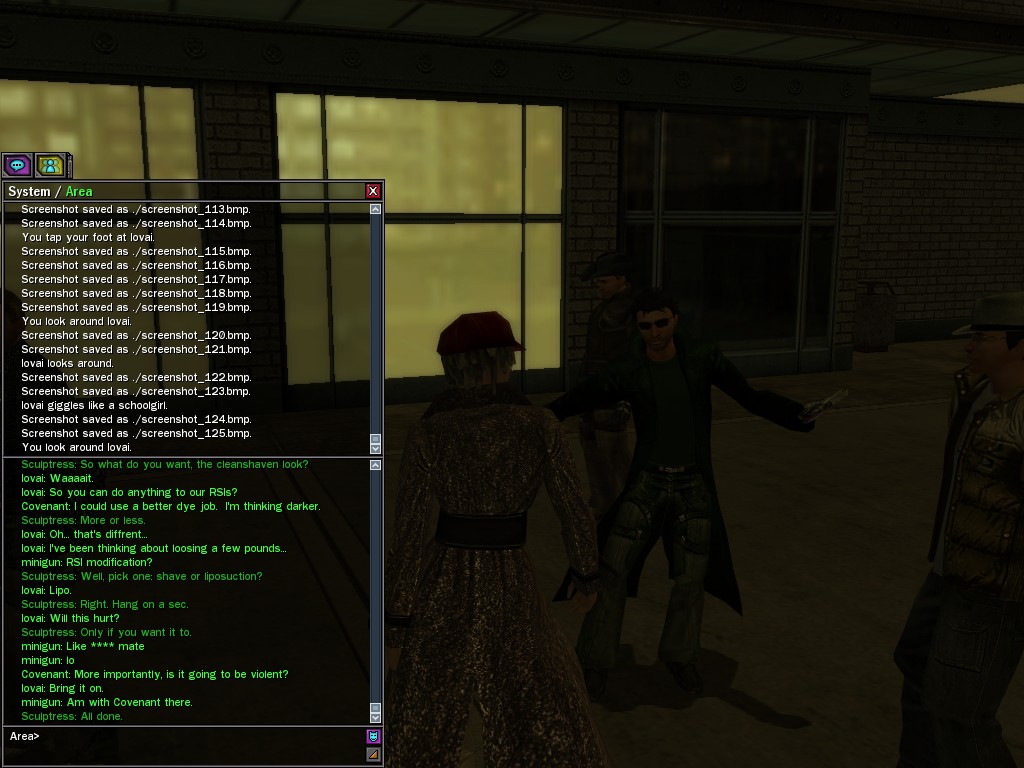 The revenge--or is it profit?--seeking Bathary Boy, StraightEdgedJohn, sent out a server-wide offer about an old version of his "Pugilist's Gloves"; it appears that he still has a pair from the old mold that was later deemed too dangerous, and banned by the Machines. It seems that desire for a quick profit--in the form of some unorthodox items--has inspired John to risk trade sanctions on his Gracy Heights turf.