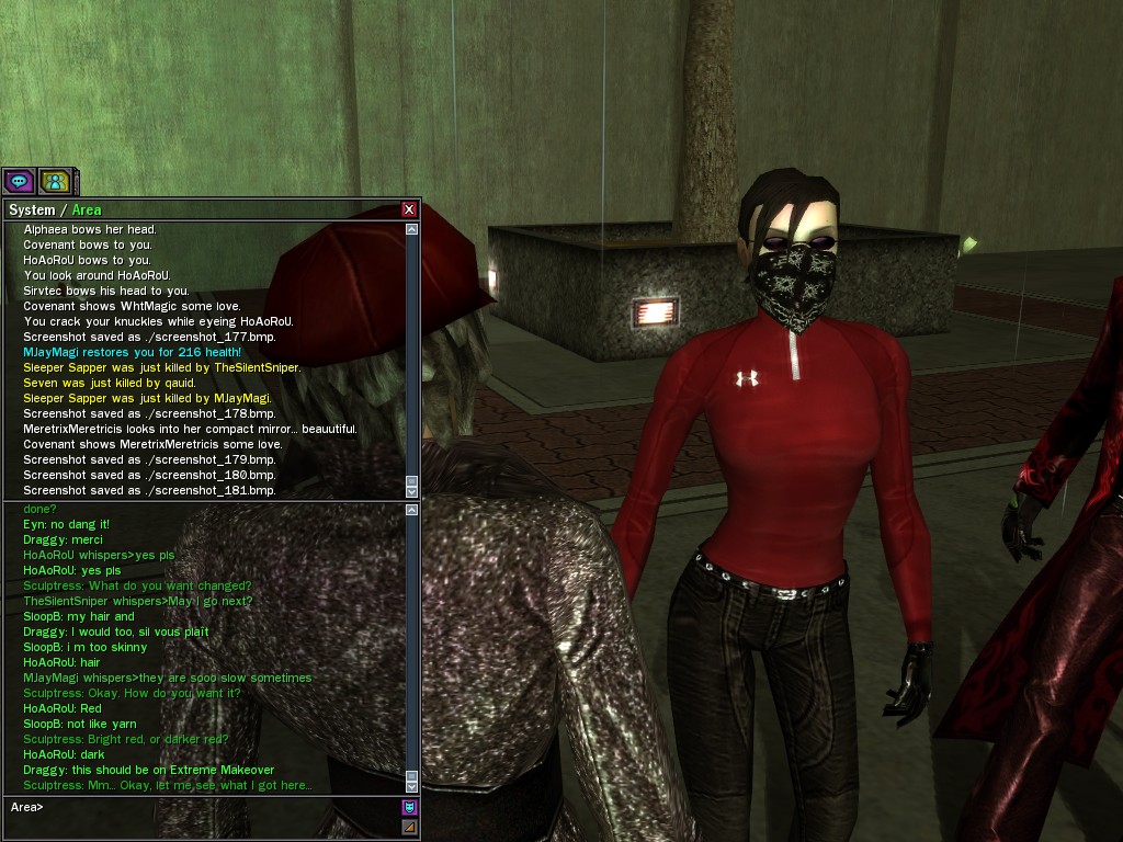 Reports indicate that the temperamental Exile known as the Sculptress emerged from her Center Park studio in search of more subjects on whom to practice her talent in shaping representations of man. This "free clinic" appears to have been somewhat popular among the fickle redpill population, in spite of several...accidents.