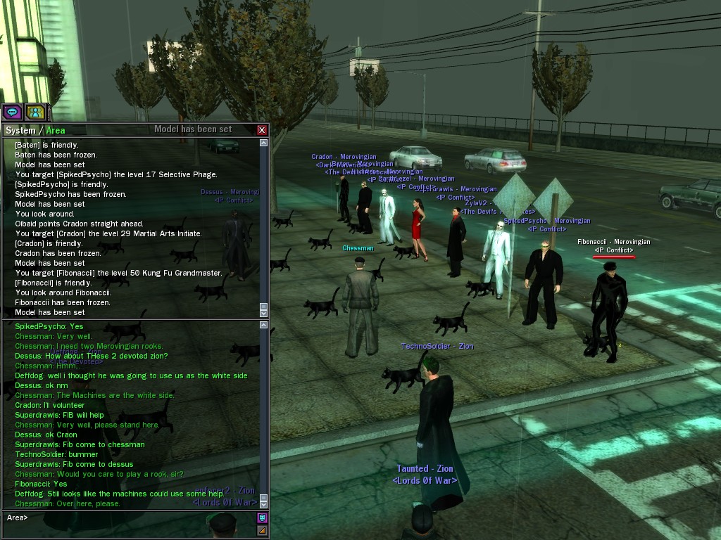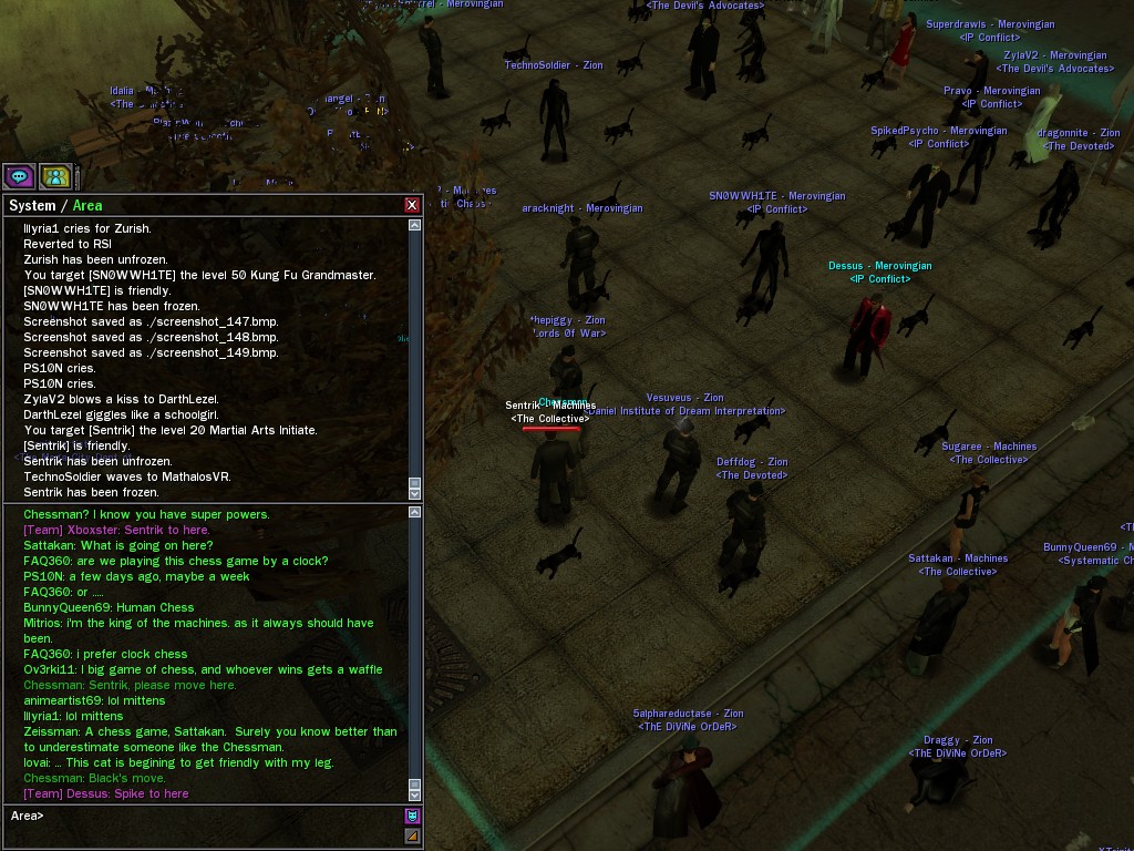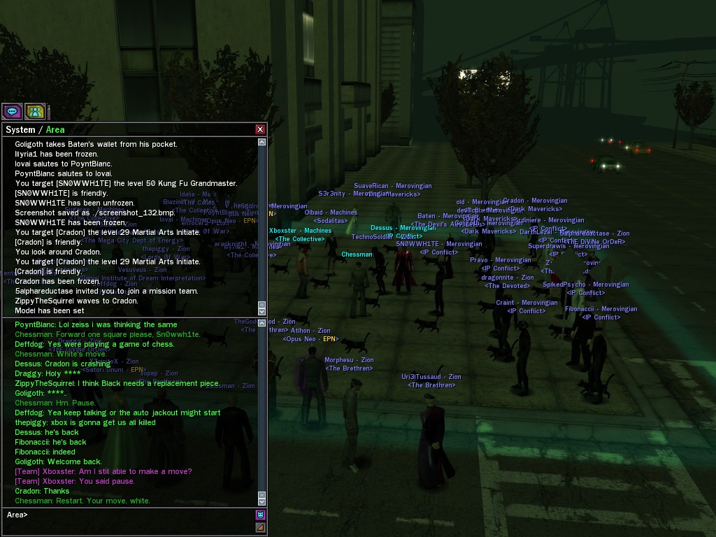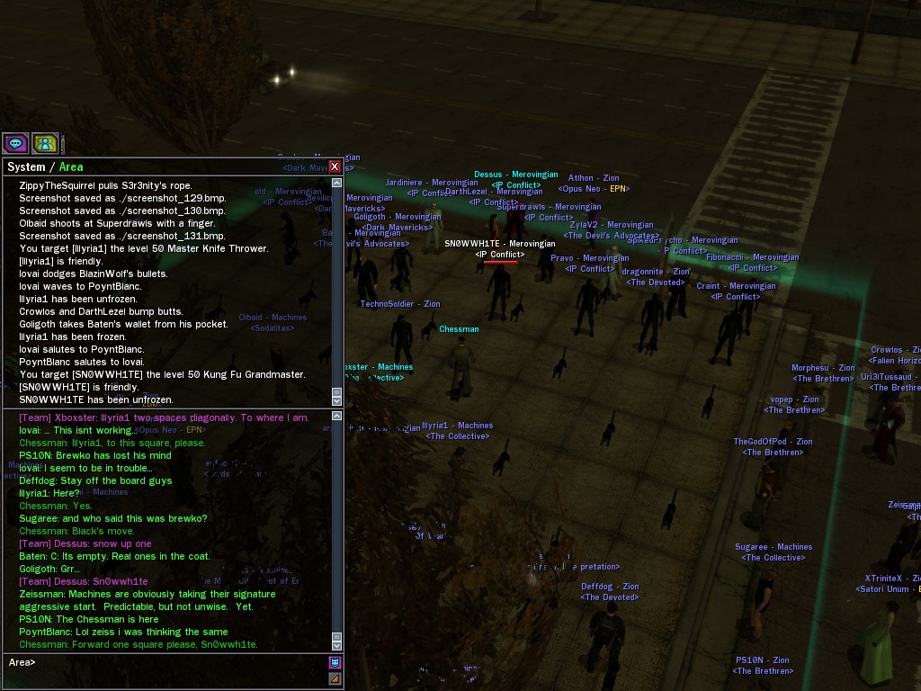 The Chessman staged a life-sized match of his favorite board game between Merovingian and Machine operatives in north Tabor Park. Our side won, naturally; well played, Dessus.