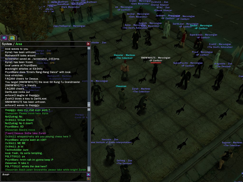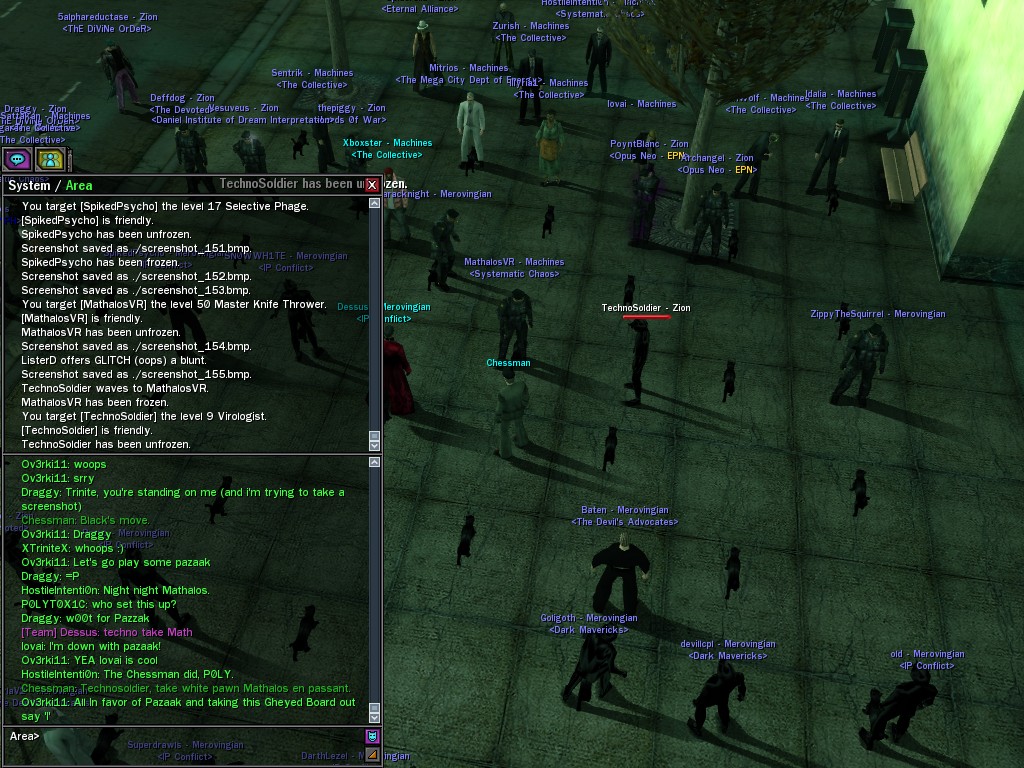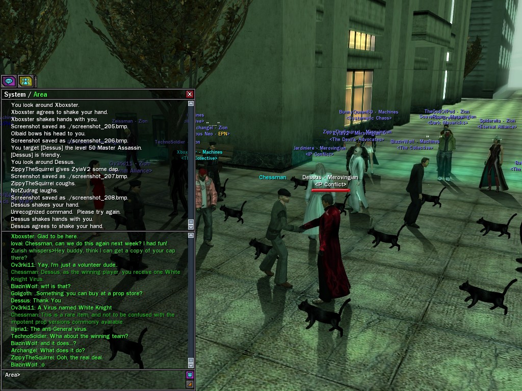 "Zombies" have been plaguing the environs of the Camon church for some days now; this unusual code infection was bad enough, but it has just manifested itself in a vastly more powerful incarnation. This creature took the combined efforts of many operatives to destroy, and spawned hordes of ravenous monsters in its wake--a novel, and amusingly macabre scene.