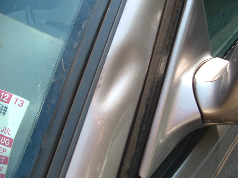 I pulled into a church parking lot, and looked at the damage. I looked for blood and guts. Also, me being the paranoid person that I can be sometimes, I drove back and forth in the area a few times, to make sure I didn't hit a person. The reason is that well...heh...I really shouldn't been driving, I was recovering from a Summer flu. Luckily I didn't see anybody so I concluded that it was a deer. Pictures below!