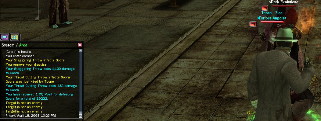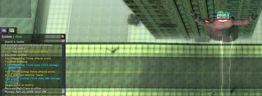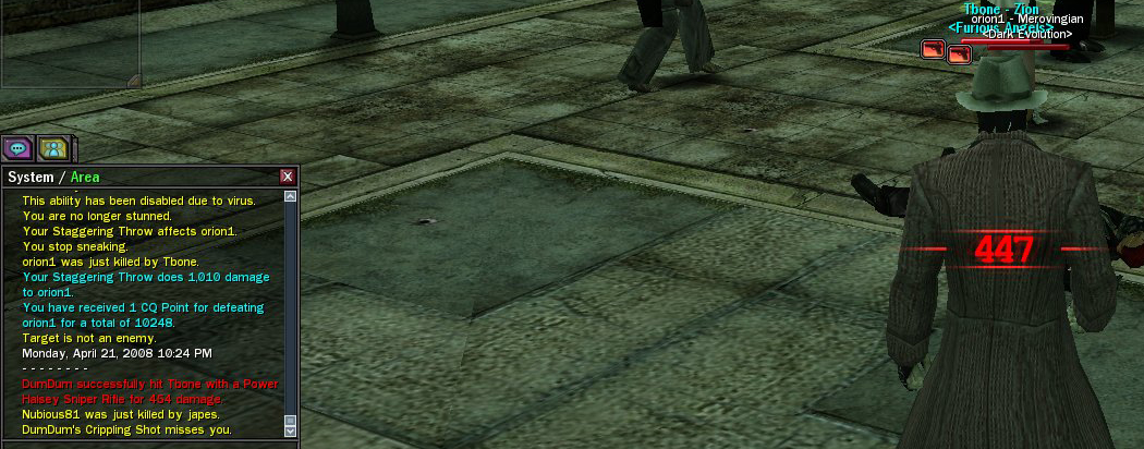 Still one of my favorite moments in MxO is in Beta when I first unknowingly crossed the bridge from Richland into Westview. I had pedestrians turned on and I remember passing one of the generic looking bluepills when I suddenly heard a familiar noise from the movies - the sound of an Agent taking over a bluepill. I didn't see it - it was truly a "girl in red dress moment". I turned around to look at the bluepill I had just passed only to see, instead, an Agent with a gun pointed at me. I only knew one thing to do - the thing that everyone did in the movies - RUN! During early Beta they had it right - if you walked into an area where you had not tapped the access node, an Agent INSTANTLY spawned on you. Not only that, but ctrl+space HJ didn't exist. The only way to avoid them was to jump rooftop to rooftop, avoiding the Agent on the ground until you could find and tap the access node. I don't think any of you have any idea how fun it was to be the first to run around restricted areas avoiding Agents and looking for access nodes. I loved it, but I guess some people thought it was too hard or they decided to change it, and I think they really screwed up a big part of the "Matrix" feel by removing the "being hunted" aspect of the world, replacing it with a meter that barely moves and gives you ample warning before dropping Agents on you. Now, on to my point. I was very excited when the New Zion story plot appeared. I've been bummed that I've been so busy in real life that I haven't been able to fully experience. However, I think the lvl 100 Agents was absolutely the right thing to do. It's kinda lame that they disappear when you ctrl+space HJ, but I guess that's the only way to get rid of them so that's cool. It's a nice nod to the story line and makes me feel more "New Zion"ish, but is easy to avoid just be hyperjumping. I think they should stay until the story says otherwise. Yes, sometimes they are inconvenient (like when a level 35 interlocks you coming out of a hardline, almost suicidal, but then gets the aid of a level 100 agent while you are stuck in interlock), but at least I'm not as bored! I think some of you may have a valid point with it discouraging some of the Zionites, especially the lower level ones concentrating on the grind. I guess an idea to try to offset the disadvantage in getting things done would maybe provide a temporary Zionite ability that coincides with the Agents. Nothing big. Something like "New Zion Speed Enhancer" that gives a 20-25% movement increase when activated. That would help offset the delay of missioning due to the Agents and give people an incentive to stick with Zion if they are considering switching due to "these Agents". Anyway, content is content and at least they are still putting stuff in that is new. If they were going to remove some pesky addition, I'd say remove the freakin helicopters before removing the Agents. Hehe.
