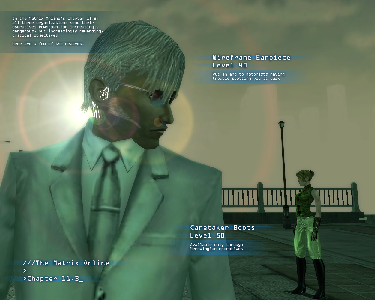 Villemar_MxO wrote: Its funny you posted those pics from that event with Seraph, Morpheus Sim and Lo. I meant to ask about that. I gathered from that event (and some concurrent mentions in a crit...something The Oracle alluded to perhaps?) that there was to be kind of a Free Exile movement...programs that no longer wanted to be under the Merv's jurisdiction. I read that event as egged on by Seraph, and for which the Morpheus Sim might have been the eventual leader. Perhaps even shedding his Morpheus "shell" and forging his own seperate identity). Reason being I figured the Merv was way overdue for another insurrection...aside from little dumb ones like Desayd the Nighmare, nothing really since the Invalesco thing waay back when. But with this resulting in a full sub org of its own....bringing them into parity with Mechs and Zions with EPN / Cyphs. Just wondering, had you considered anything along those lines?