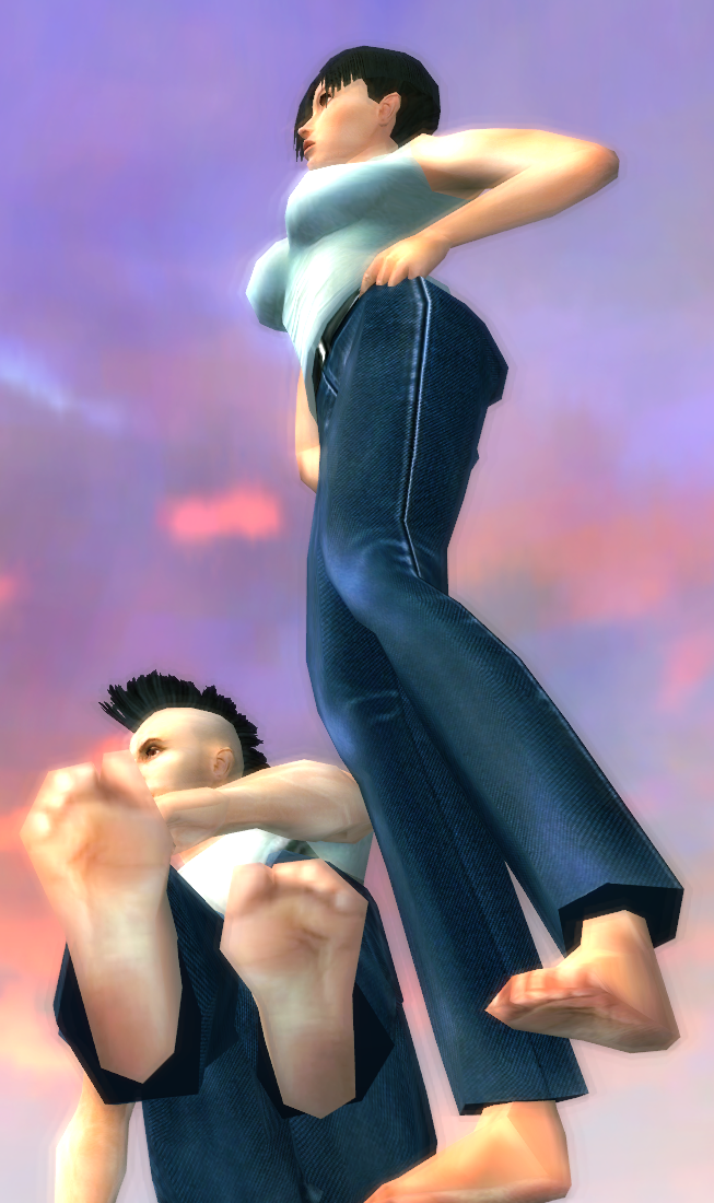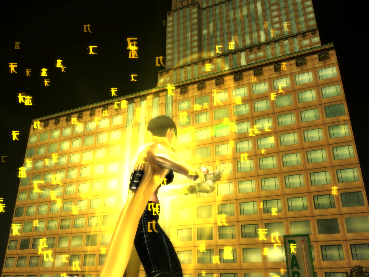 I was asked at the party if I had a favorite screenshot, and I said not really, there are too many, although I mentioned I liked the one I'm currently using for my av/sig, which was from a Syntax Machine event (where Wright killed that woman whose body the BIP was in at Club Koas). But this one above meant a lot to me too, even though it was posed. It was the first I showed of Datamine, I think (note the water is a funny bluish color because I was still running the winter weather), and it took a lot of takes, but I think it kind of captured the excitement I was feeling at the time. And I do like backflipping off things.