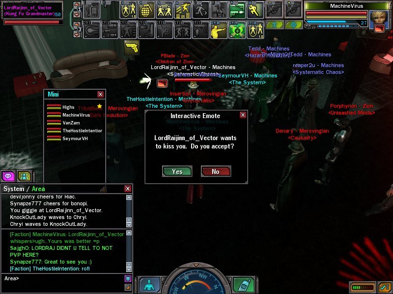 This includes some stuff that should really be in the "matrix universe" section but because its tied with the game and factions i choose to discuss it here. I got wondering the other day about how particular factions use the faction/crew system. When it comes to a faction, what is it? Well literally its a collection of crews that are idealistically matched (or so the general consensus is, although normally its just a group of people who enjoy each others company). This brings me to how the faction is controlled in a sort of hierarchal rank system. I got thinking that a lot of people see it that the leader rules over all, but when we return to the actual matrix lore the leader of a crew generally took more notice over they're own particular crew and probably then met/spoke with other crew leaders and the leader of the faction. That said its all just speculation since we really didn't have defined "factions" within the a matrix universe. So when we look at the factions and crews of the matrix and compare them with the films i feel somehow that we've lost the intent that a crew had. You can see in the films that zion does have a militaristic ranking system from Locke right down to mouse. Although it appears to take a back seat (that could be down to the intent of the brothers I'm assuming since everything else has some sort of premeditated reason) in that particular crews roam free and simply report to the leader for duties/updates. A good example of how the players that have been here and are so used to [the] "faction" rule is i recently joined a crew of completly new people some of which know each other in RL but minus me and i think the others are relatively new (some returning beta/lith players). It is in fact this crew thats caused me to rethink the normal Faction set-up. This is because when they are online they speak in crew chat initially and use Faction chat to discuss faction wide problems, goals or invitations (teaming etc). Does this not better represent the matrix universe as intended? I think the faction idea from a gaming point of view was just to abide by the normal rules of an MMO. That said its hard to justify it sometimes along with a few other changes to the universe to accompany an enjoyable MMO experience (eg EJP). I'm not suggesting you should change but merely providing food for thought. (: It's challenged how i see factions anyway