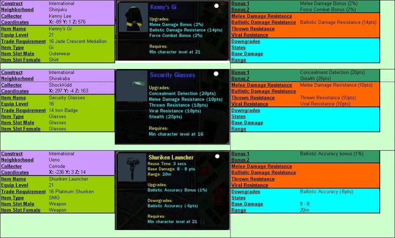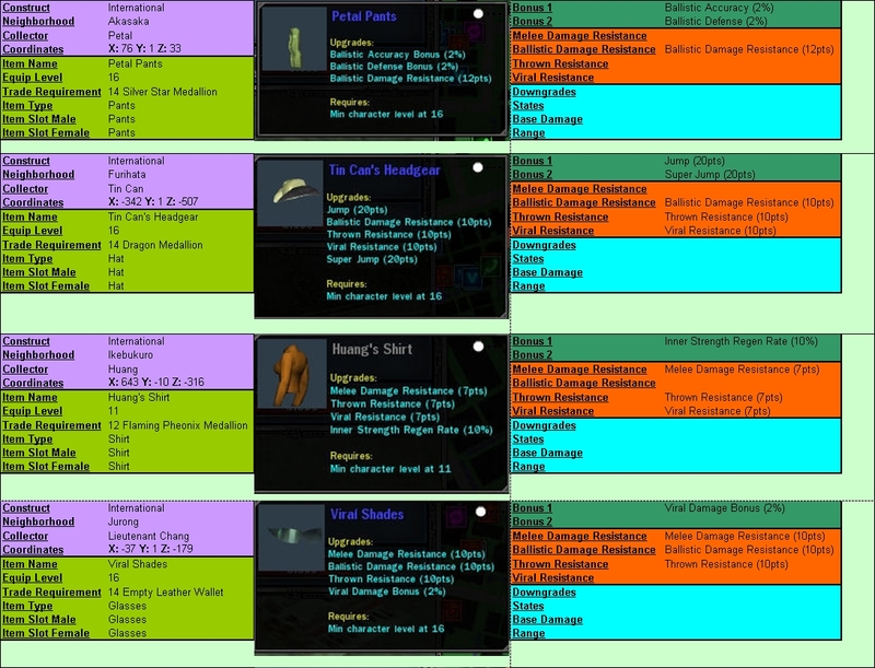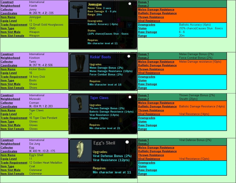 So I made this highly colorful layout for the collector items. This is International only. The objective is to create a layout that would include all details and be easier to browse through than pure text. If it's well received, I can do the other constructs as well.