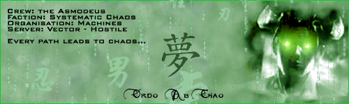 So, you've just found out you're a Duracell bunny. And then the guy who told you this takes you to "the last human city". You're thinking "Wow, last human city. This has to be all majestic and..." it's a dirty, rotten cave. I thought they told me it was at least one hundred years later than I thought it was, not millions of years earlier. "What do you think?" they said. "Onga bonga" I replied. All the while, I'm thinking "Wake up, man. It's just a dream." I couldn't have been further from the truth. I'm Veive, friend. The captain of a rust-bucket called the 0rdo ab Chao. Transmitting this message for me is my operator, Soleil; and believe me she could use some. We all could. Anyway, I'm sure you've just gone through the same thing I described above, and if not, then you probably shouldn't be reading this. Me, and my delightful group of outcasts and odd-sorts want to help you sleep at night...and day. See, we think this freedom speech the Zionite, and Neophiles keep spinning is stupid. Zion, the not-so-majestic, cave man city I was just talking about is more like a prison than the Matrix. It's dark. It's damp. They like to sc...Uh yeah I think you get it. Point being, we want to go back. But we're not that selfish. We think you need to go back too, and with the nut jobs running around trying to free everybody, you need all the help you can get. So I figure, we send all the freedom junkies to a more permanent sleep (After all, death is the only real freedom), tuck in all the bluepills, and go back to dreaming before dinner time. I wouldn't say no to a steak. Would you? So, keep a look out for us. We're not hard to miss. I'm a colourful dresser, Izanami talks to her simulacra, and Apollyon...Well, he's bald.