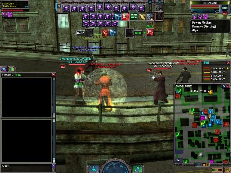 I just visited Ashencourte again with my lvl30 noobie and tried to kill nasty lvl37 Gargoyle but.. no way. Still the same problems, he regenrates too fast. The 10-20pts of damage that I can do with my karate/kung-fu loadout is just bogus. All I was missing was Gargoyle standing there and laugh at me. I tried with different stats (maxing belief, mixing belief with focus/perception) but it seems as it makes no big difference to the archivesboss. All in all.. after he interlocked me it didn't take more than 5minutes till I was death and he was standing there with full health *shrug* So I went there as an Arbalest. (changing stats before of course) And um.. I did like 77 damage with the logic cannon1! (with upgrade attacks and overclock - around 66 without them) and arund 20 (or a bit less) damage with logic barrage 3 and logic blas 2. He hardly hit me with his weapon and if he did so just for a bit damage.. less enough that I could regenerate it. Oh hey.. I nearly forgot. I was sitting in front of him, while he was shooting at me and he didn't hit (also noticed this in PvP..) .. so I could get my IS back and try to continue the hack-fest. Anyways, it didn't really hurt him nor did Gargoyle hurt me.. I tried to use Slow as often as possibl on him, so he I avoided interlock (but also when he wasn't slowed he didn't try to interlock me, dunno why.. - when I was there with karate/kungfu he ran to me as soon as he saw me). So well.. after 15mins I left.. Gargoyle couldn't kill me, I couldn't kill Gargoyle (with hacker, notice: with MA I was dead in a few mins). So *shrug* maybe any 50s out there with a char around lvl30 that might want to help? I'd like to test it again with some more players.. so if you have some lvl30s or below.. let's meet in Ashencourte on.. hm, monday? 6-8 PM GMT would be nice.. but let me first know in this thread if you are interested