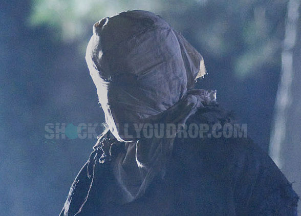 Seems he will don the infamous 'bag head' for some of the movie. I hope that leads to a somewhat iconic moment when we see him in his hockey mask for the first time which would be at the end of the 2nd act likely.