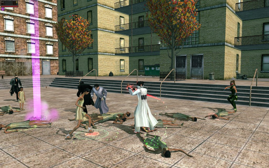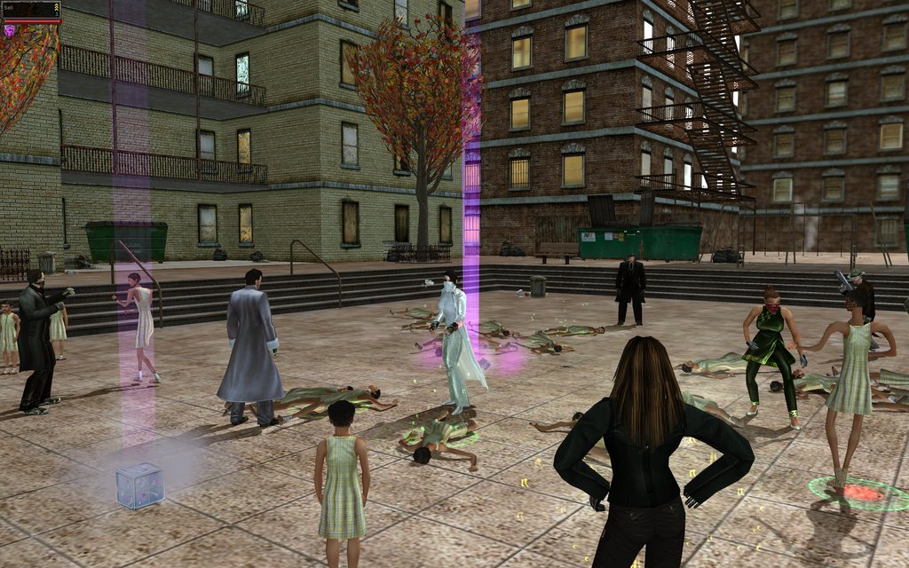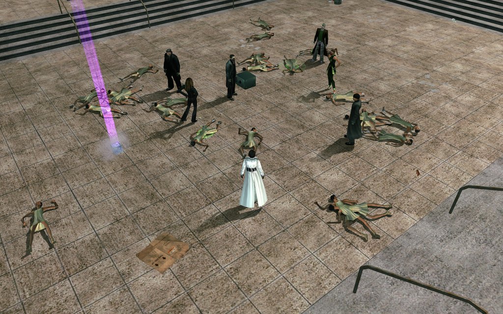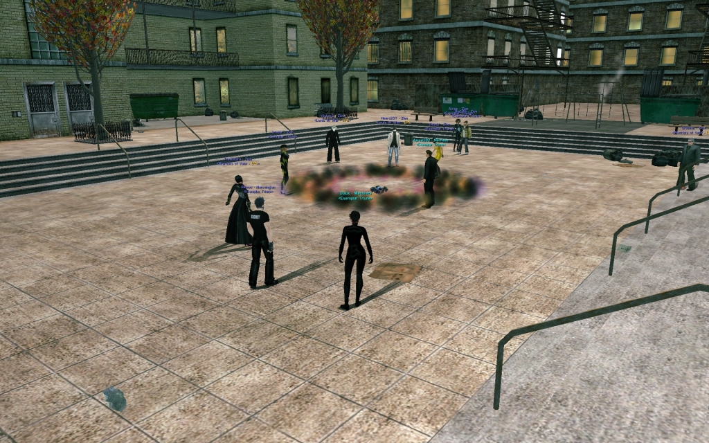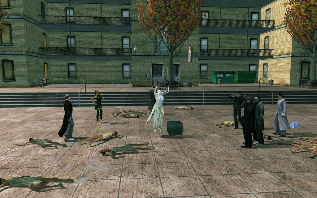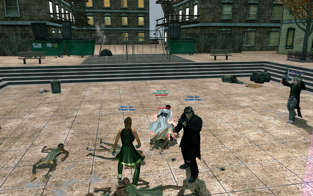 To celebrate the 4th Anniversary of The Matrix Online, a bunch of us got together in Debir Court for some old fashion Smith bashing!  So thought i'd make this thread to post some pics and for others to post some Anniversary shots of their own...enjoy! After a bit of organizing, sychronized Smith Fighting ensues...