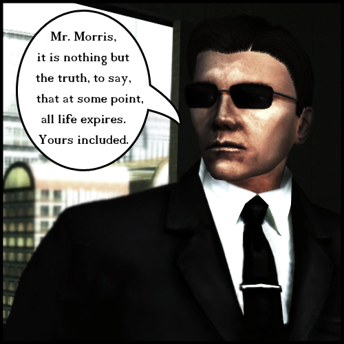 I decided to do a bit of the Matrix storyline from an Eyewitness' perspective. Let me know what you think. I remember the day my mother was possessed like it was yesterday. We where walking in the market, getting some groceries. It was like any other day we went shopping there. People would try to sell us things for which we had no use and mother would say "No Hun this nice man is not a nice man." And I would know instantly what she meant. We would by salad, tomatoes, some other vegetables and some little things needed around the house. Times where tough back then, we couldn't afford all this expensive stuff from the super market so we went to the street markets. What a mistake that was. We where walking as always, when all of the sudden we heard gunshots. I couldn't see what was happening but my mother could see over the crowd in front of us. She was holding my hand tight. I couldn't see here face because the grocery bag was covering it. I was afraid. I held her hand tightly and she held back. I could see between the legs of the crowd in front of me and watched this man in black run from two men in suits. My mother let go of me. I turned to look her in the face but the grocery bag was still covering it. The grocery bag fell and there was no longer my mother, but a nice man that was not nice, he had a gun and he was shooting at the man in black. I was in shock, I remember falling on my knees and calling my mother, but she never came, the man in the suit looked at me briefly and then ran along in the same direction as the others. I sat there calling my mother but she never came. Two days later the police came to my grandmother's house, where I had been staying until my mother was found. They where talking with her trying not to let me hear but the walls and doors of the apartment was thin. They had found my mother. She had been found dead somewhere on the street. There was no sign of murder or any reason for death, period. But I knew what had happened. The demon in the suit that possessed my mother had left the body again but taken her soul. It has been 9 years now and I am 18, but I will never stop searching for my mother, even though the body is found and dead, I think her soul lives on somewhere. I was told one man could give me an answer. His name is Neo. Laters