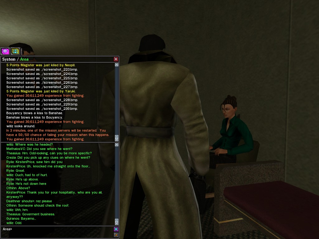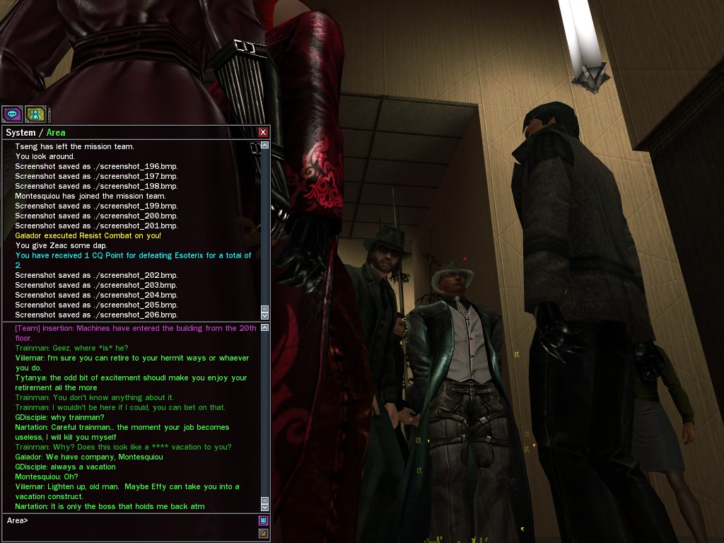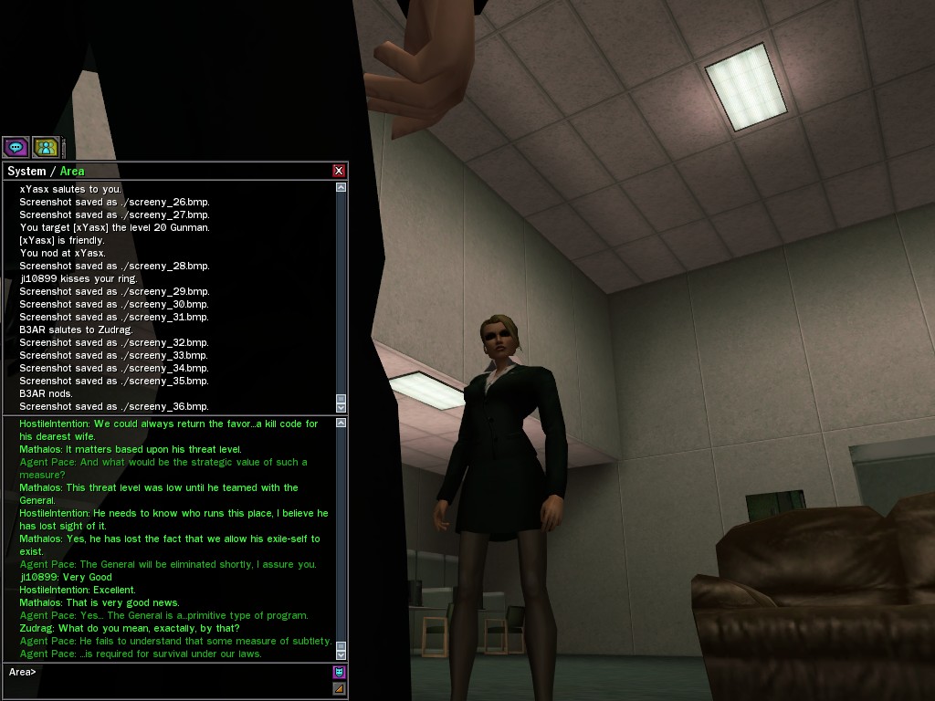 Apologies for my vituperation, mes amis. But the actions of our ex-liaison officer angered me very much. I go to great trouble to earn my resources. I do not tolerate thieves. Even the Oracle learned that, non? Yes, I was fool enough to choose Salera as the one to secure the cheat codes from the warehouse where the Machines had unwittingly stored them. But I was not so foolish, my friends, as to create codes that I could not counteract. Always have insurance, eh? Regrettably, I had to use the kill code on her quickly, lest she damage the two remaining codes she carried. She deserved a much more prolonged demise...