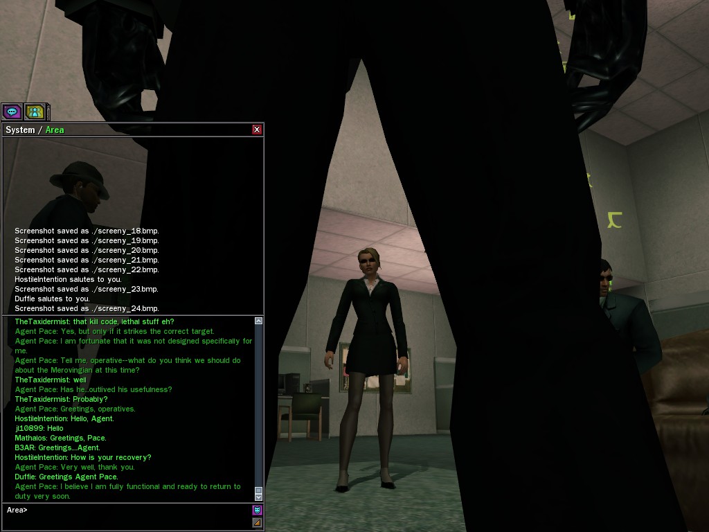 Fickle are the ways of a woman, eh? But let us not judge our dear Agent too harshly; after all, she was subjected to a very potent code indeed. It is pleasing to see that our little knock on her head had such a resounding effect. The kill-code, I believe, is shaping up quite nicely.