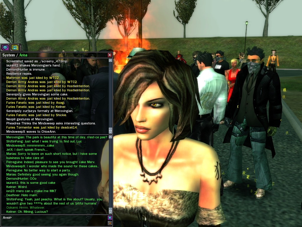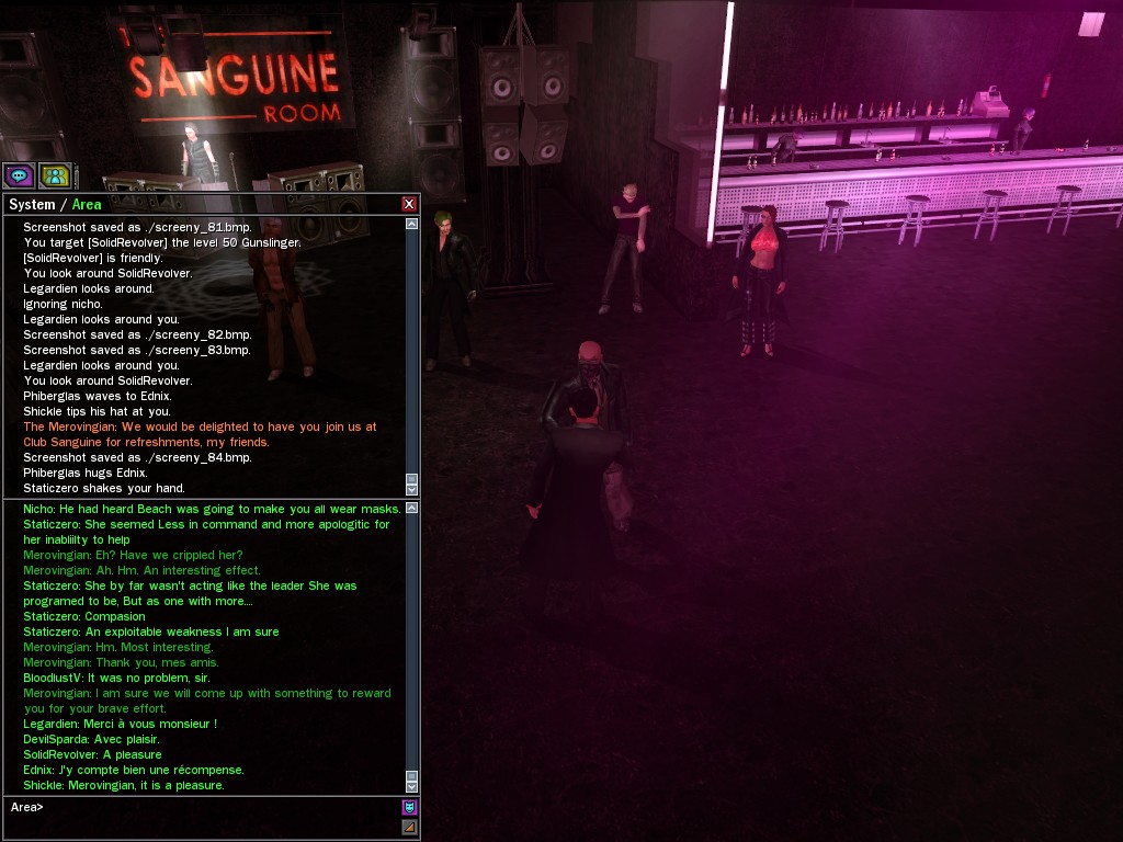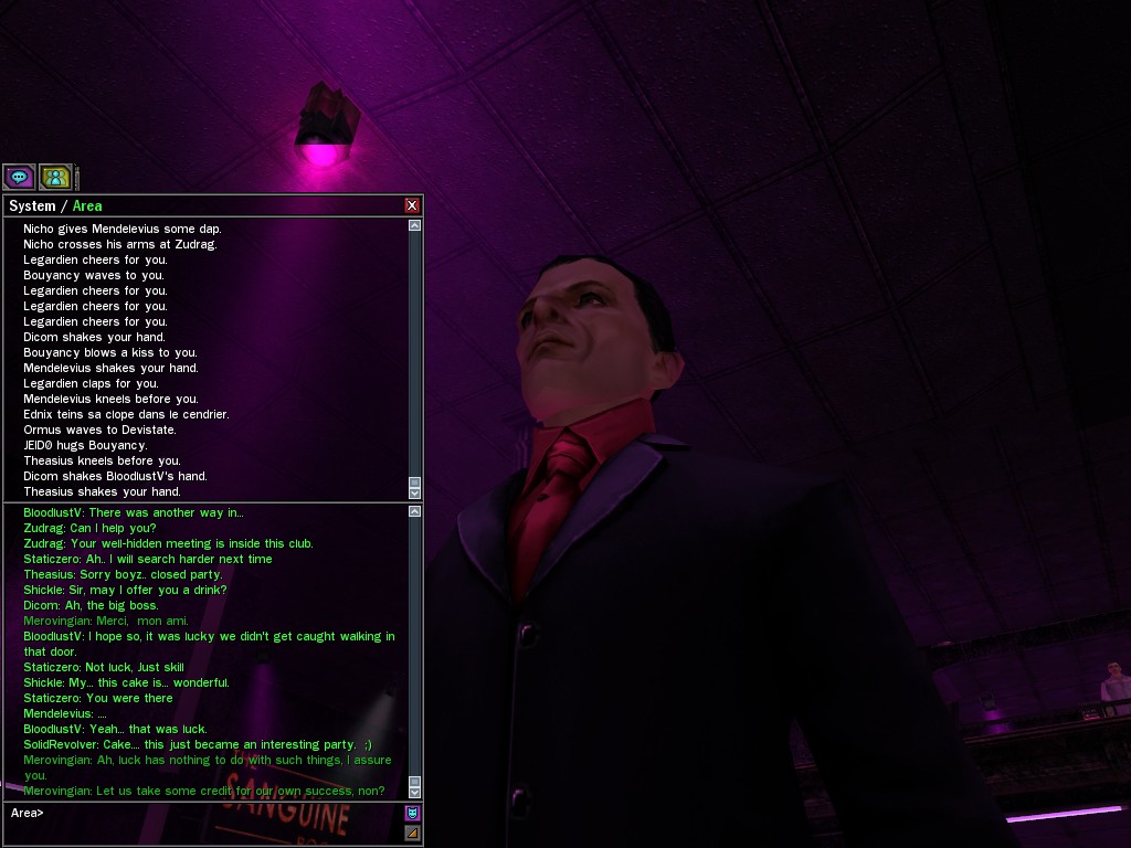 Ah, my friends, what a fight we gave them outside Club Succubus! How delicious to hear the cries of our enemies as they fell before us like so much grain before the scythe. That, mes amis, is what reminds a man that he is alive!
