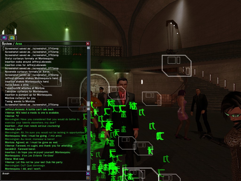 Le Général has begun to hold up his end of our agreement--or so it would seem. Truthfully, I tire of the silly cheat codes the Machines allowed to be slopped around the city; however, if in fact one may be put to this very good use, I shall bear them no grudge. Locating them has in the past proven to be rather difficult, but let us see what results this code of the General's produces, eh? Bonne nuit, The Merovingian